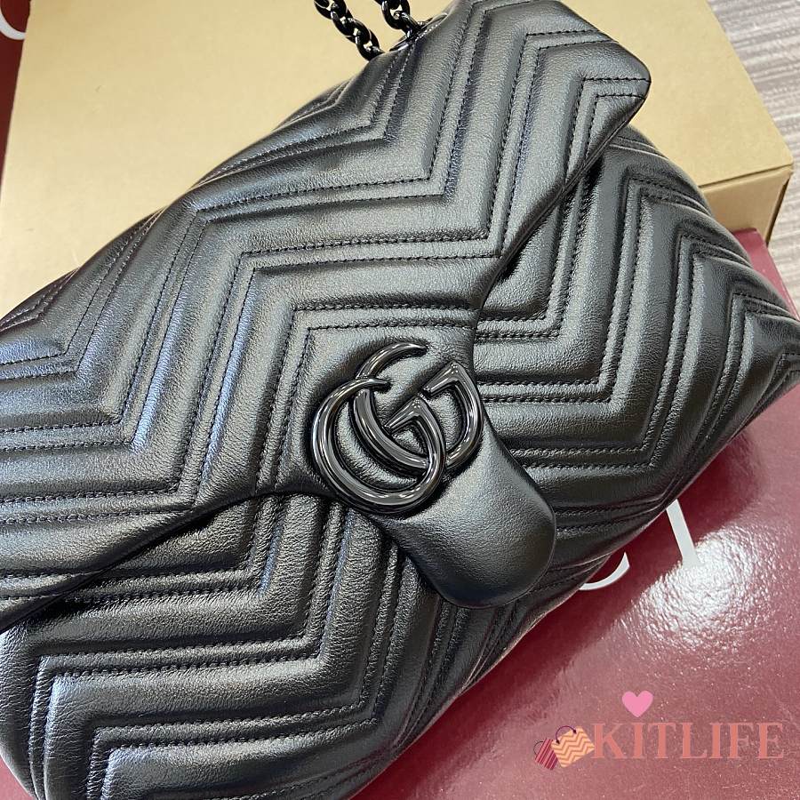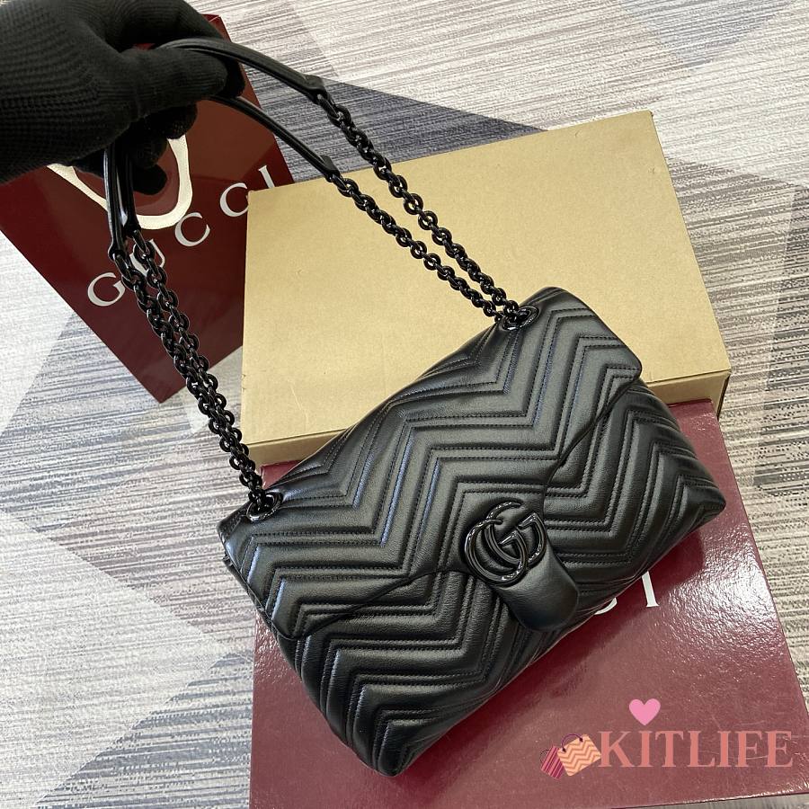 Kitlife Gucci GG Marmont Medium Shoulder Bag Black 850676 31x17x8cm
