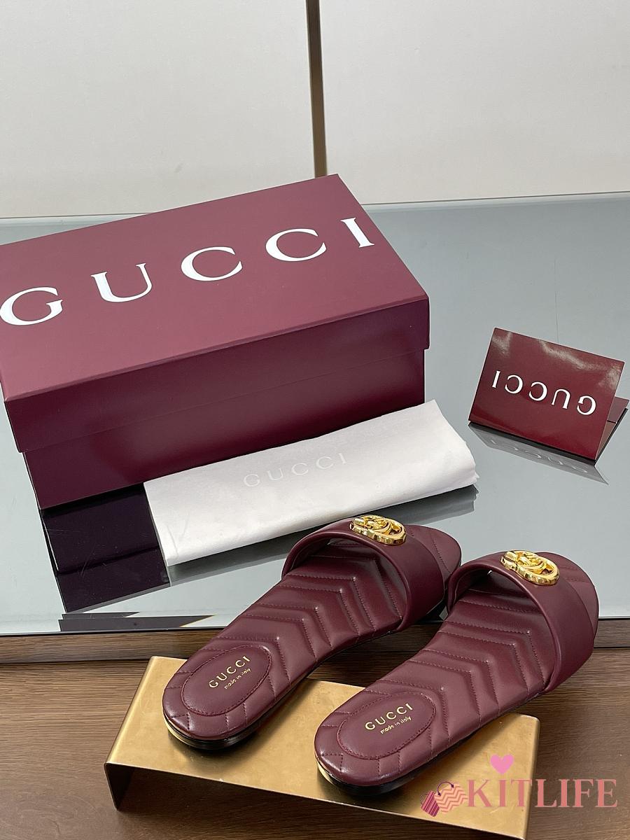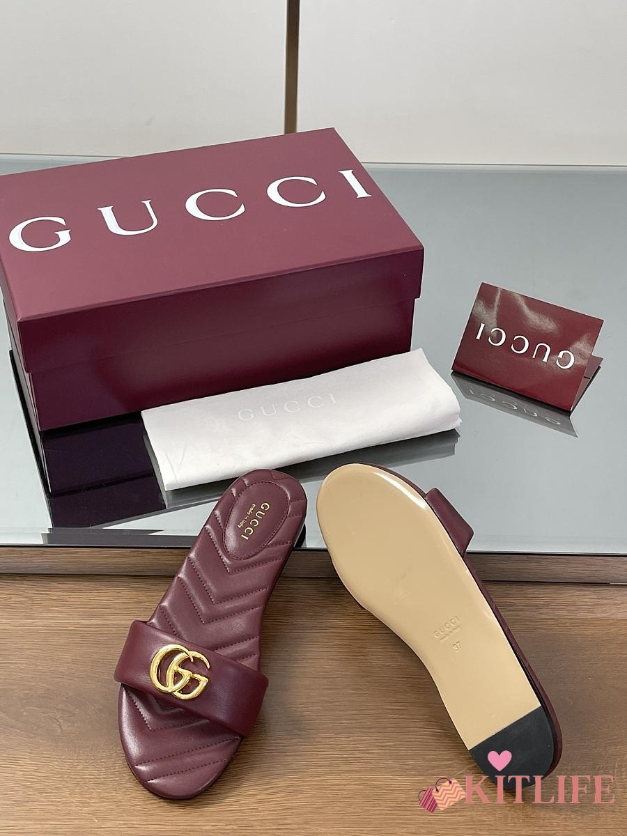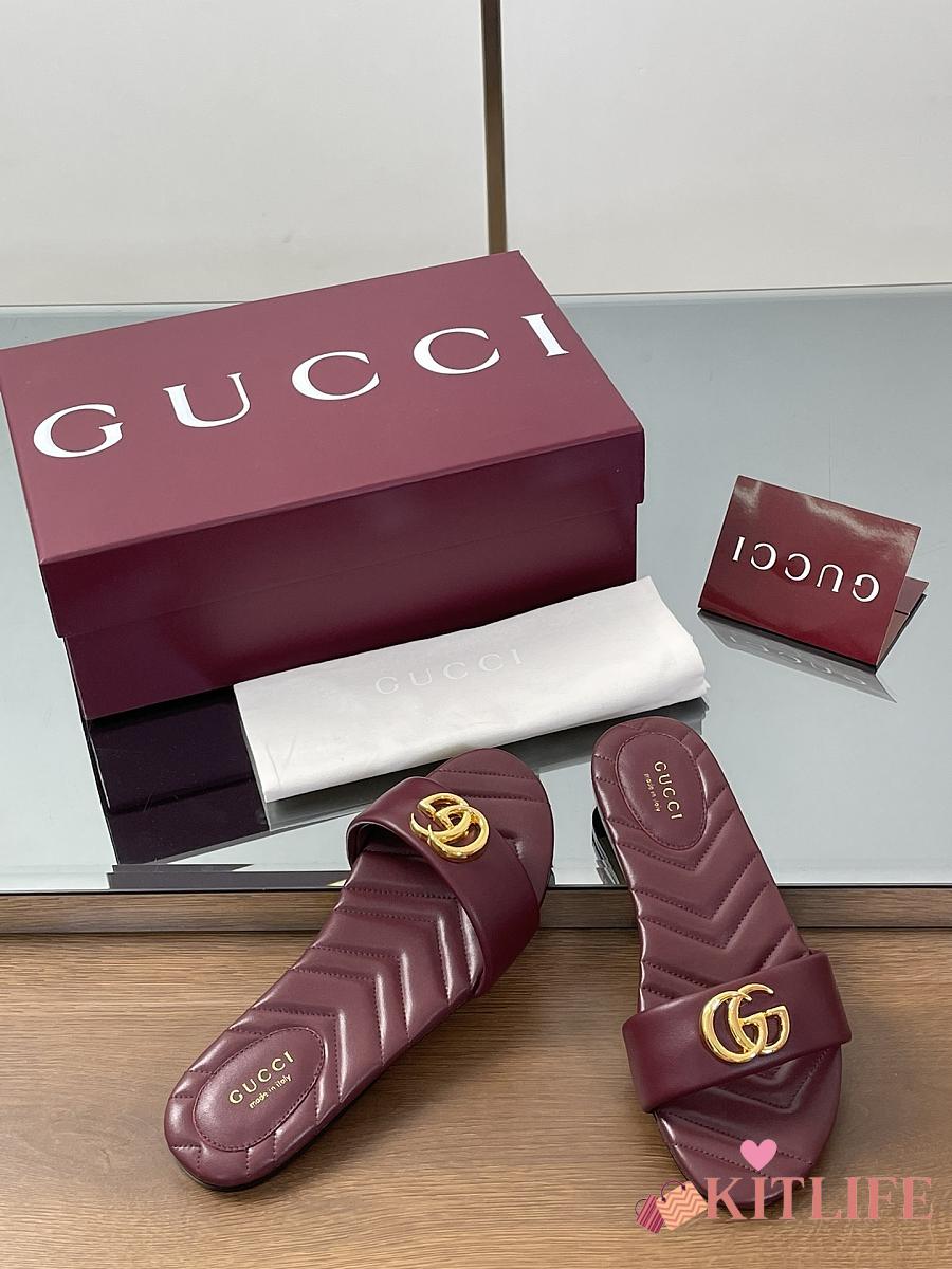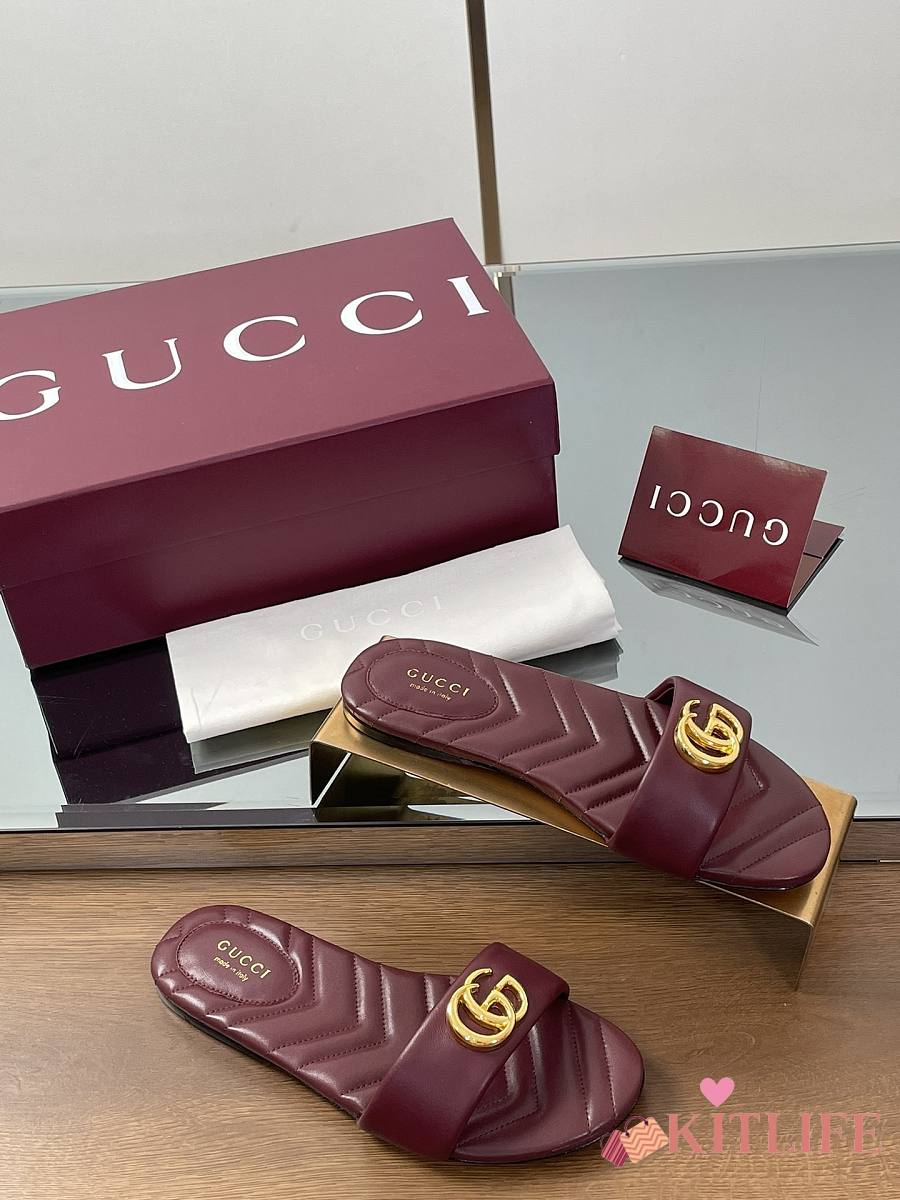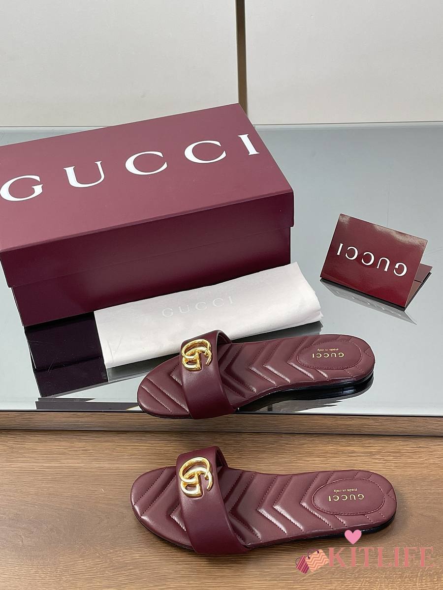 Kitlife Gucci GG Matelassé Slides Burgundy