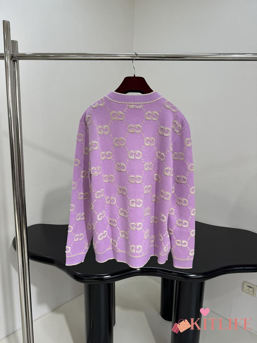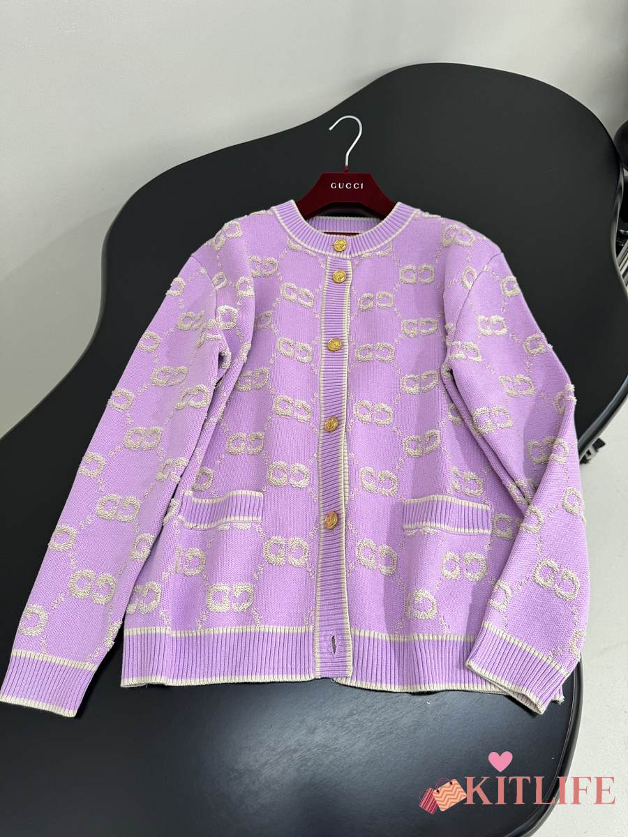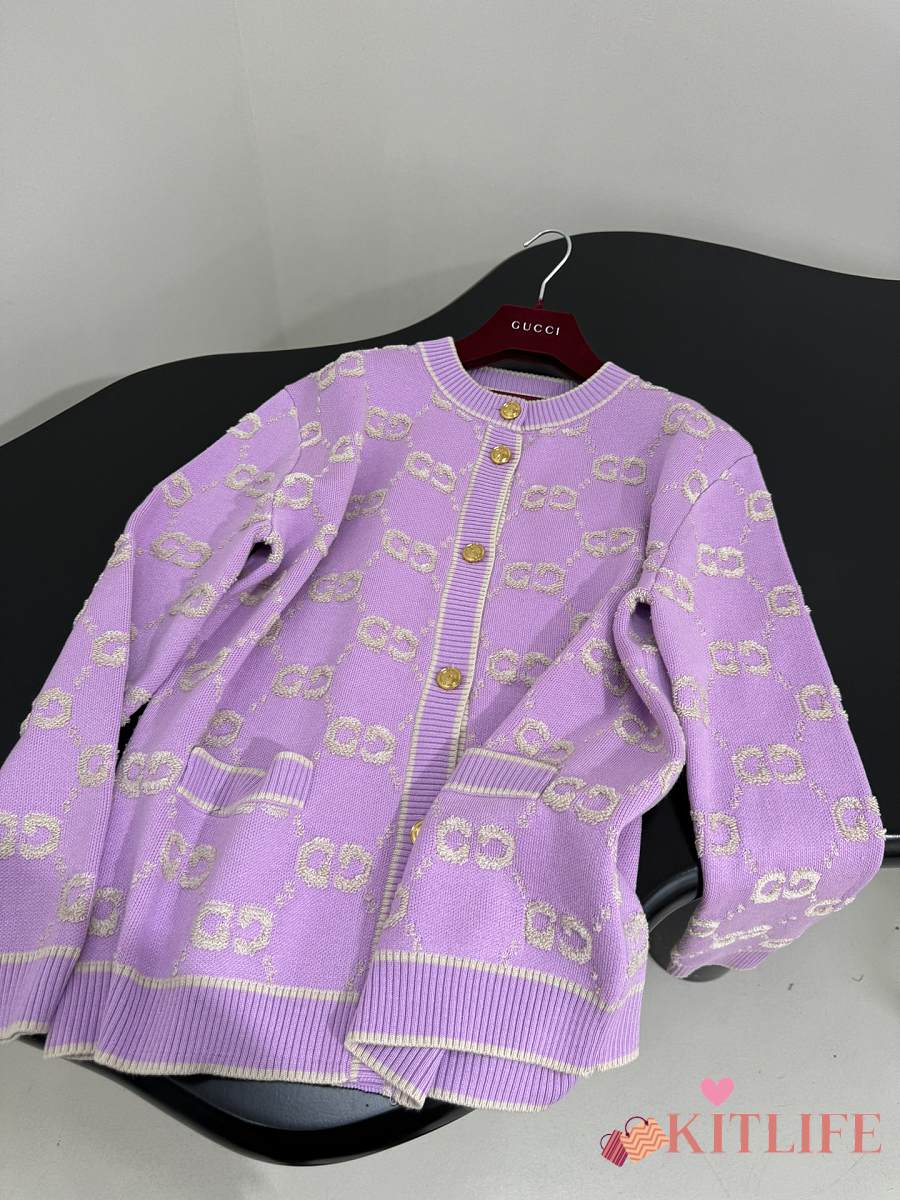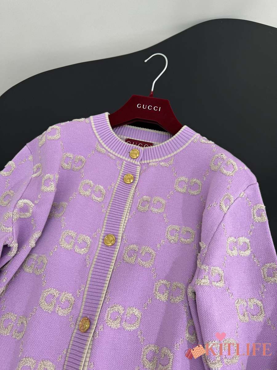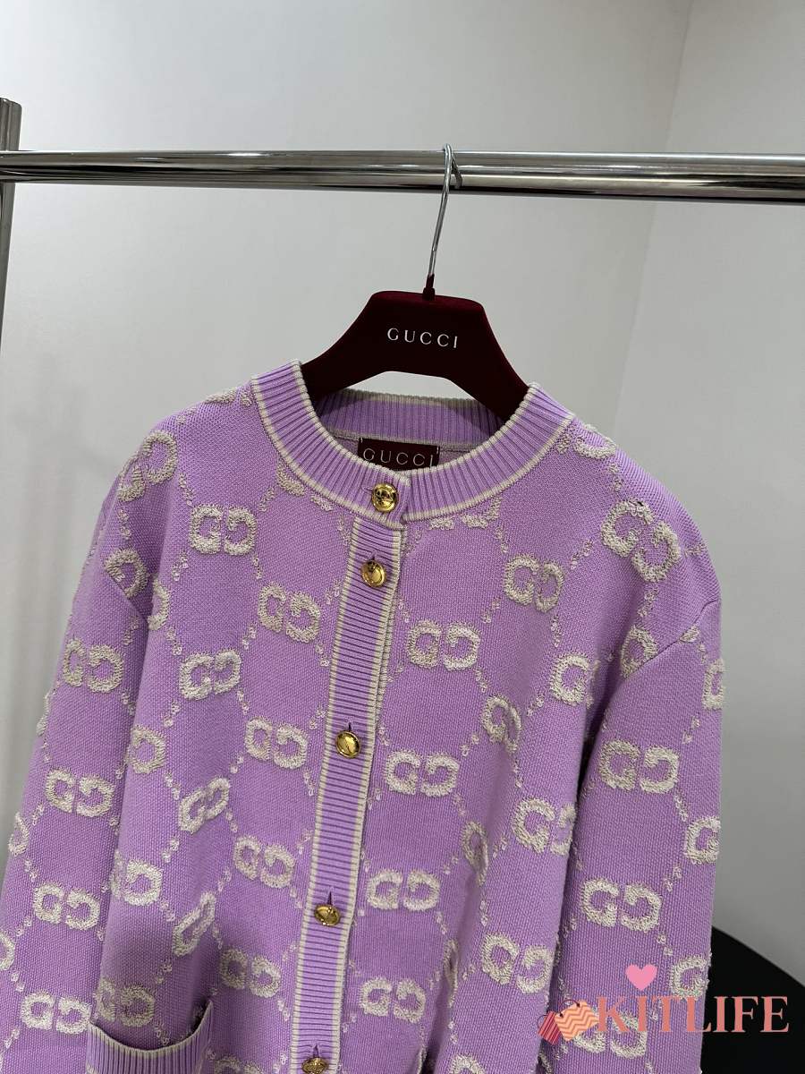 Kitlife Gucci GG Wool Jacquard Cardigan Purple & White
