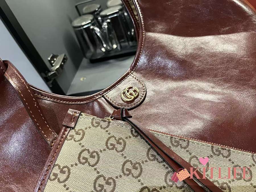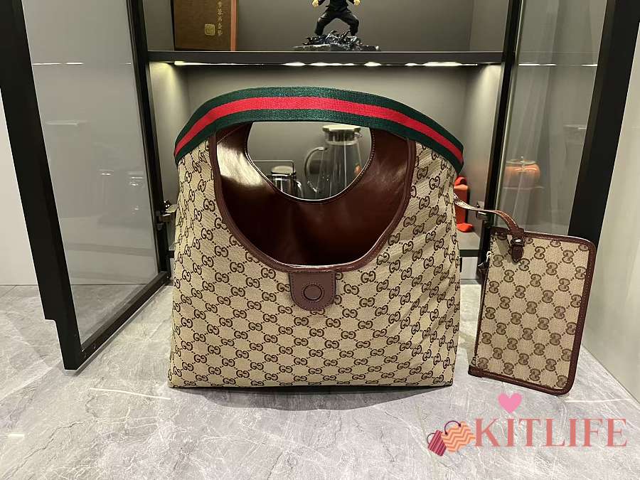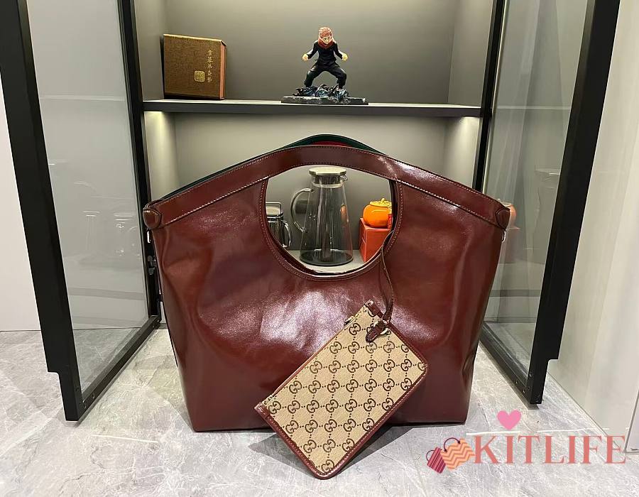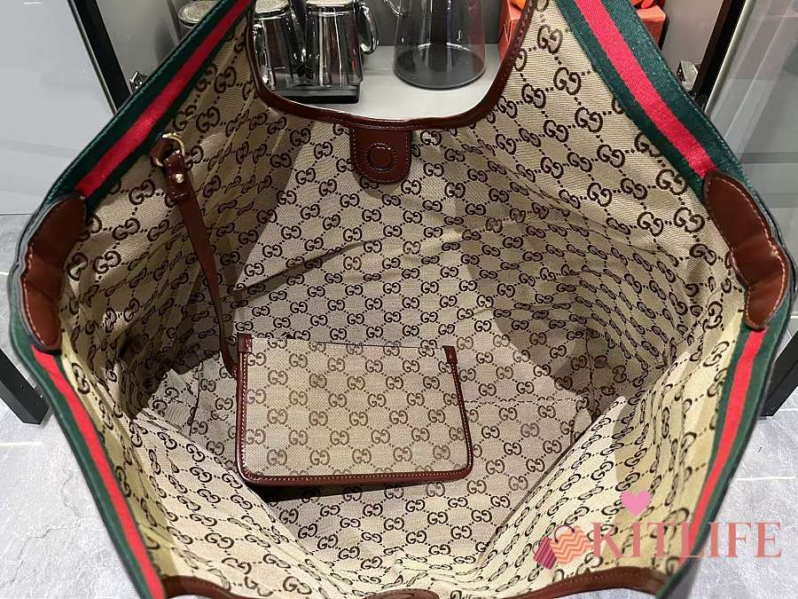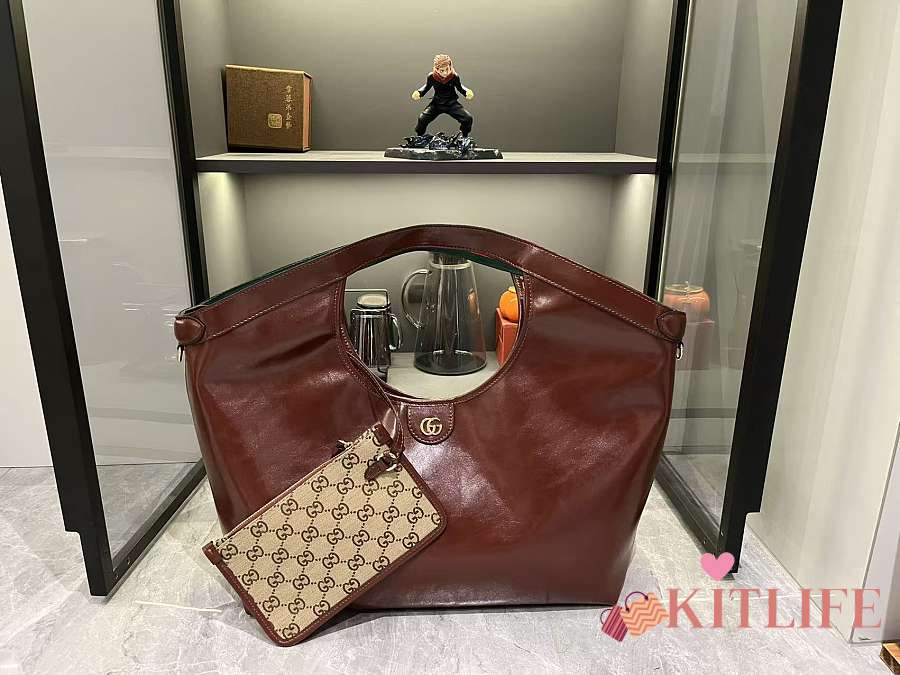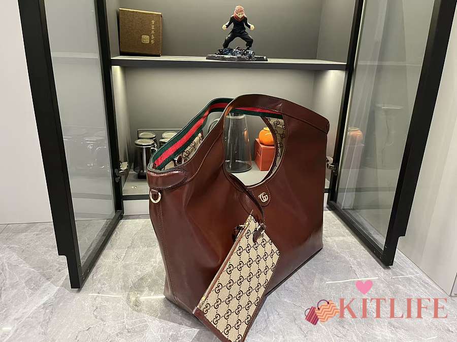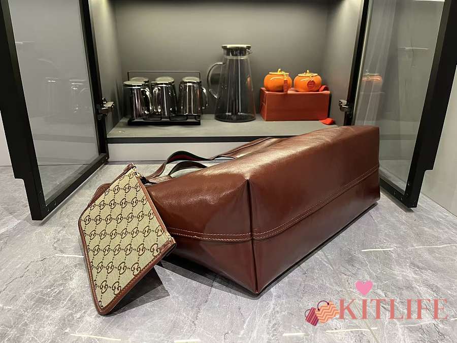 Kitlife Gucci Giglio Large Tote Bag Brown Leather 853971 60x47x16cm