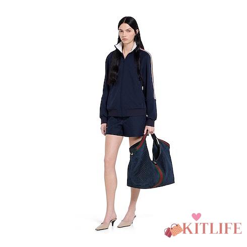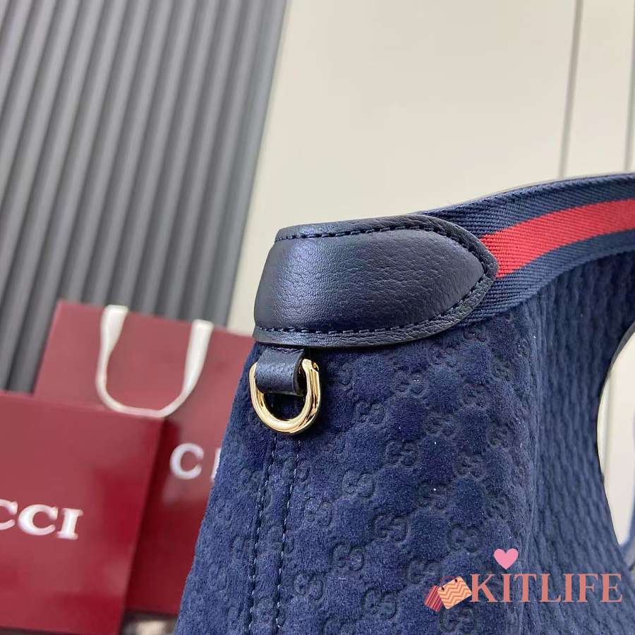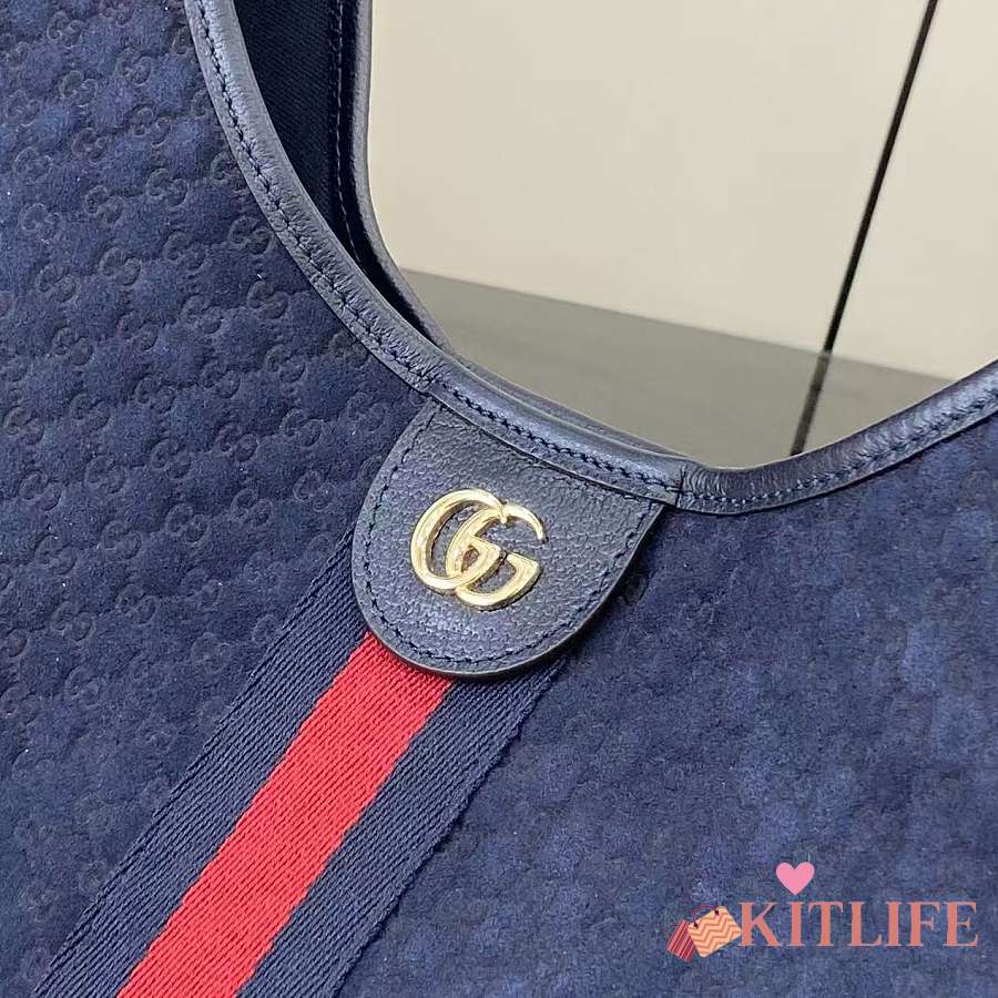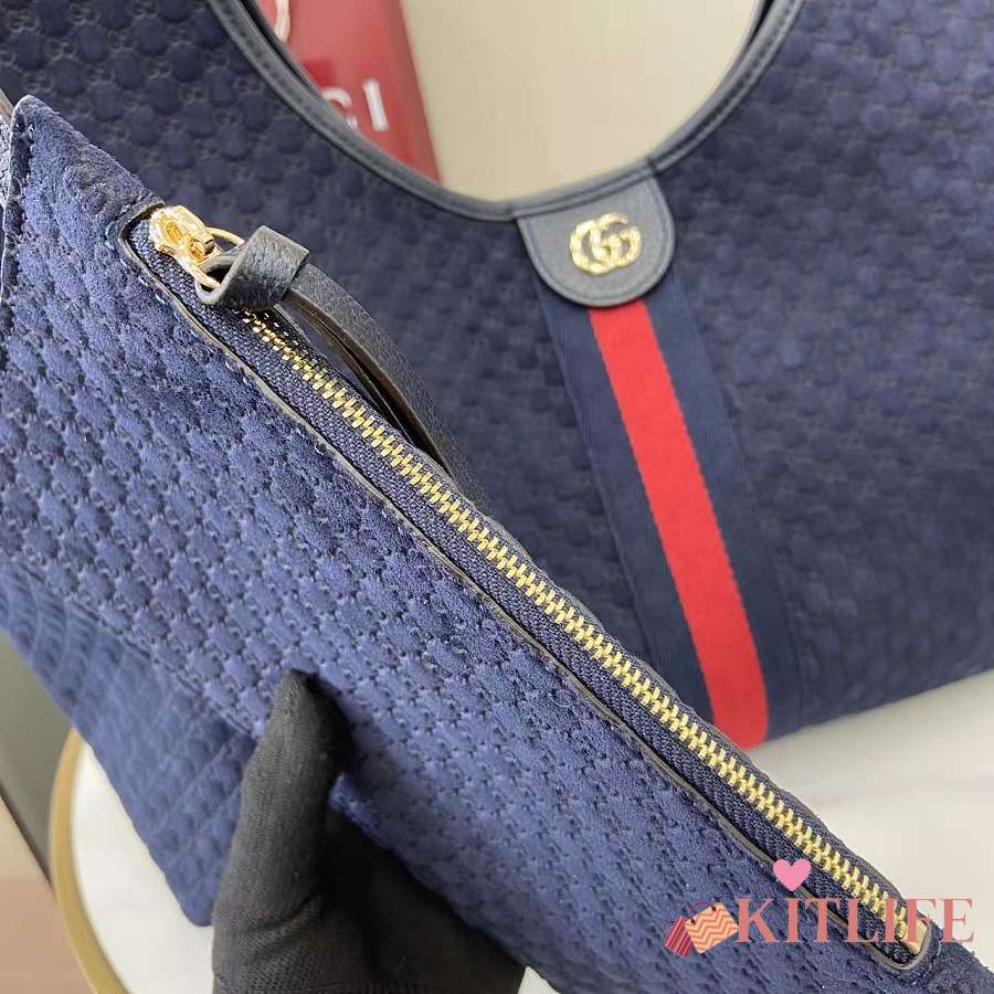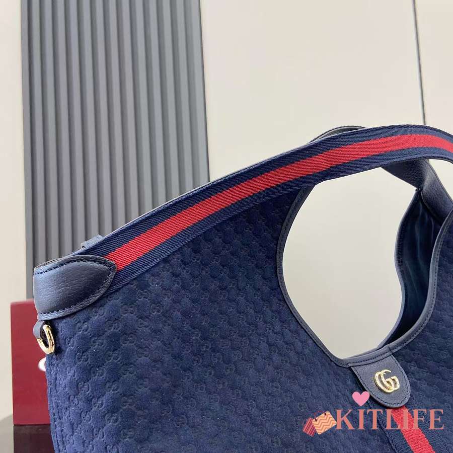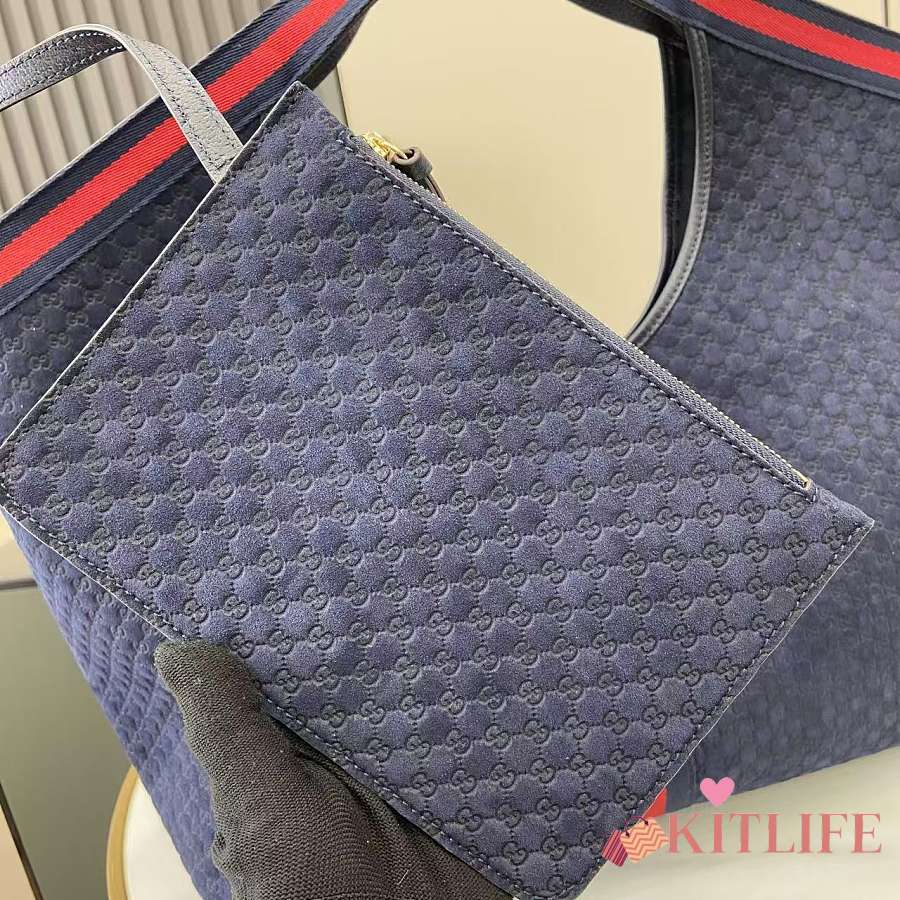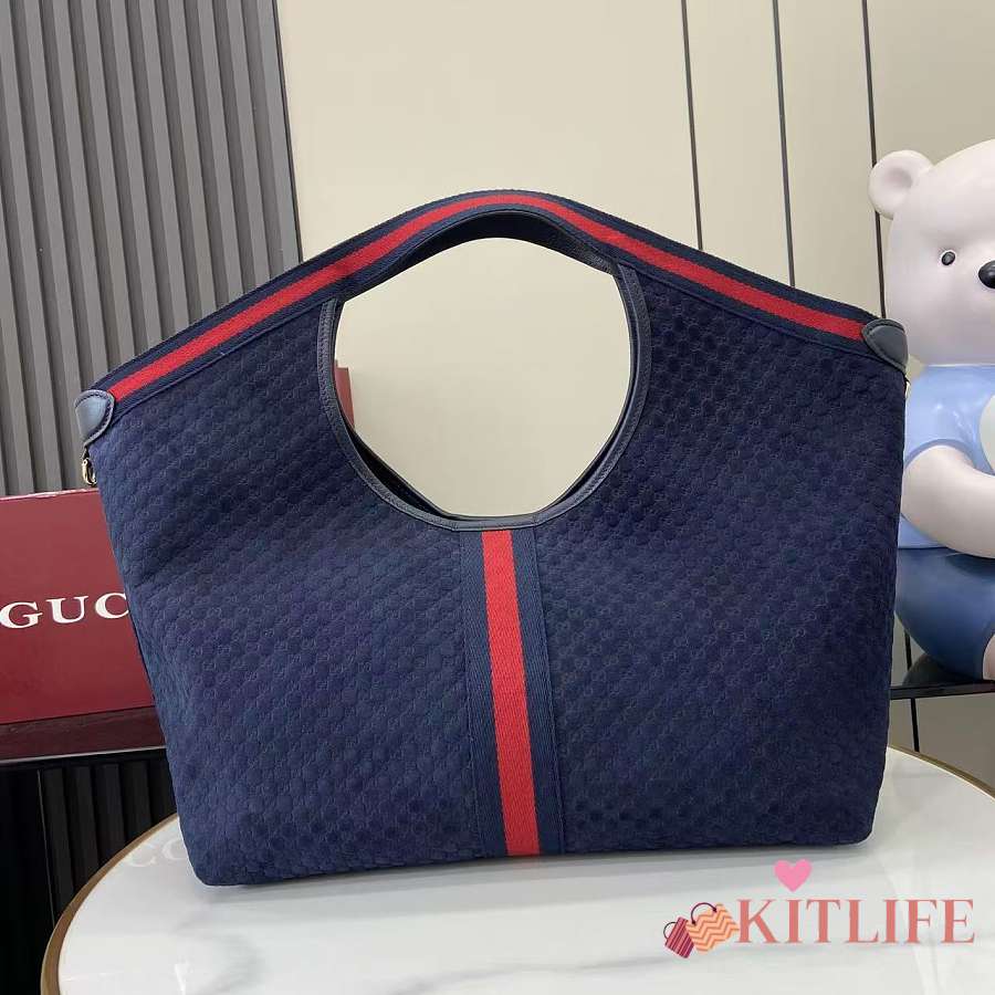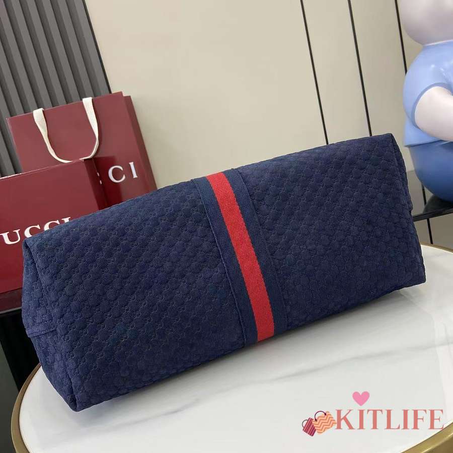 Kitlife Gucci Giglio Large Tote Bag Dark Blue Suede GG Canvas 853971 60x47x16cm