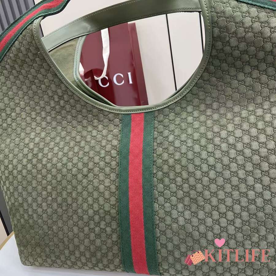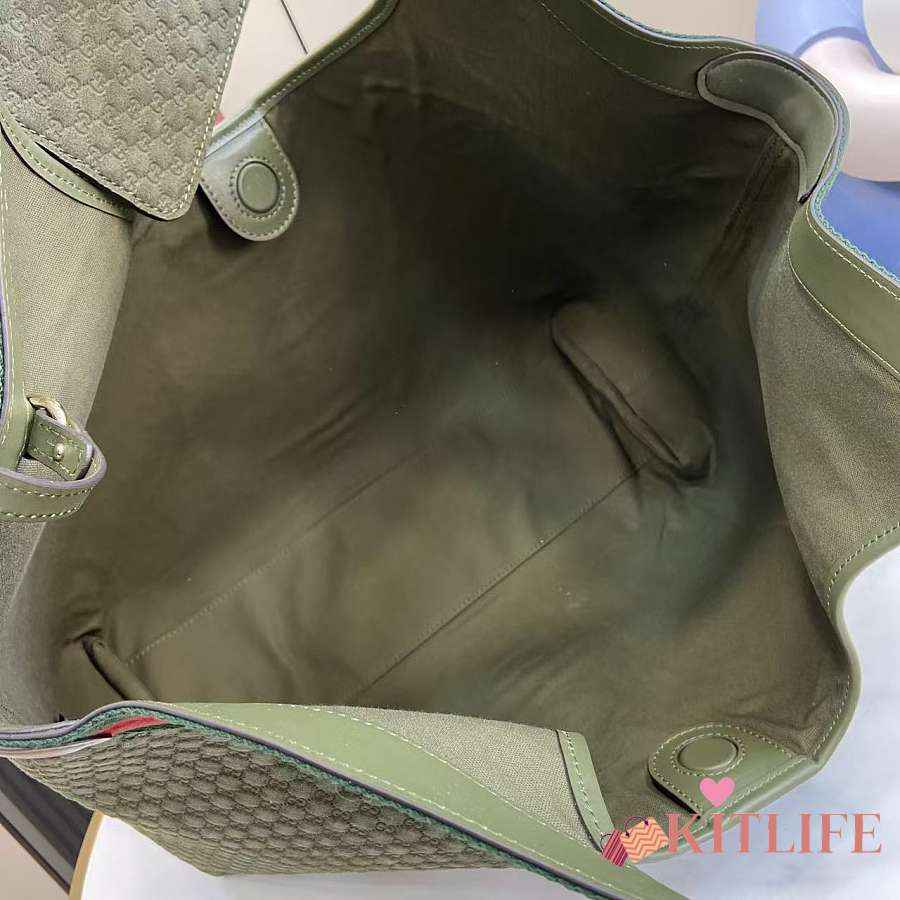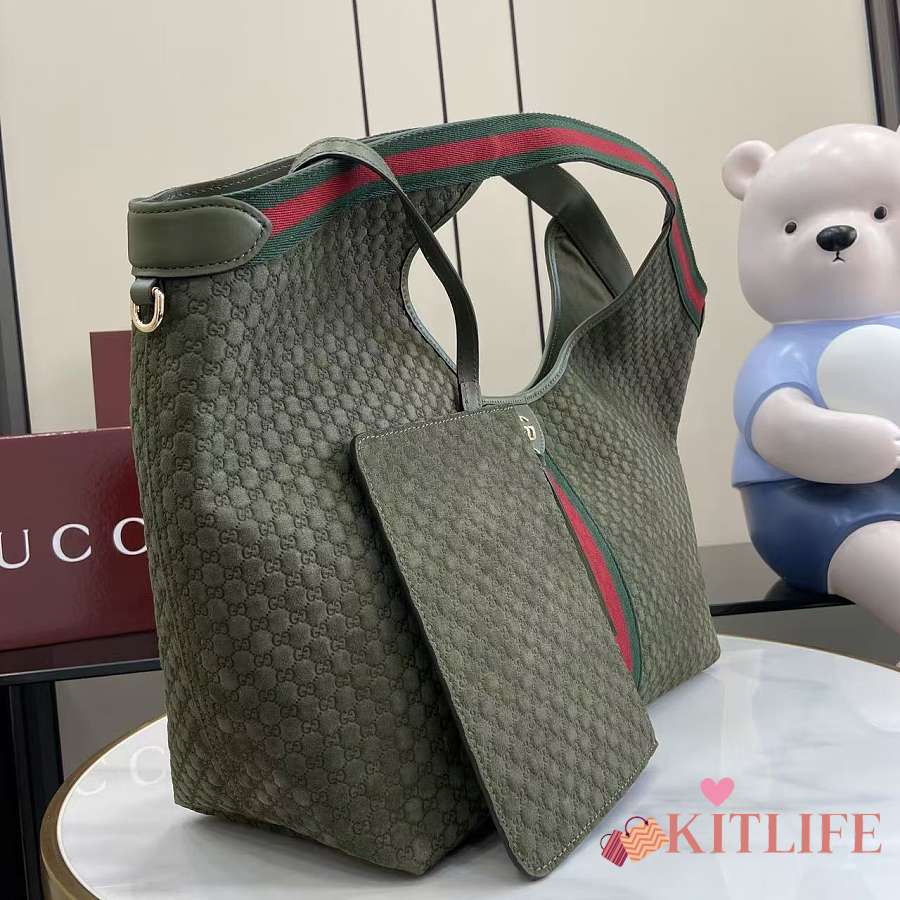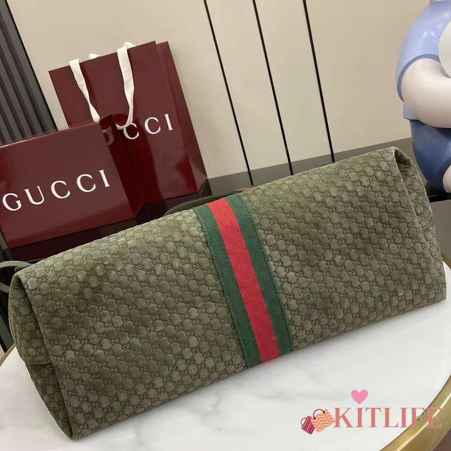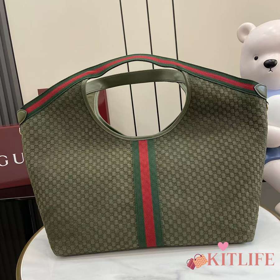 Kitlife Gucci Giglio Large Tote Bag Green Suede GG Canvas 853971 60x47x16cm