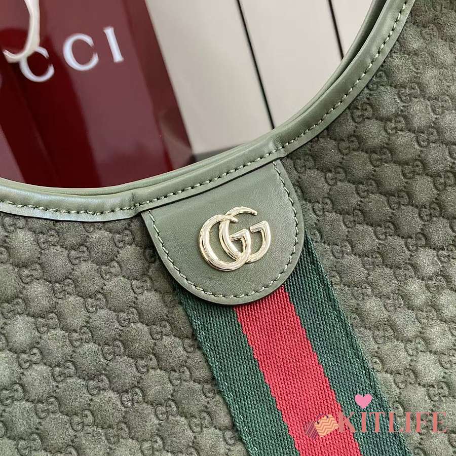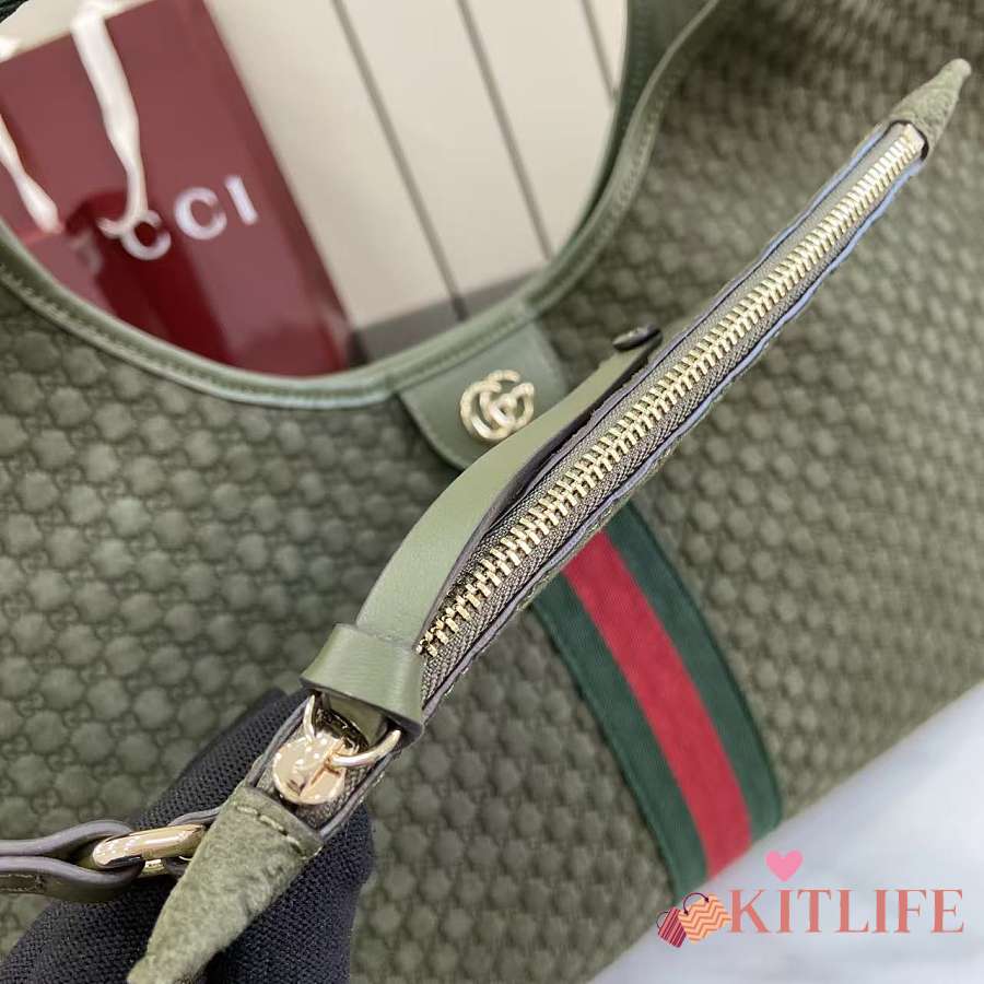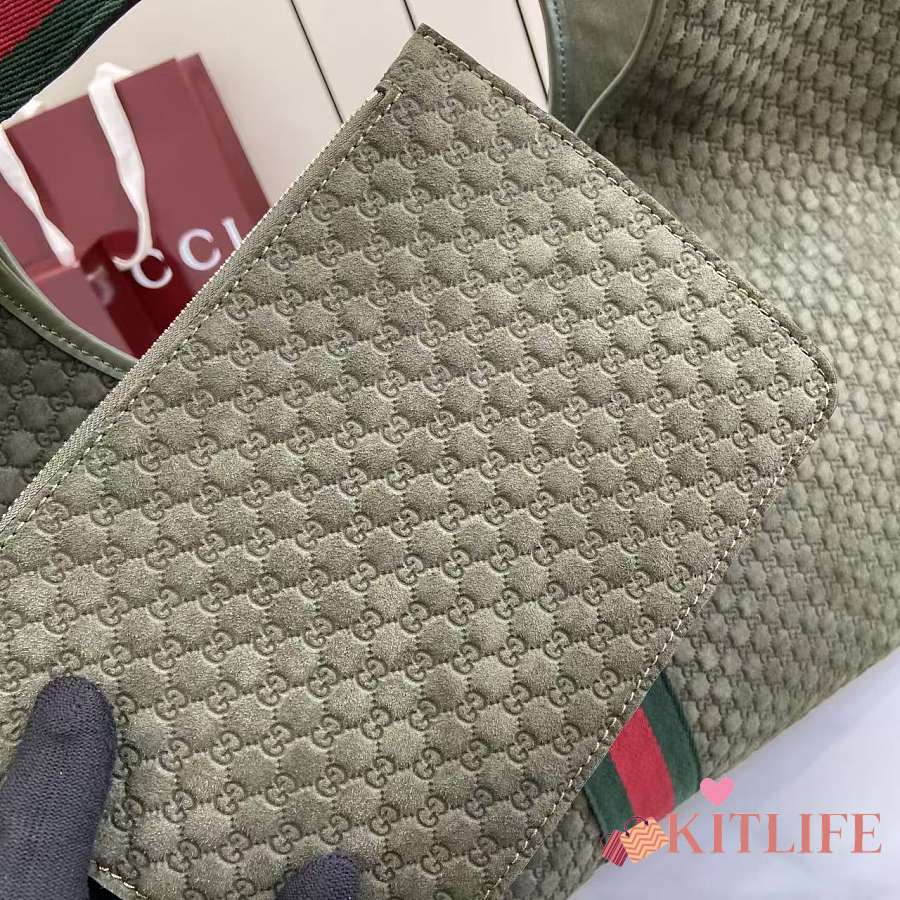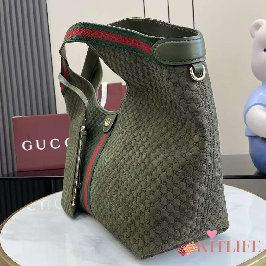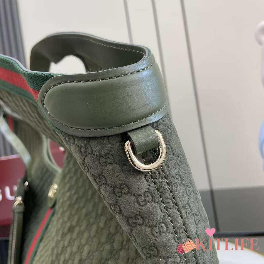 Kitlife Gucci Giglio Large Tote Bag Green Suede GG Canvas 853971 60x47x16cm