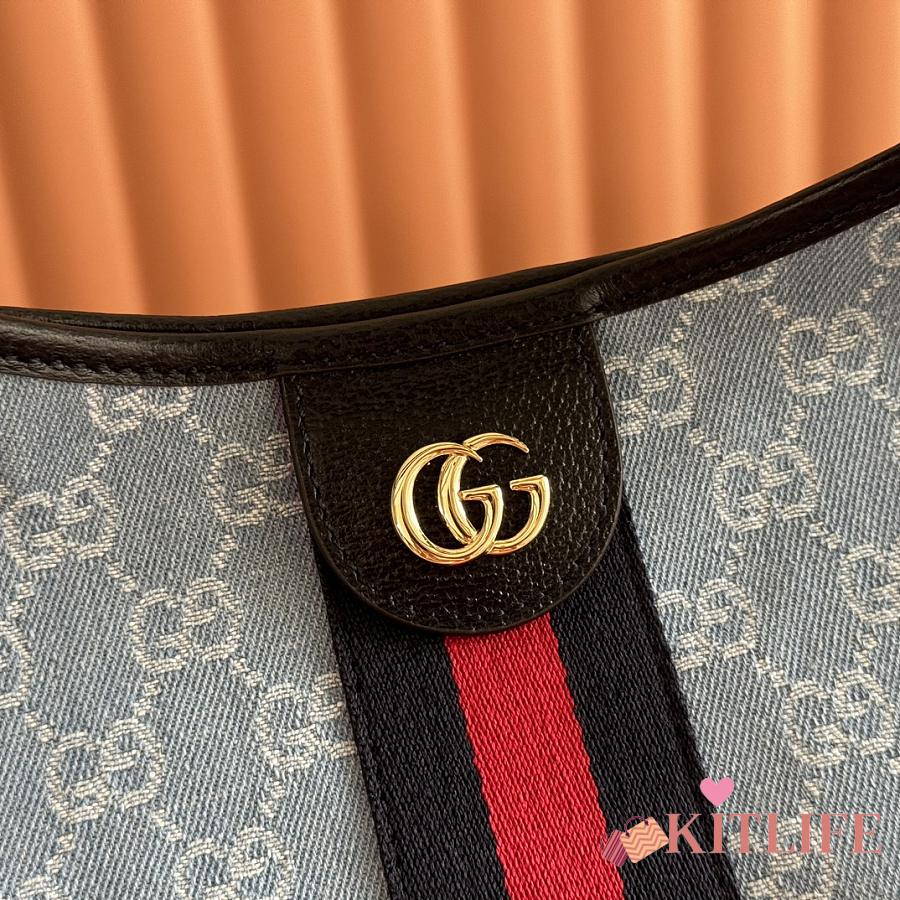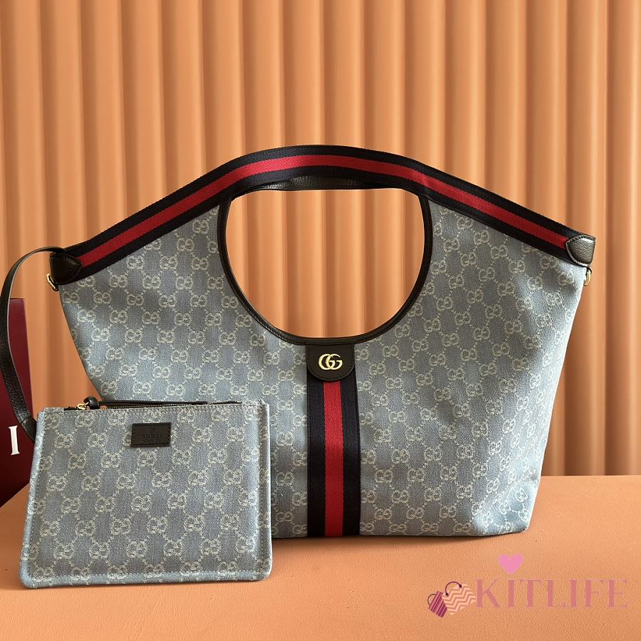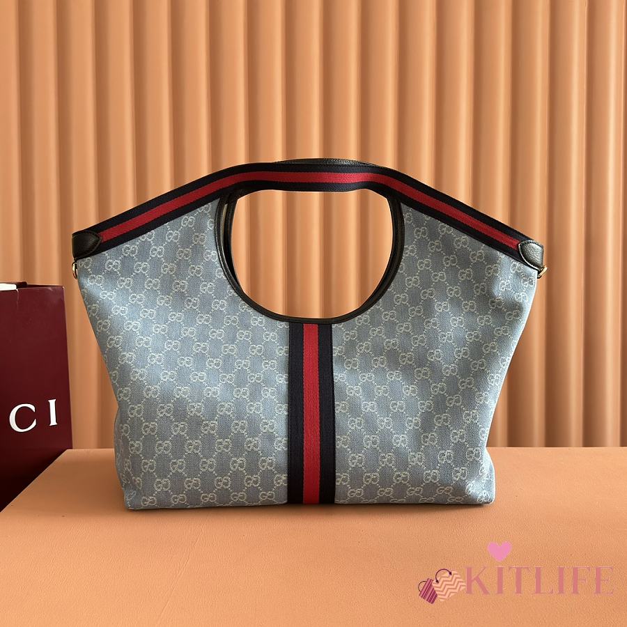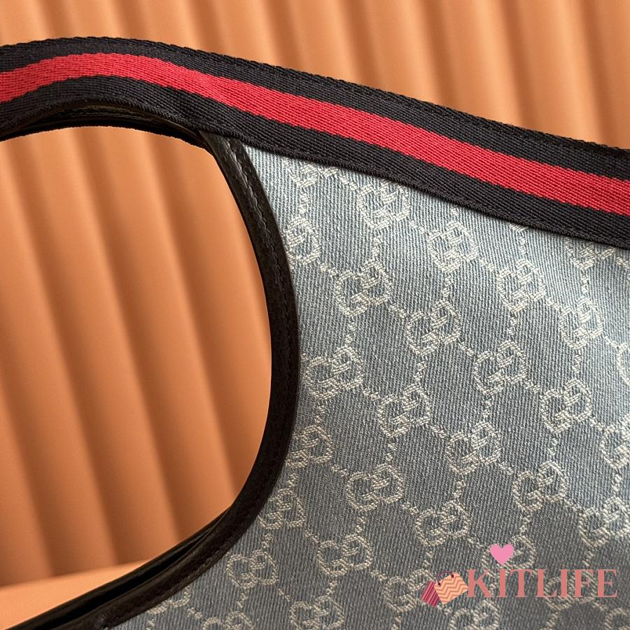 Kitlife Gucci Totissima Large Tote Bag Light Blue GG Denim 837190 30.5x28x27cm