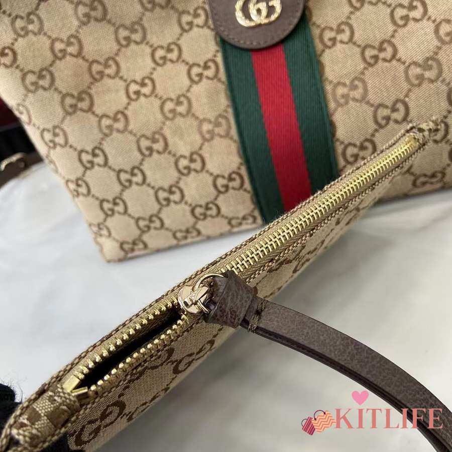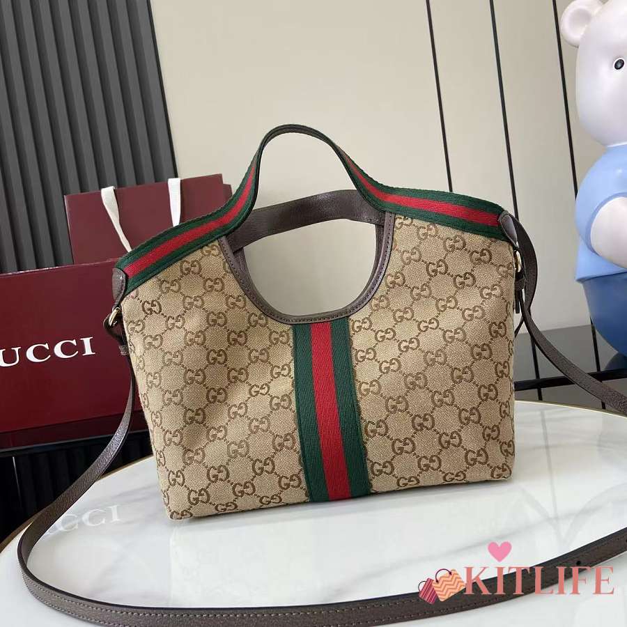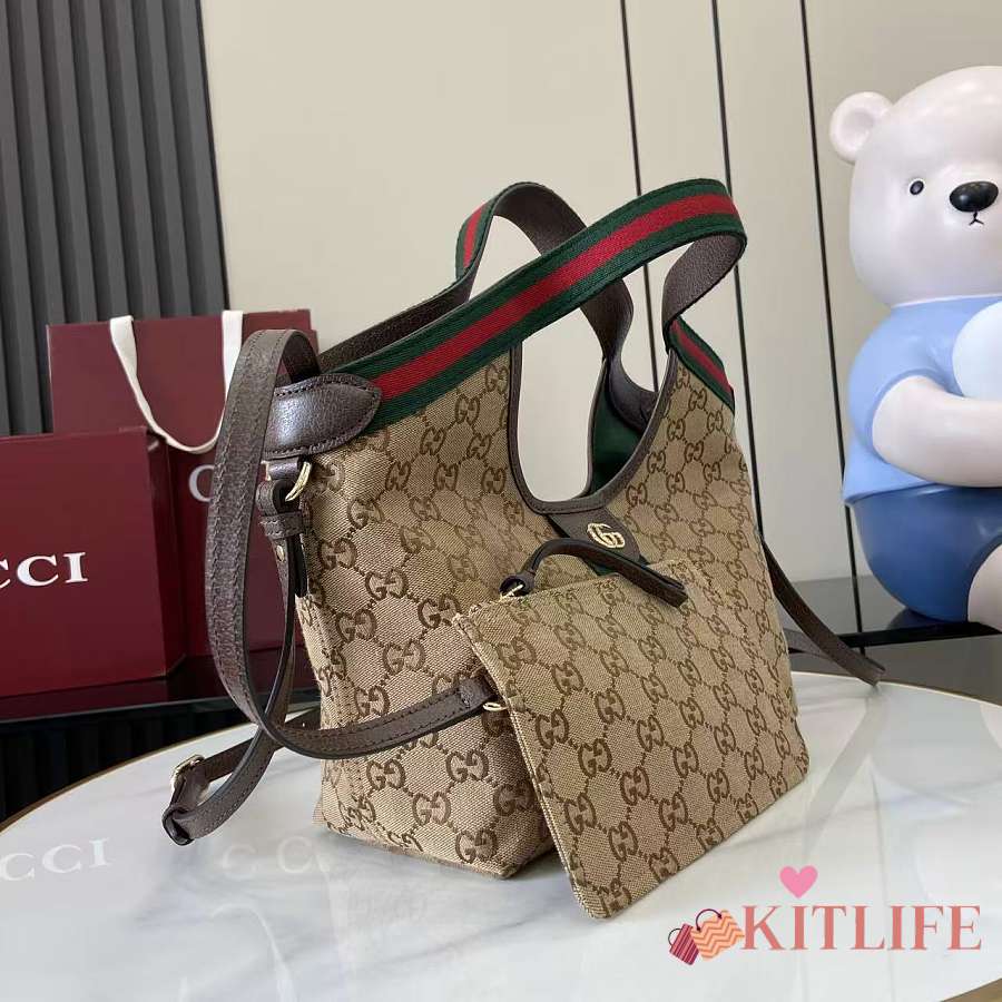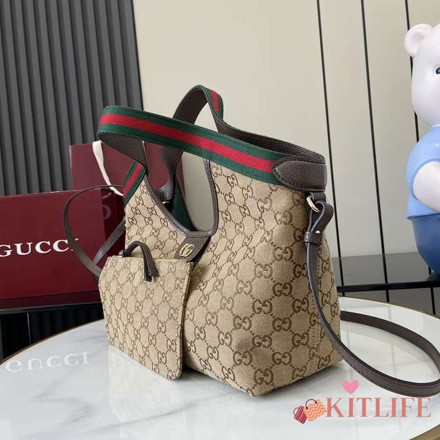 Kitlife Gucci Giglio Small Tote Bag Beige And Brown GG Canvas 860845 25x20x15cm