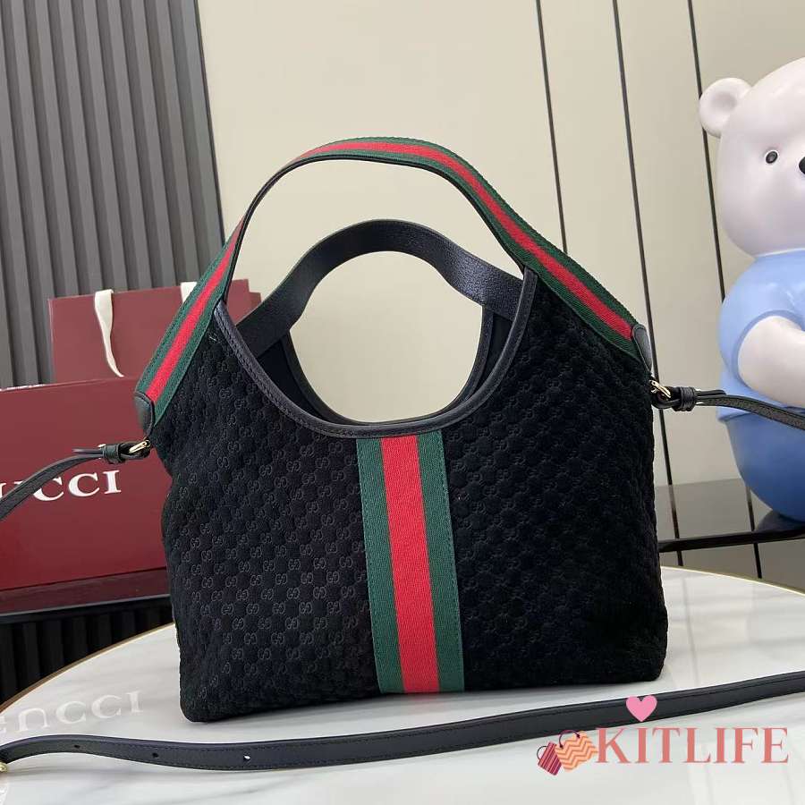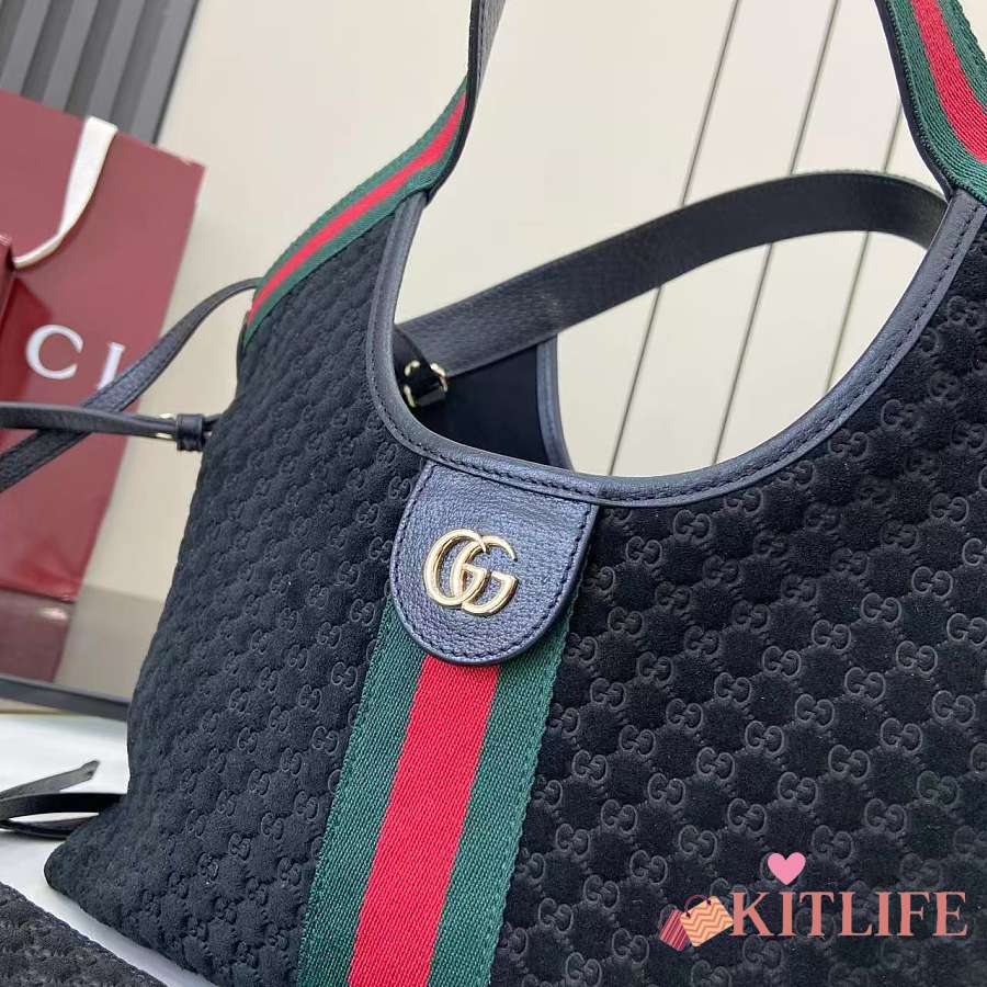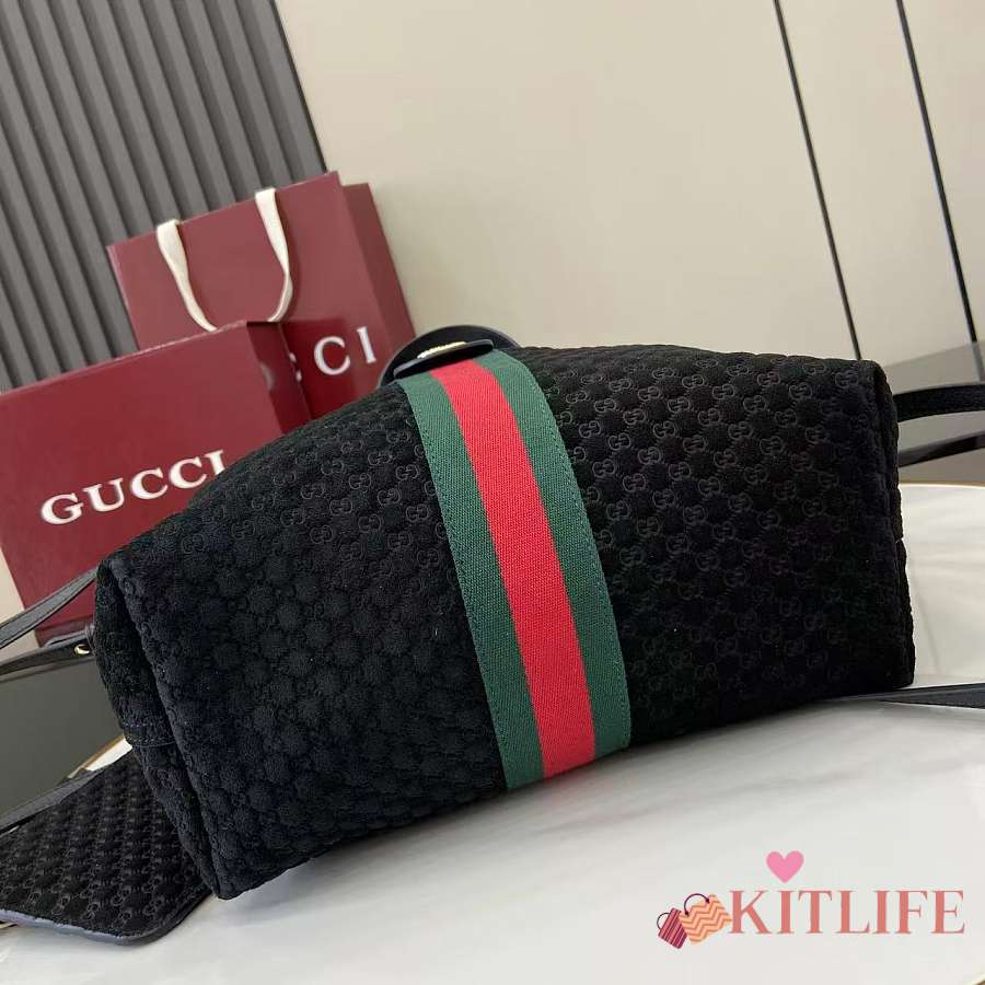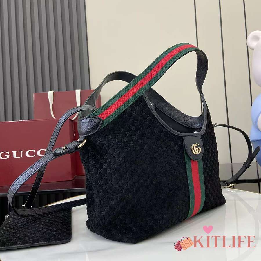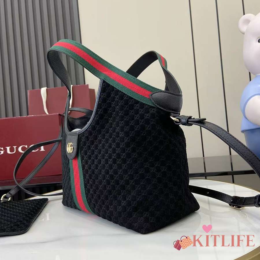 Kitlife Gucci Giglio Small Tote Bag Black Suede 860845 25x20x15cm