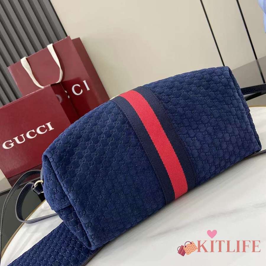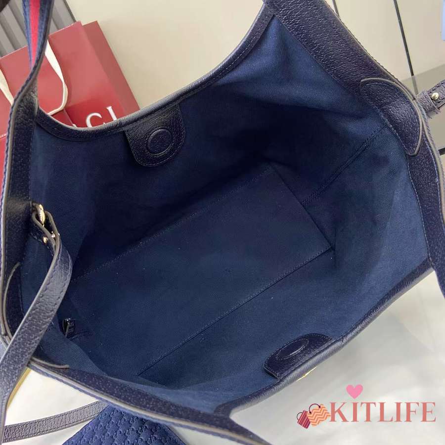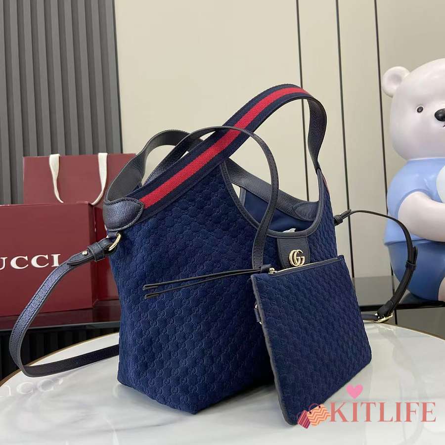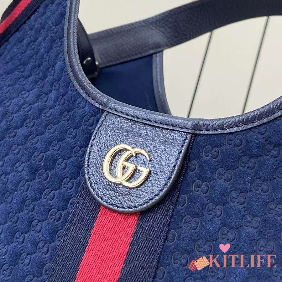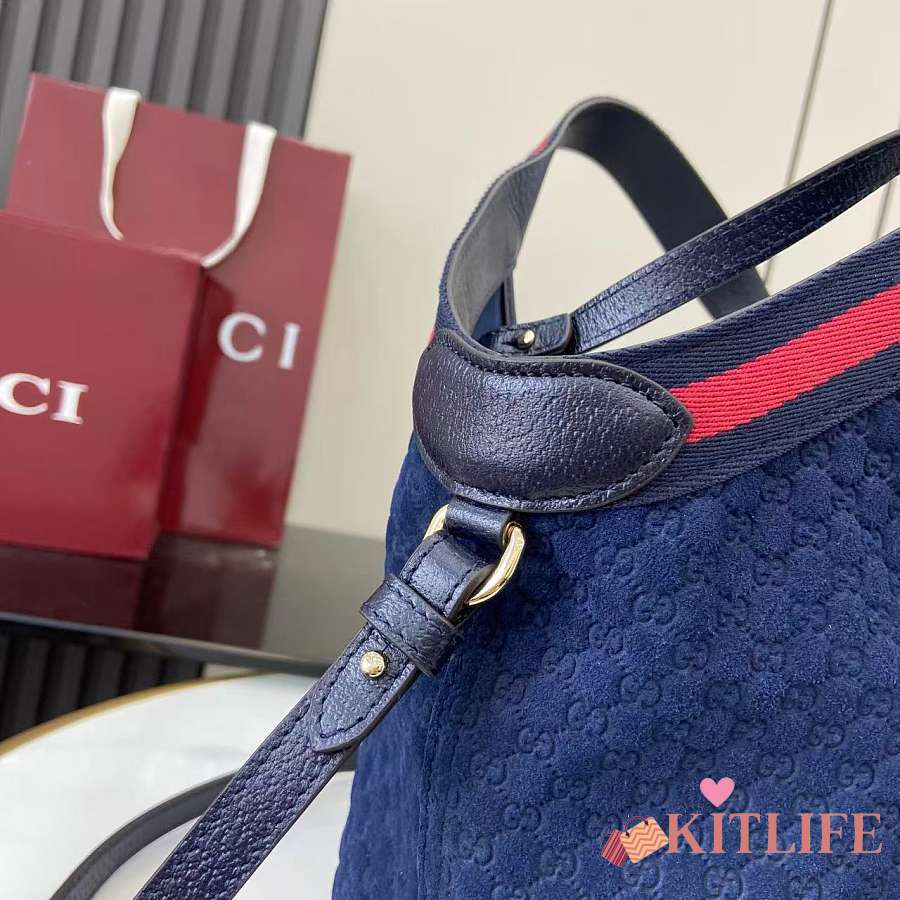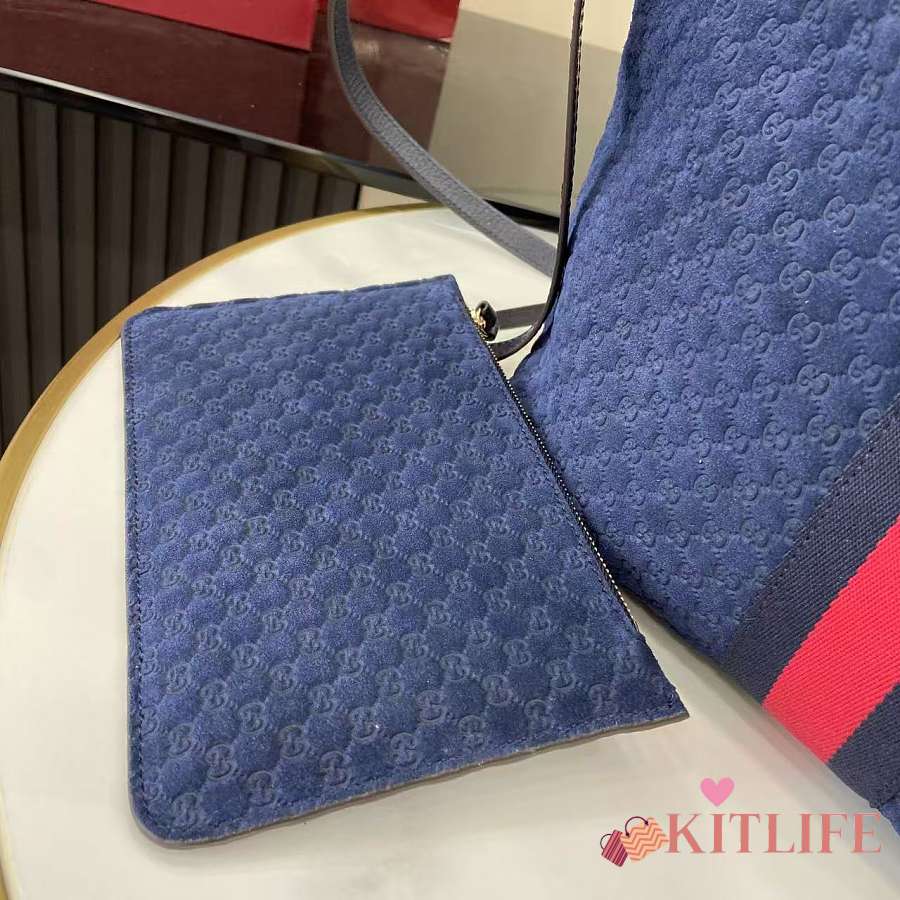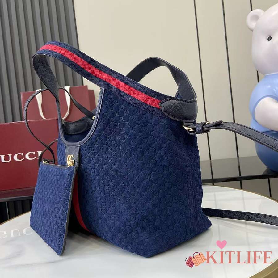 Kitlife Gucci Giglio Small Tote Bag Dark Blue Suede 860845 25x20x15cm