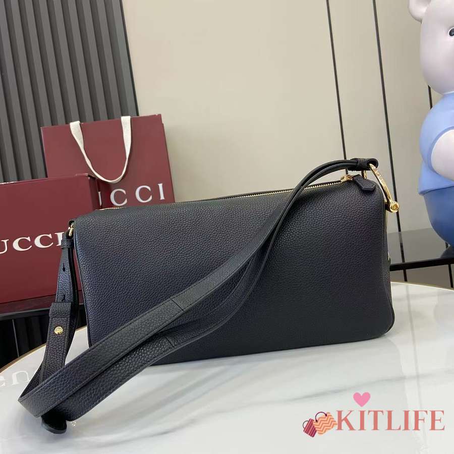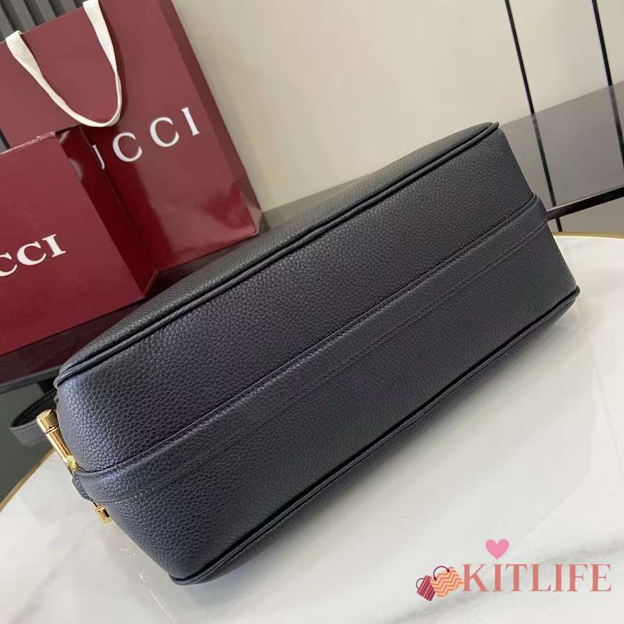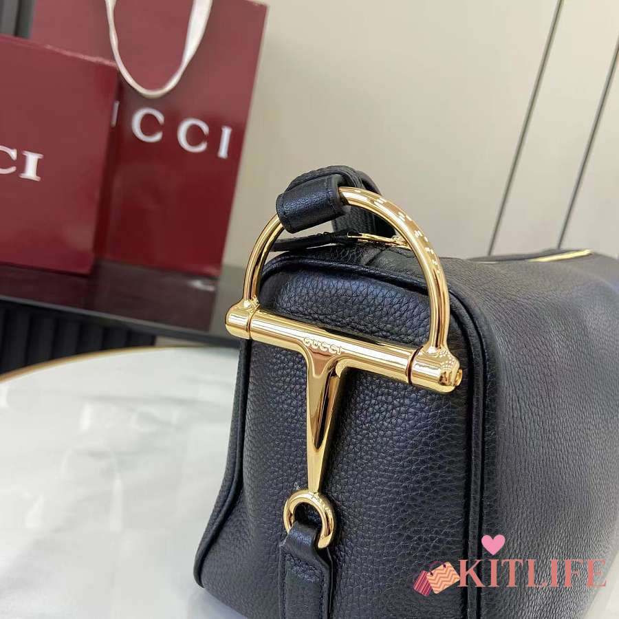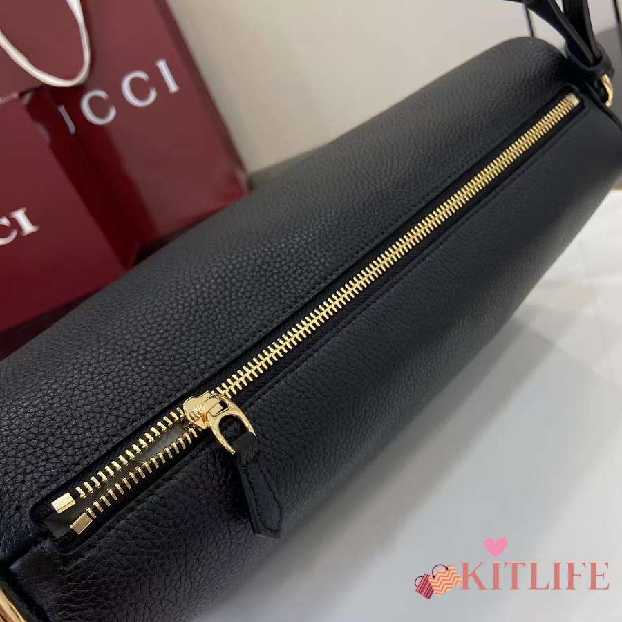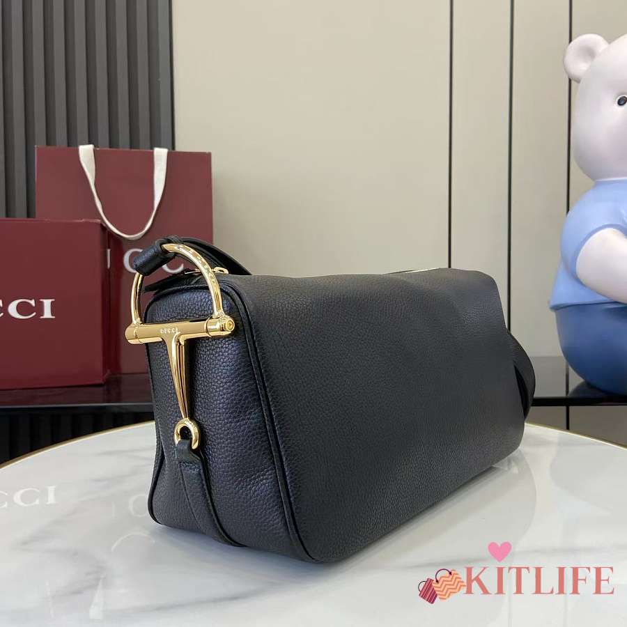 Kitlife Gucci Half Horsebit Medium Shoulder Bag Black 860787 31.5x17x12cm