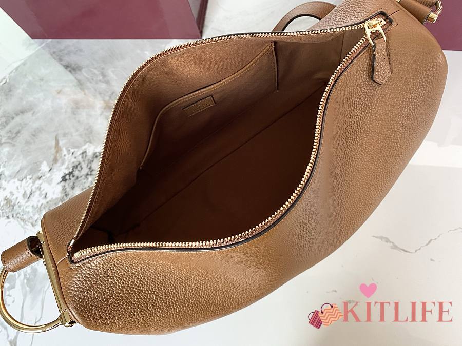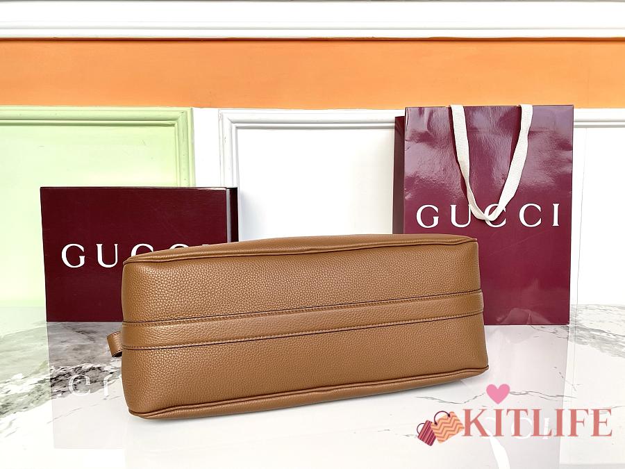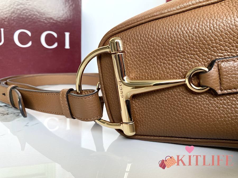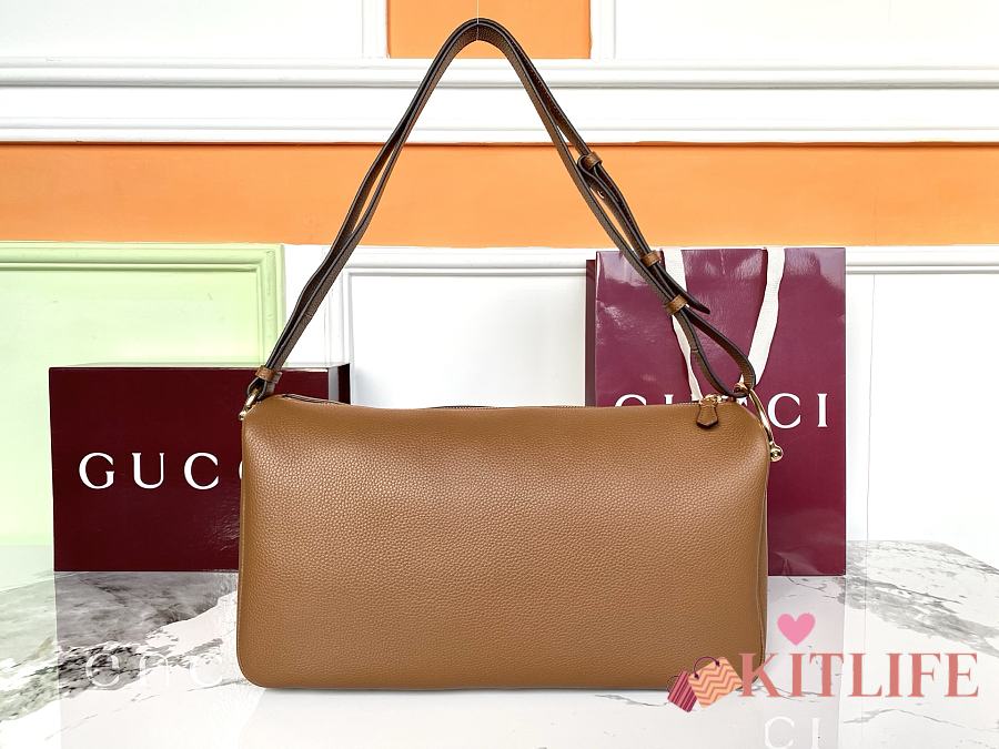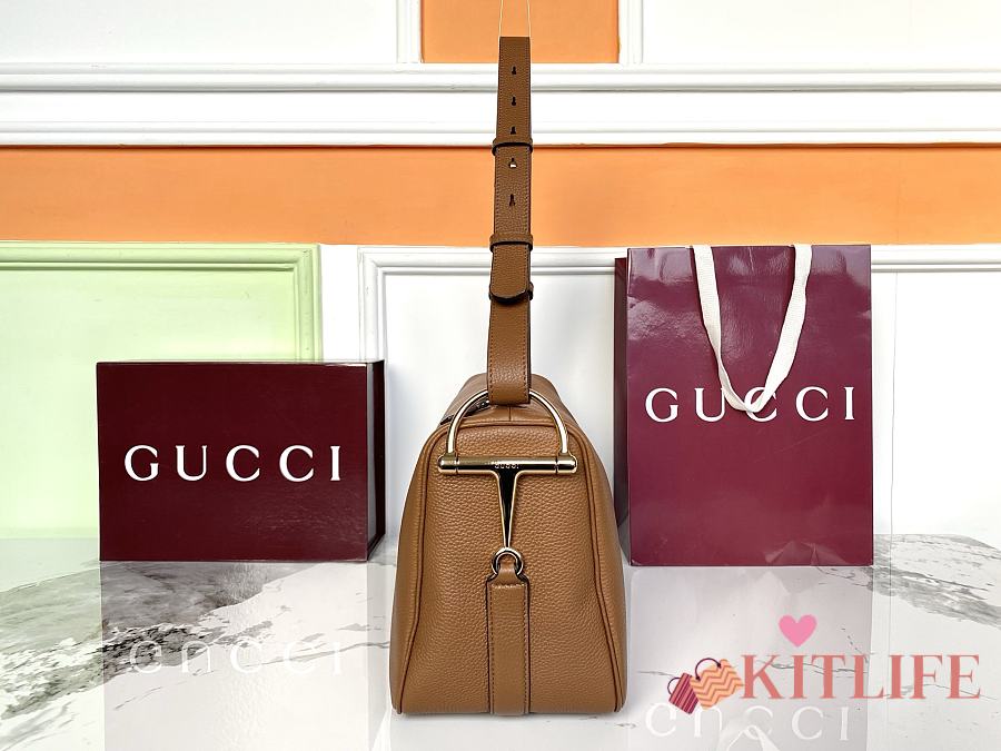 Kitlife Gucci Half Horsebit Medium Shoulder Bag Brown Leather 862530 38x20x15cm
