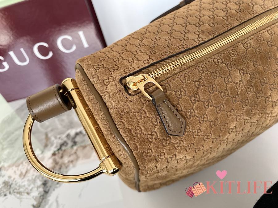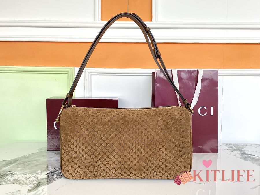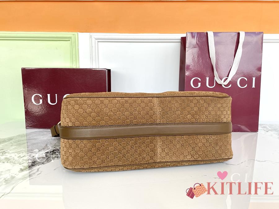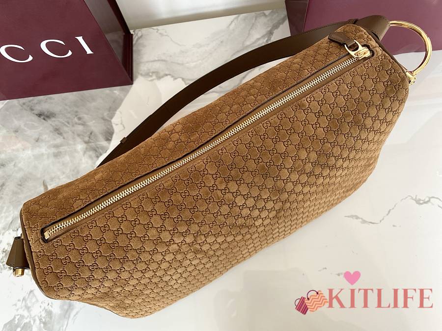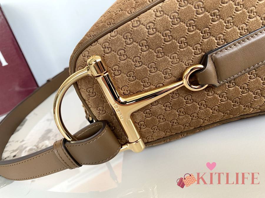 Kitlife Gucci Half Horsebit Medium Shoulder Bag Brown Suede 862530 38x20x15cm