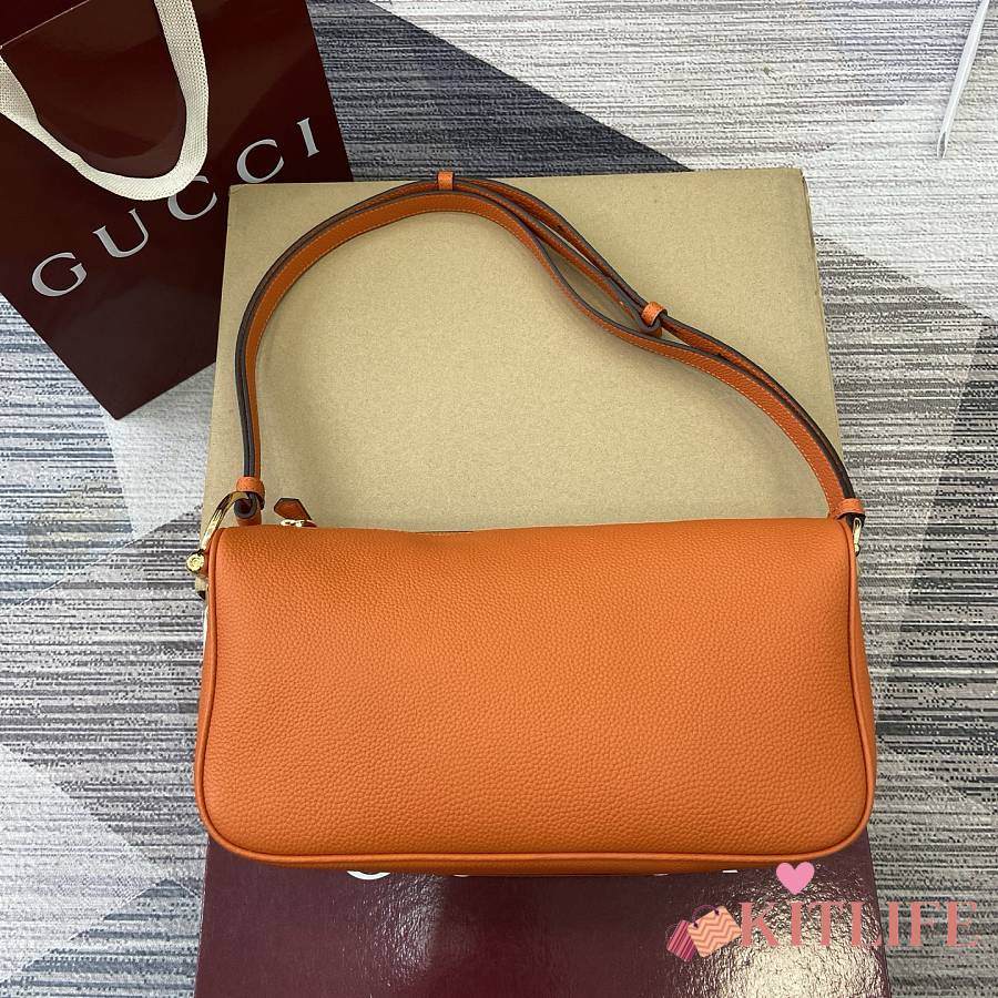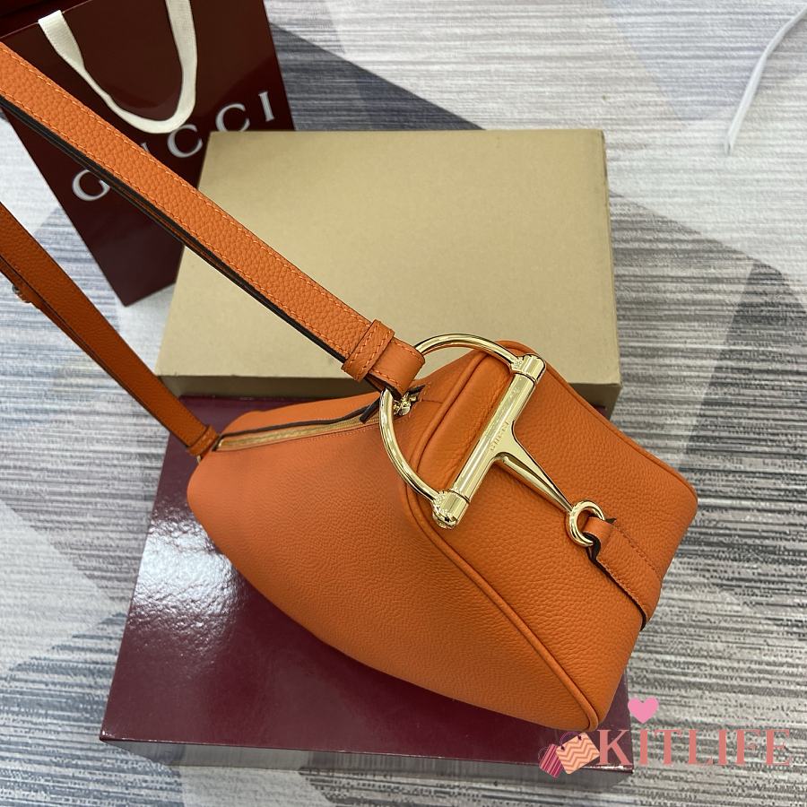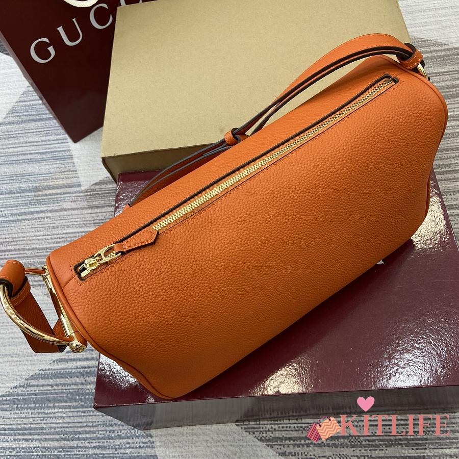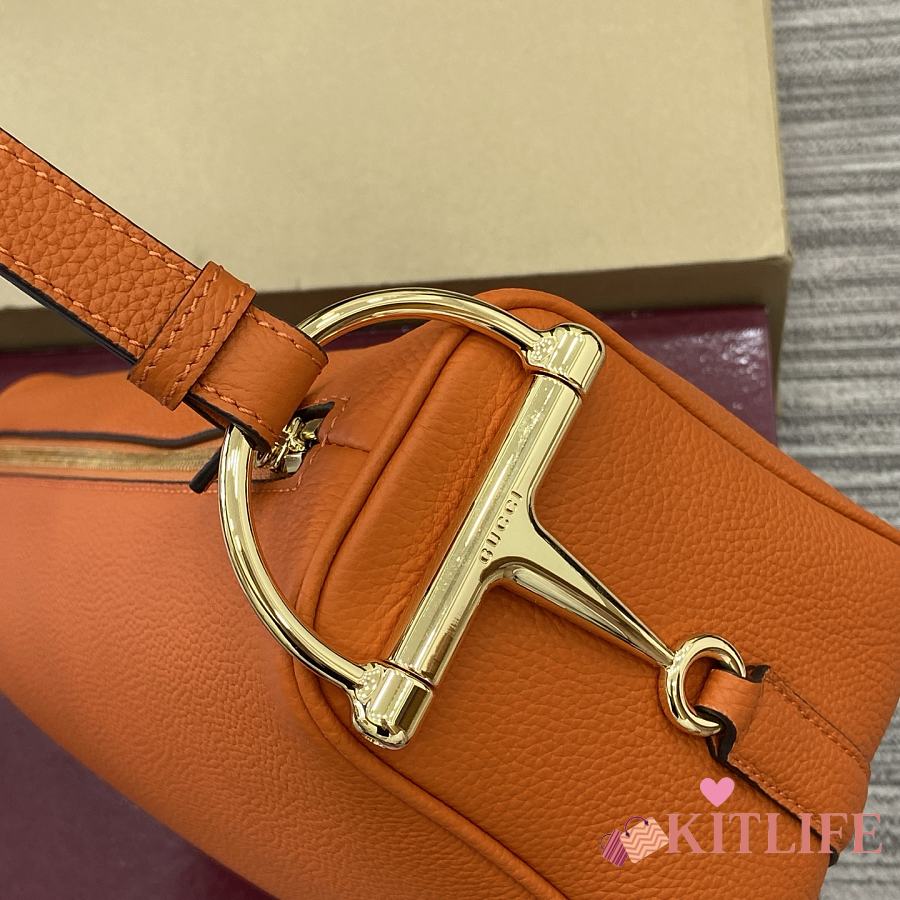 Kitlife Gucci Half Horsebit Medium Shoulder Bag Orange 860787 31.5x17x12cm