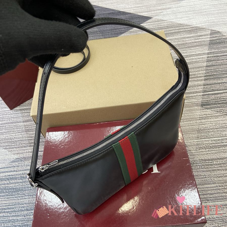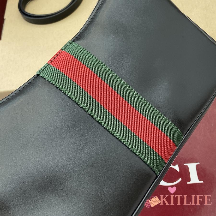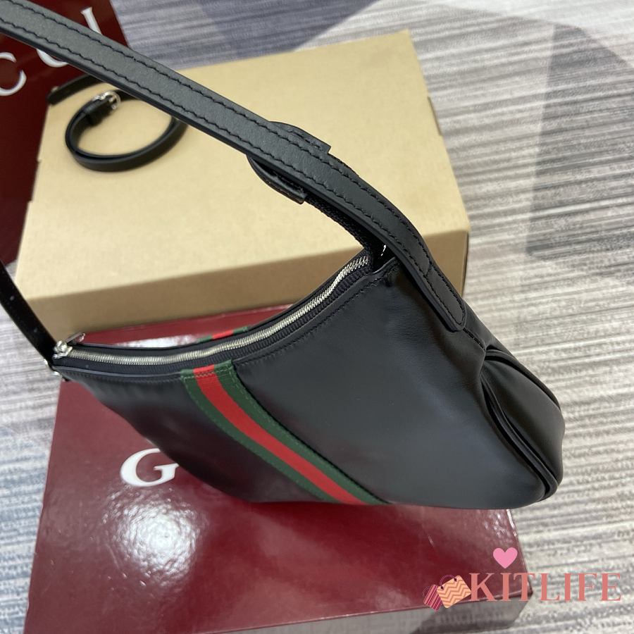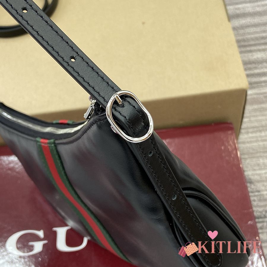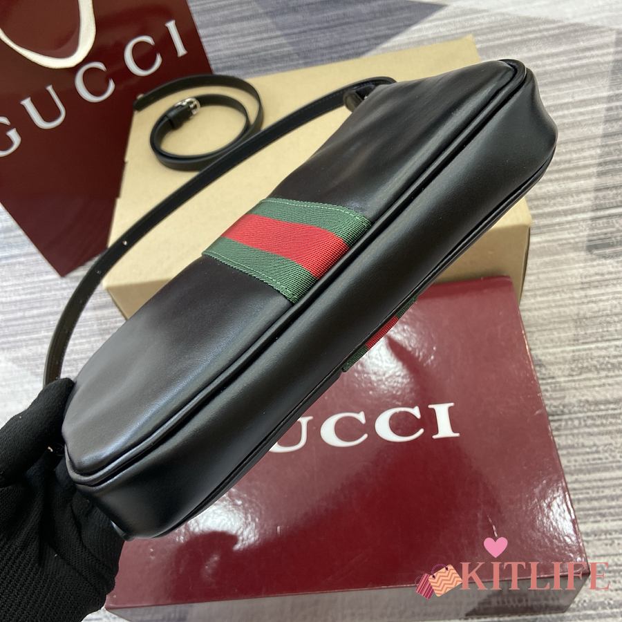 Kitlife Gucci Lunetta Crossbody Bag Black Soft Leather 863406 22.5x12.5x3.5cm