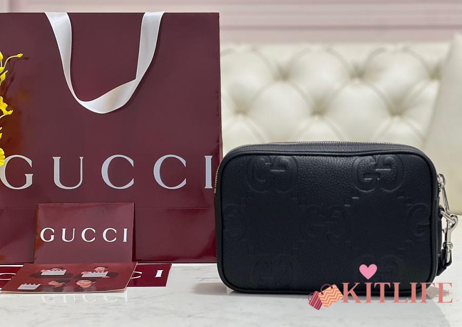 Kitlife Gucci Men Small Jumbo GG Pouch Black 802148 24x15.5x5cm