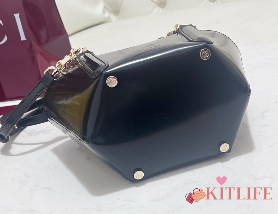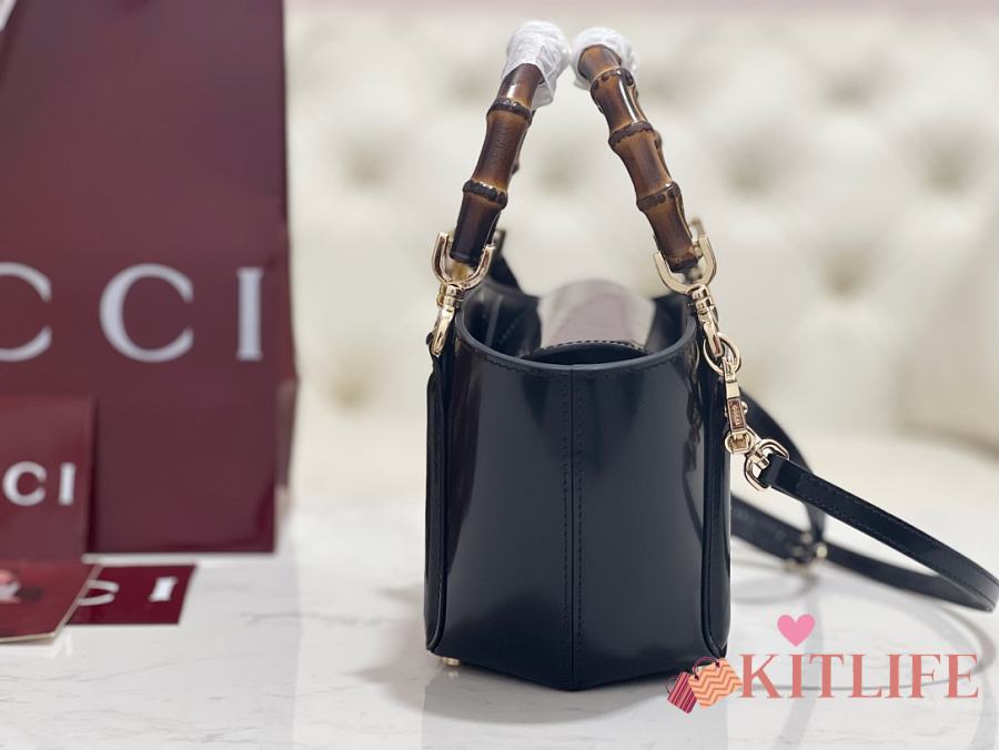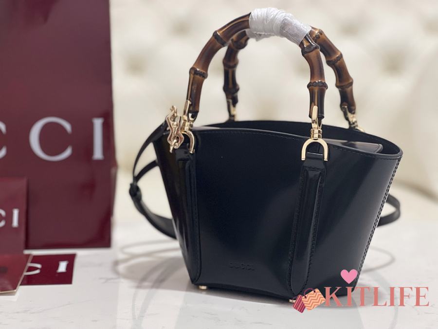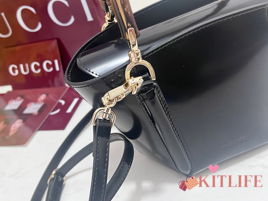 Kitlife Gucci Mini Bamboo Top Handle Tote Bag Black 805832 27×14×11.5cm