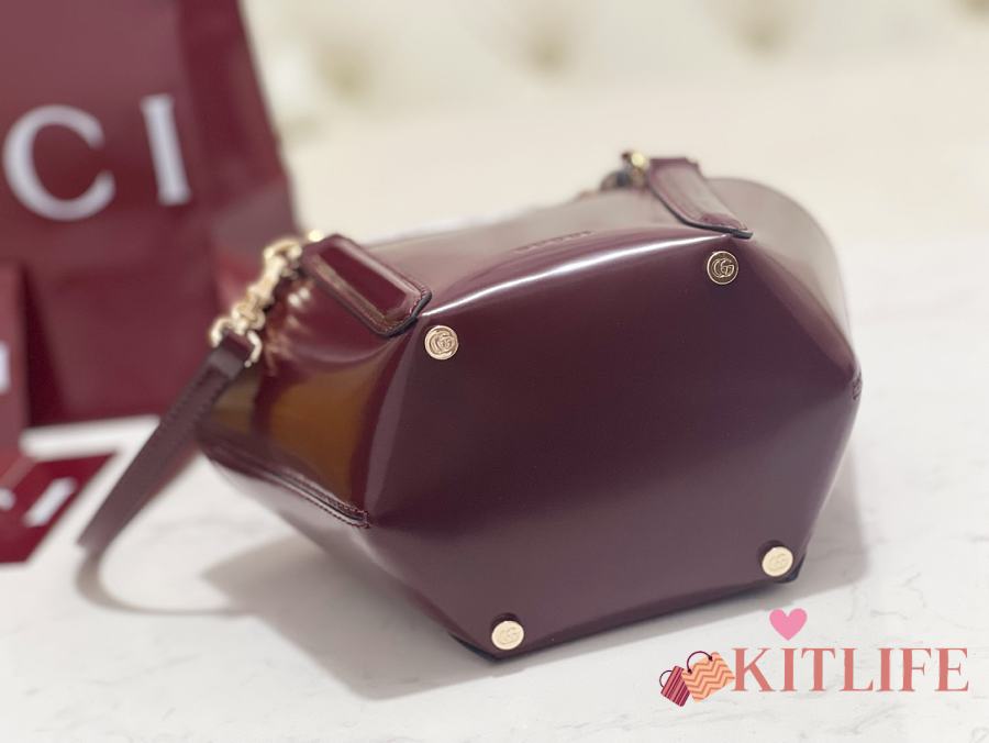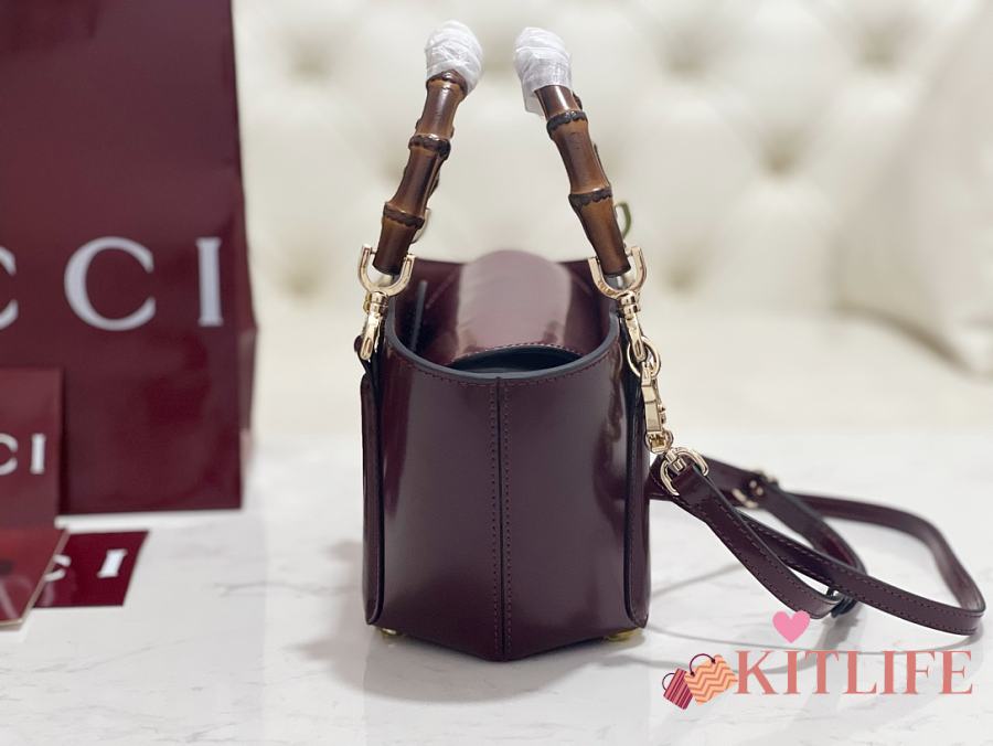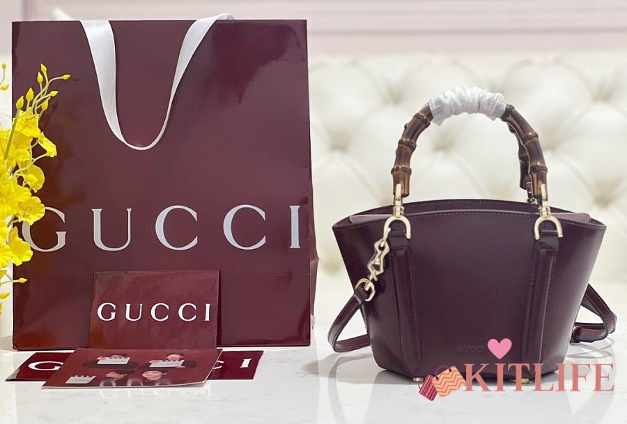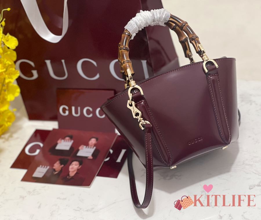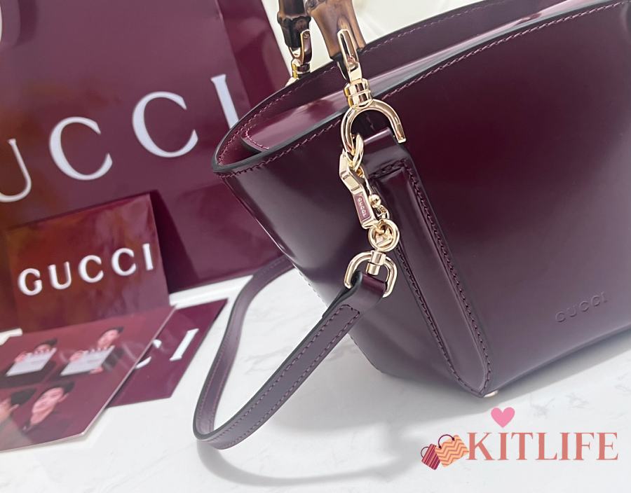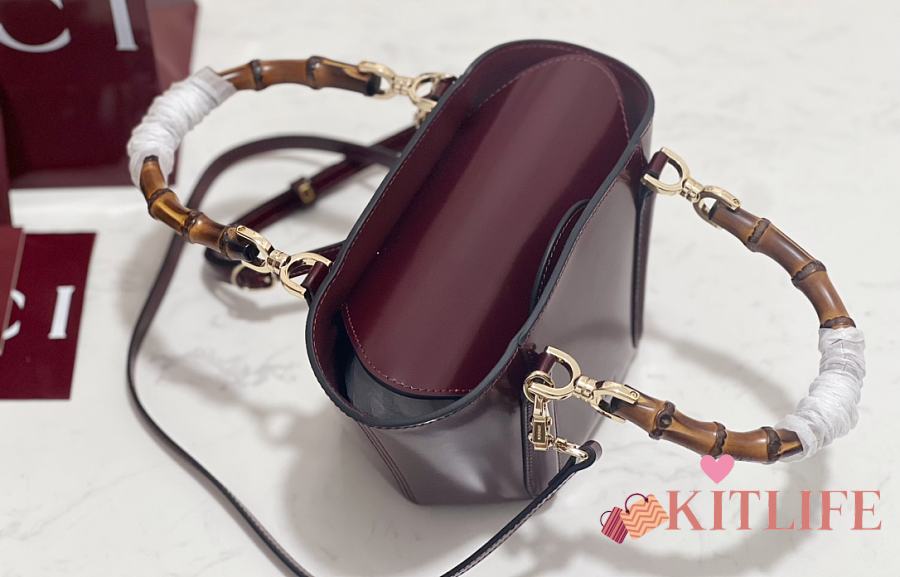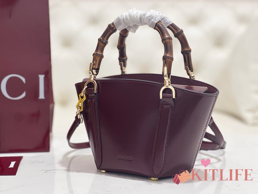 Kitlife Gucci Mini Bamboo Top Handle Tote Bag Burgundy 805832 27×14×11.5cm