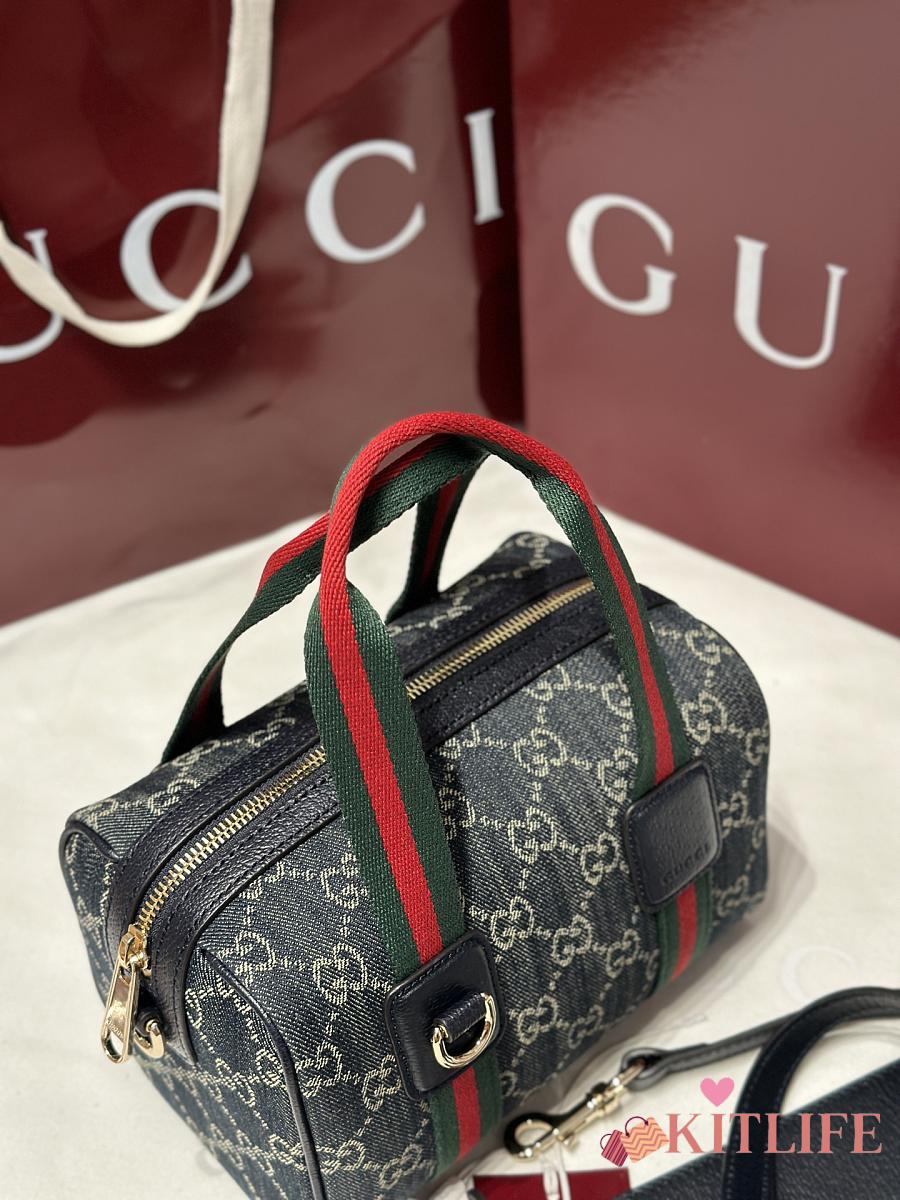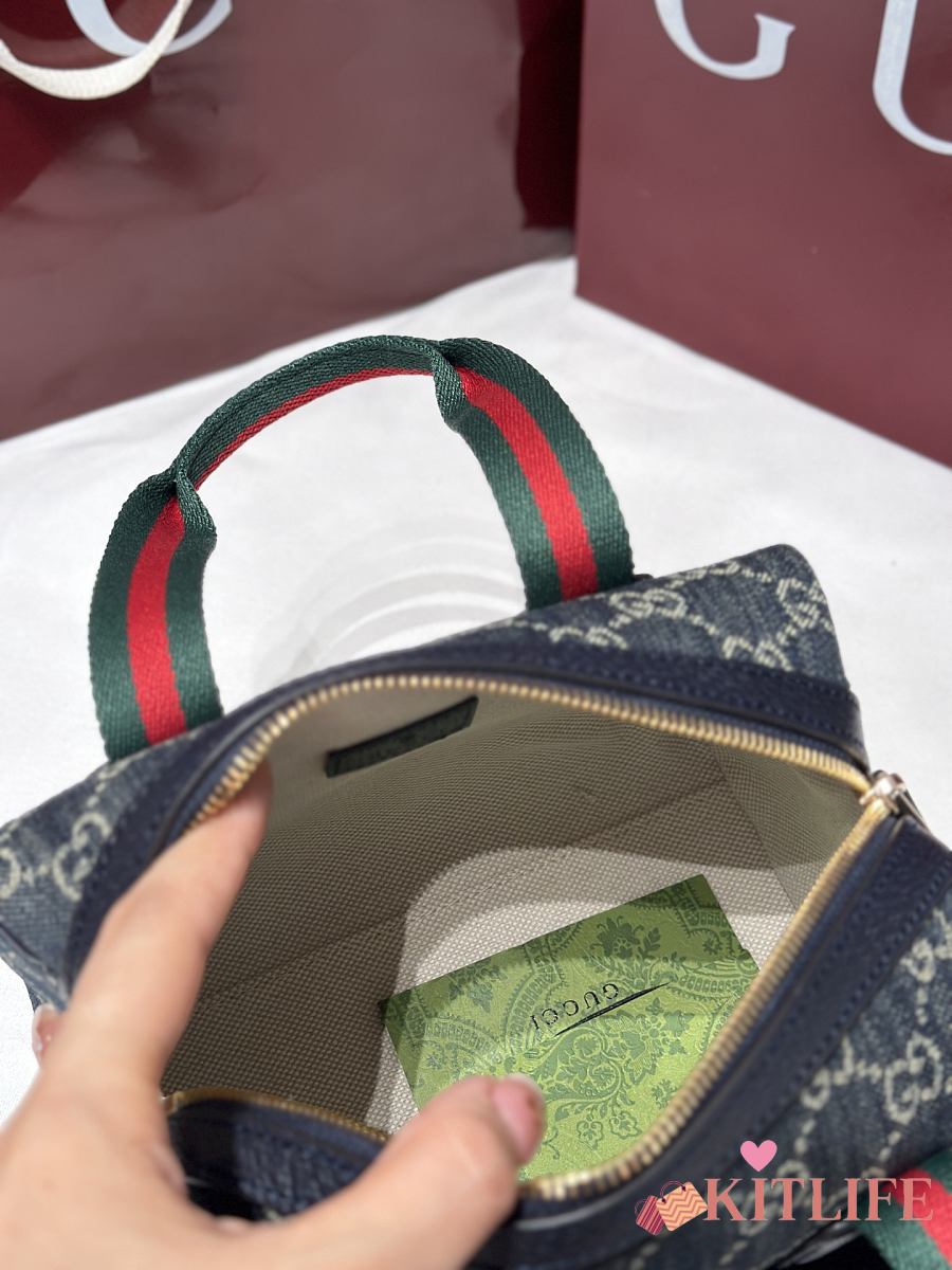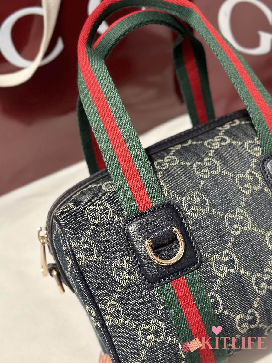 Kitlife Gucci Mini GG Handbag Navy And White GG Denim 859975 20x13x13cm