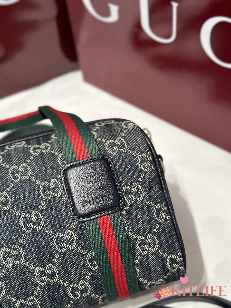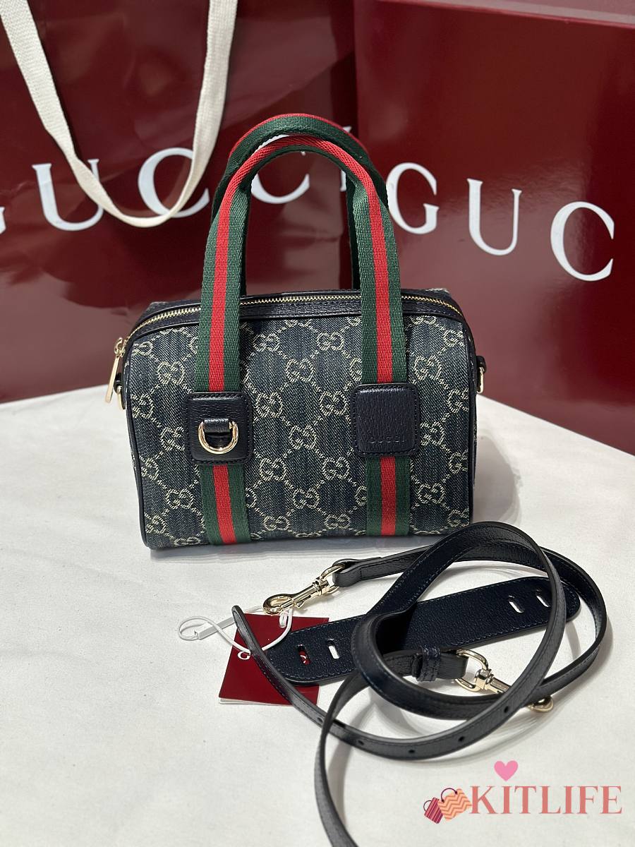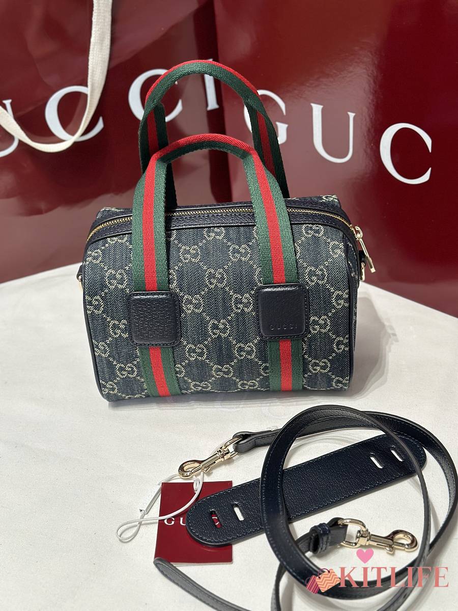 Kitlife Gucci Mini GG Handbag Navy And White GG Denim 859975 20x13x13cm