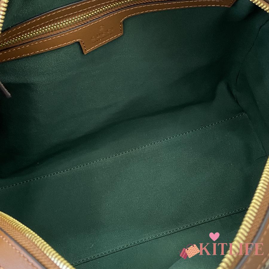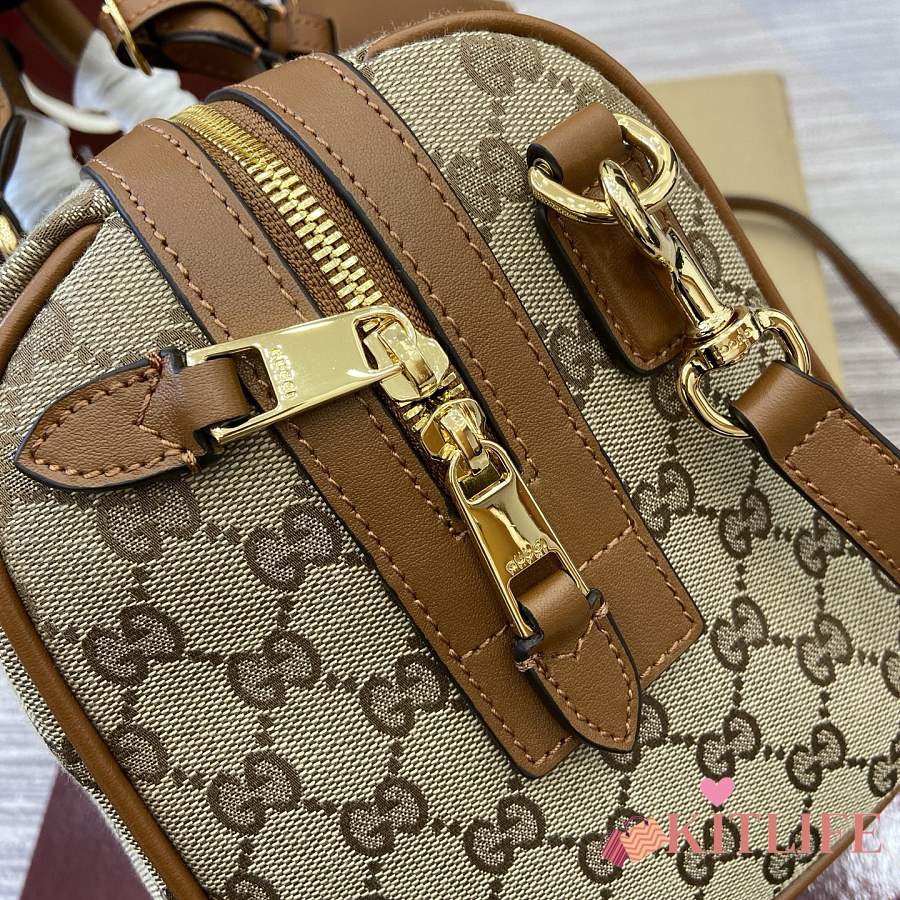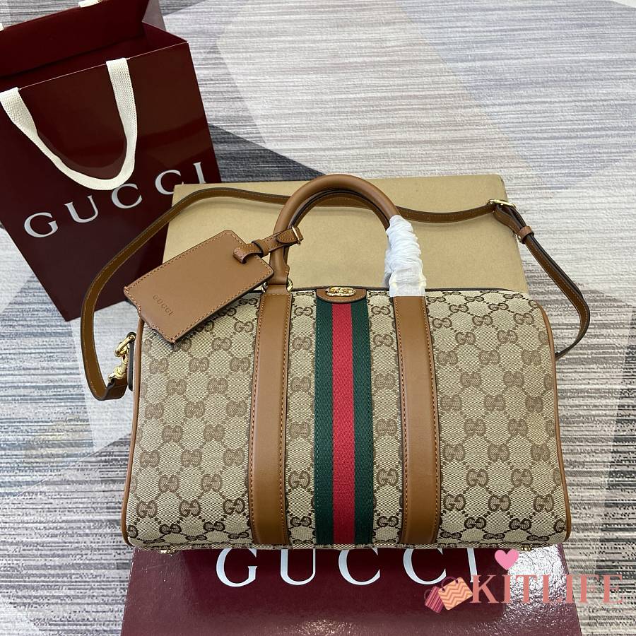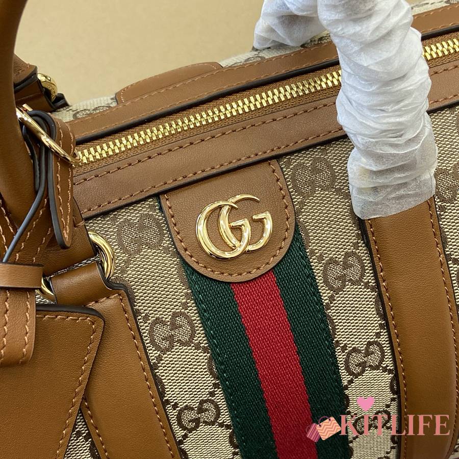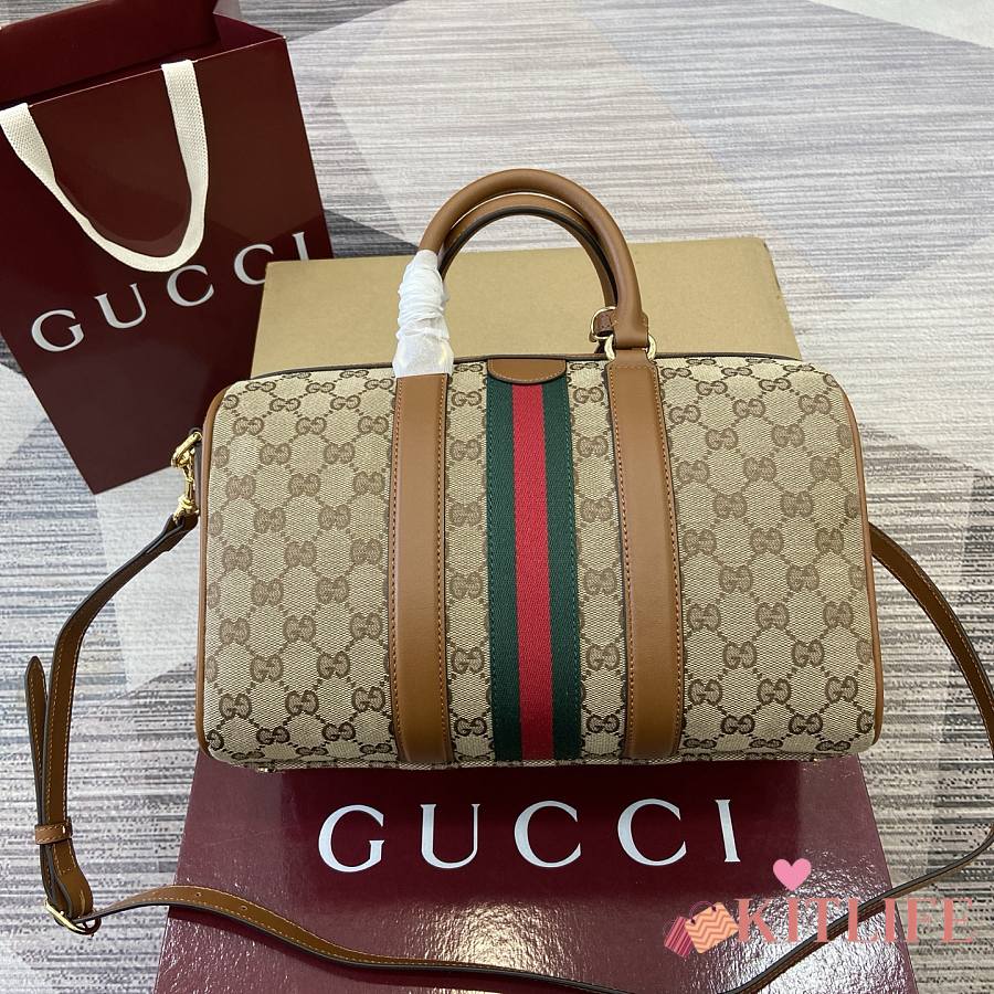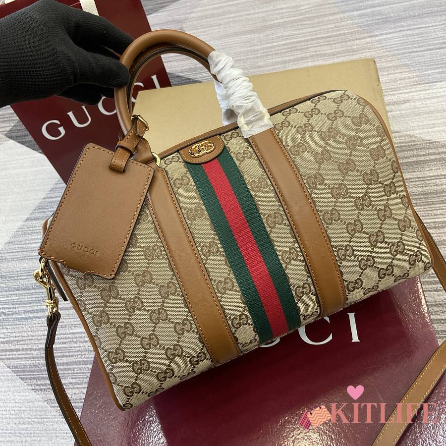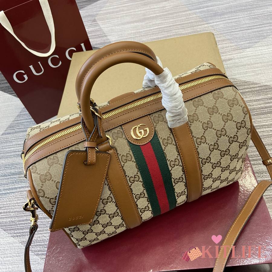 Kitlife Gucci Ophidia Medium Boston Bag Beige & Brown GG Canvas 857595 30x16x20cm