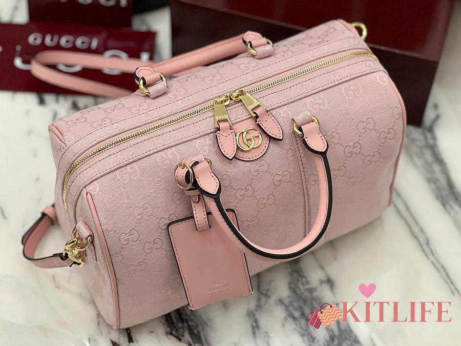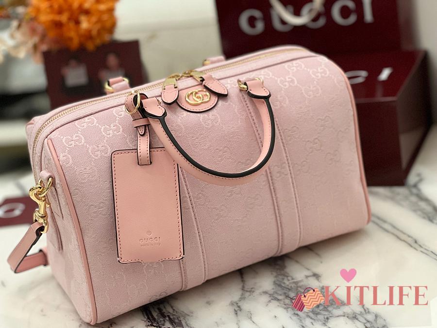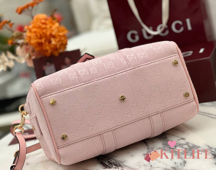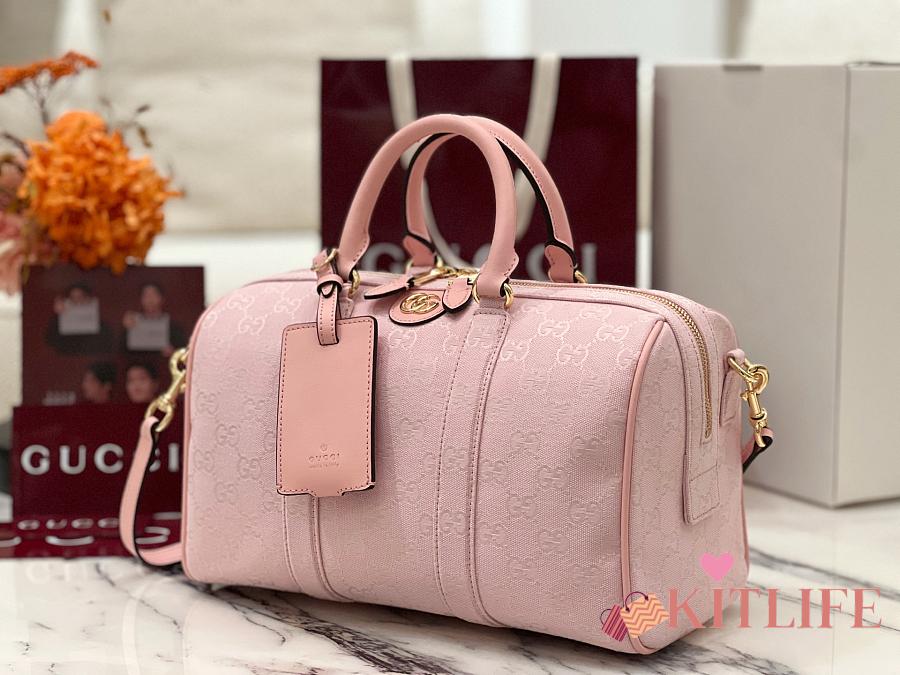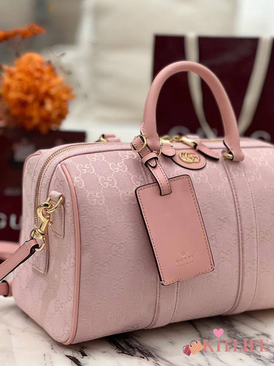 Kitlife Gucci Ophidia Medium Boston Bag Pink GG Canvas 857595 30x16x20cm