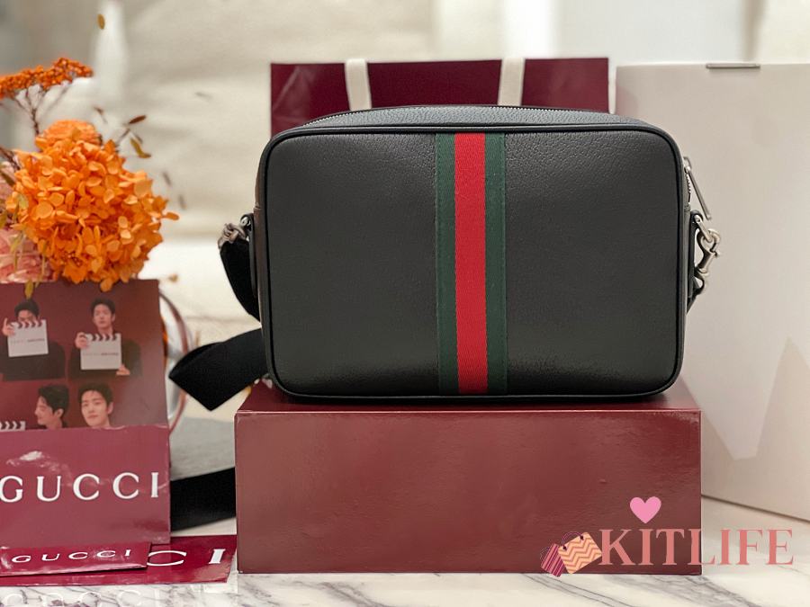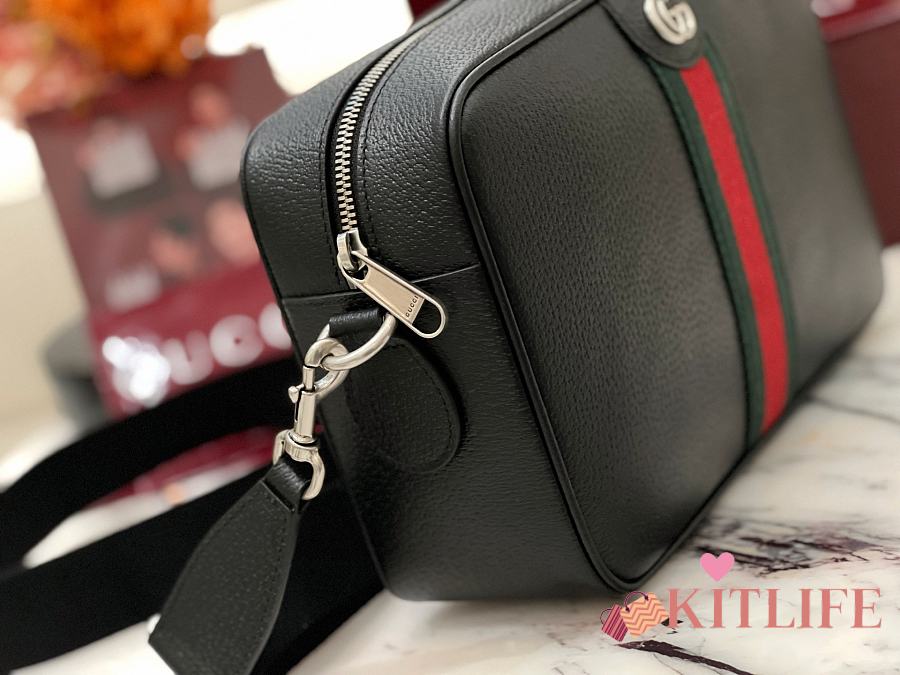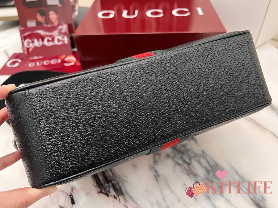Kitlife Gucci Ophidia Mini GG Strips Shoulder Bag Ebony Black - 23 x 17 x 7 cm