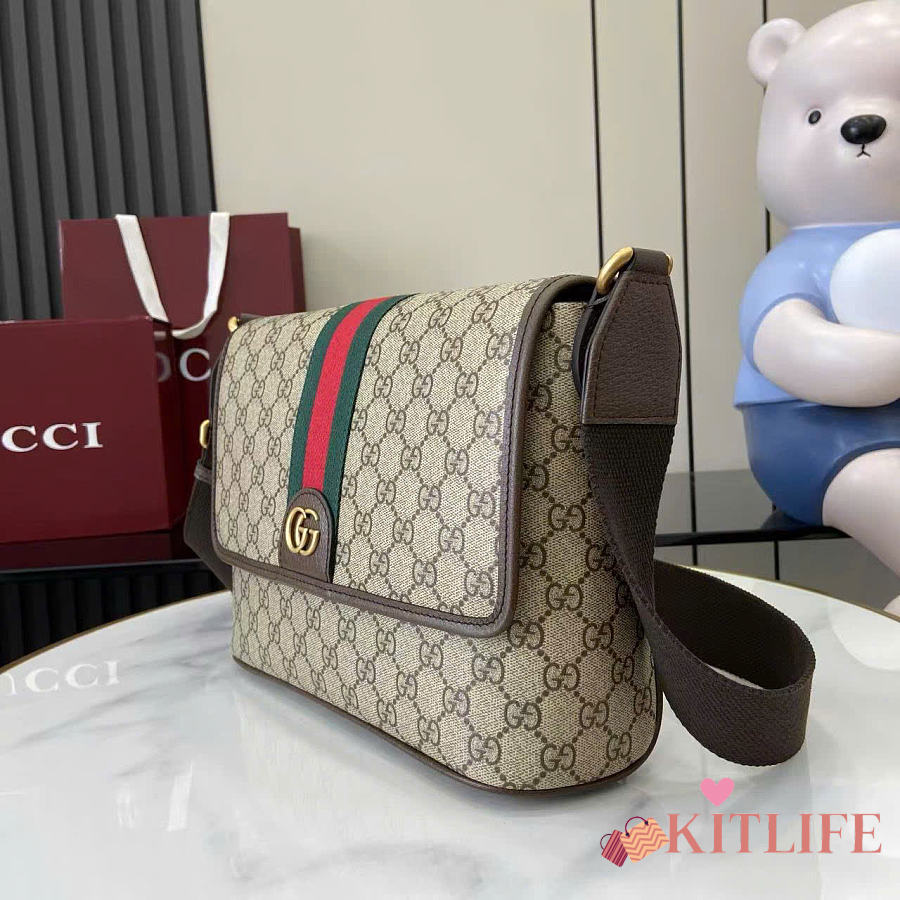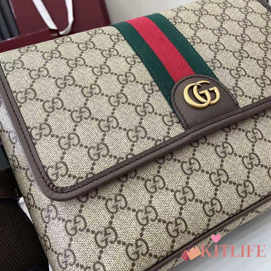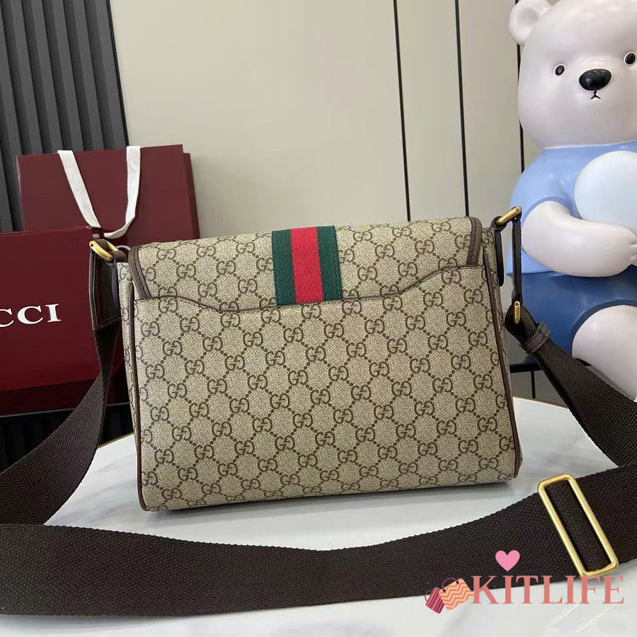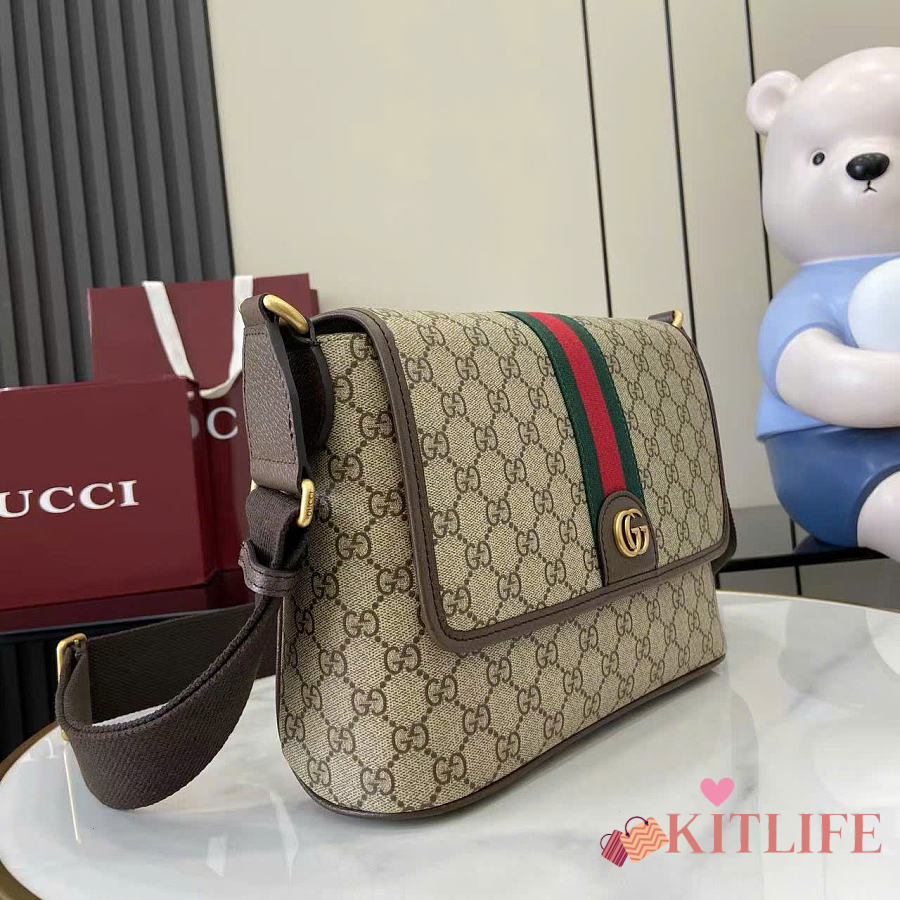 Kitlife Gucci Ophidia Medium Messenger Bag Beige And Dark Brown Fabric 834467 29.5×20×8cm