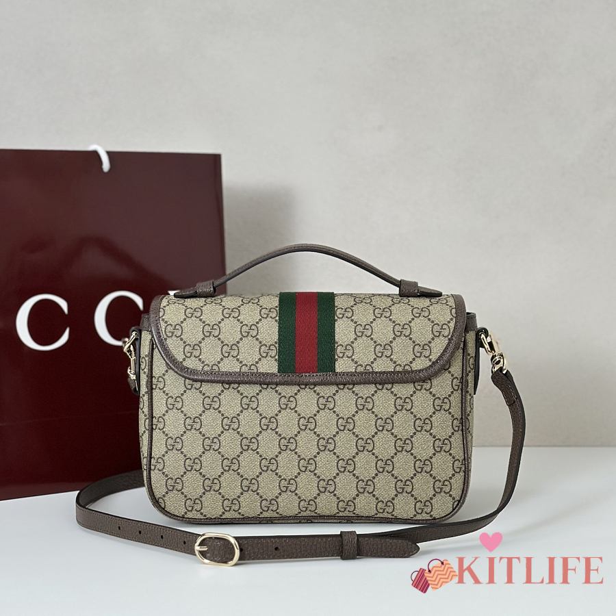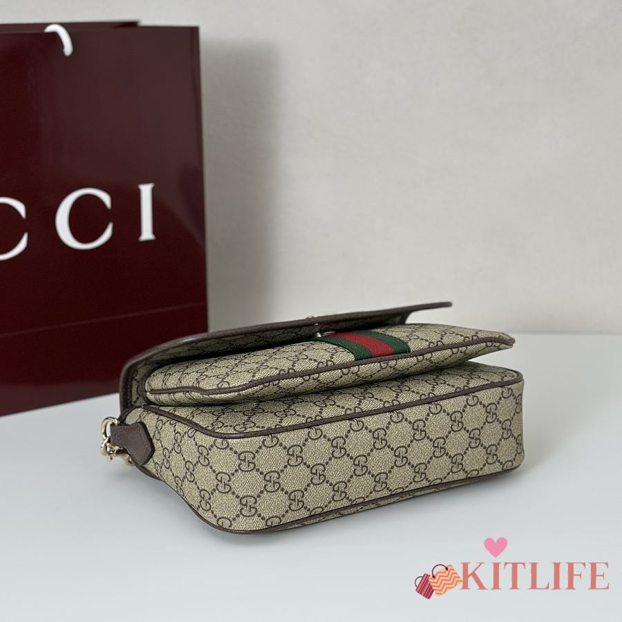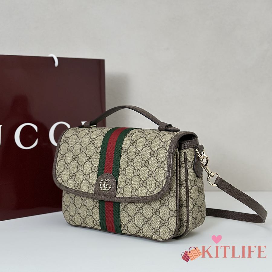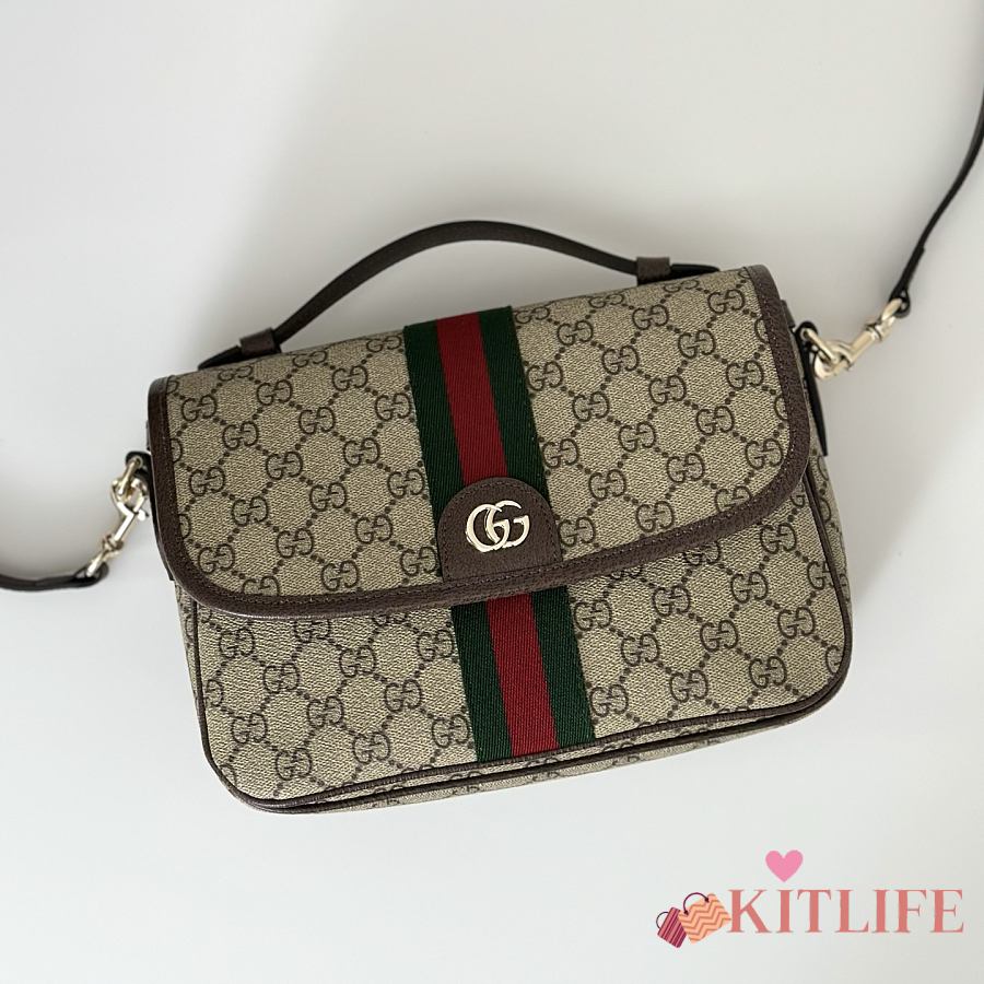 Kitlife Gucci Ophidia Medium Top Handle Bag Brown & Beige 836842 24x11.5x17.5cm