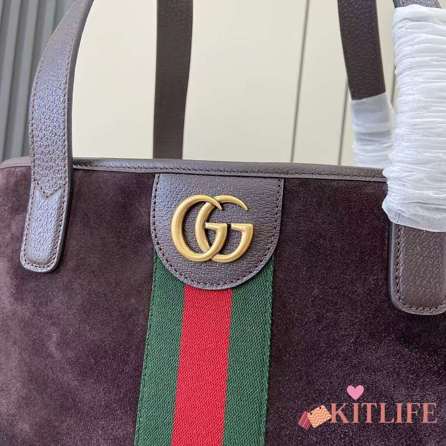 Kitlife Gucci Ophidia Medium Tote Bag Dark Brown Suede 834465 30x36x12.5cm