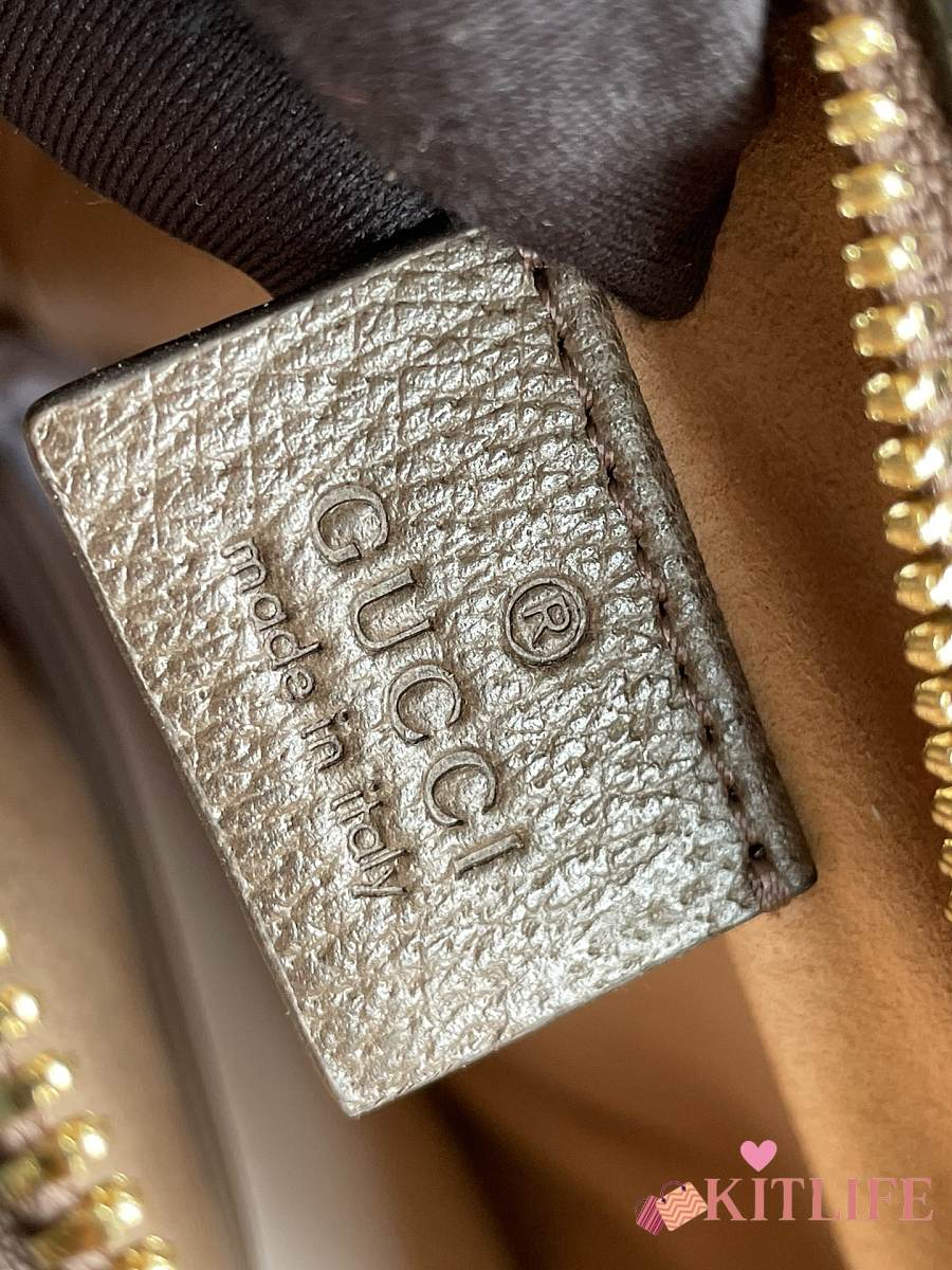 Kitlife Gucci Go Shoulder Bag Brown GG Suede 826761 21.5x14x9cm