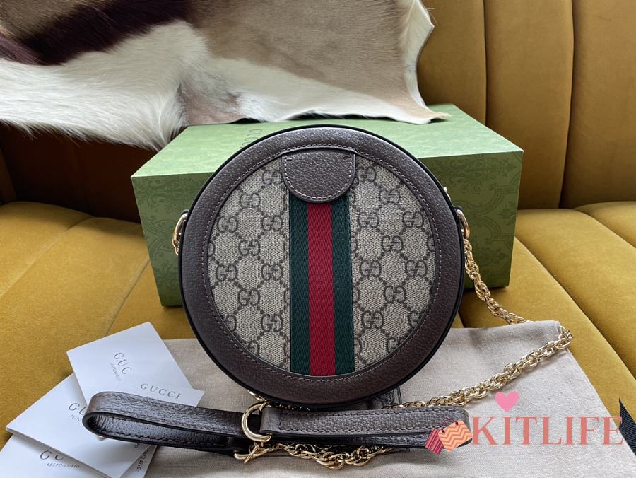 Kitlife Gucci Ophidia Mini GG Round Shoulder Bag Beige 550618 18x18x4.5cm