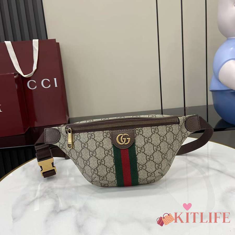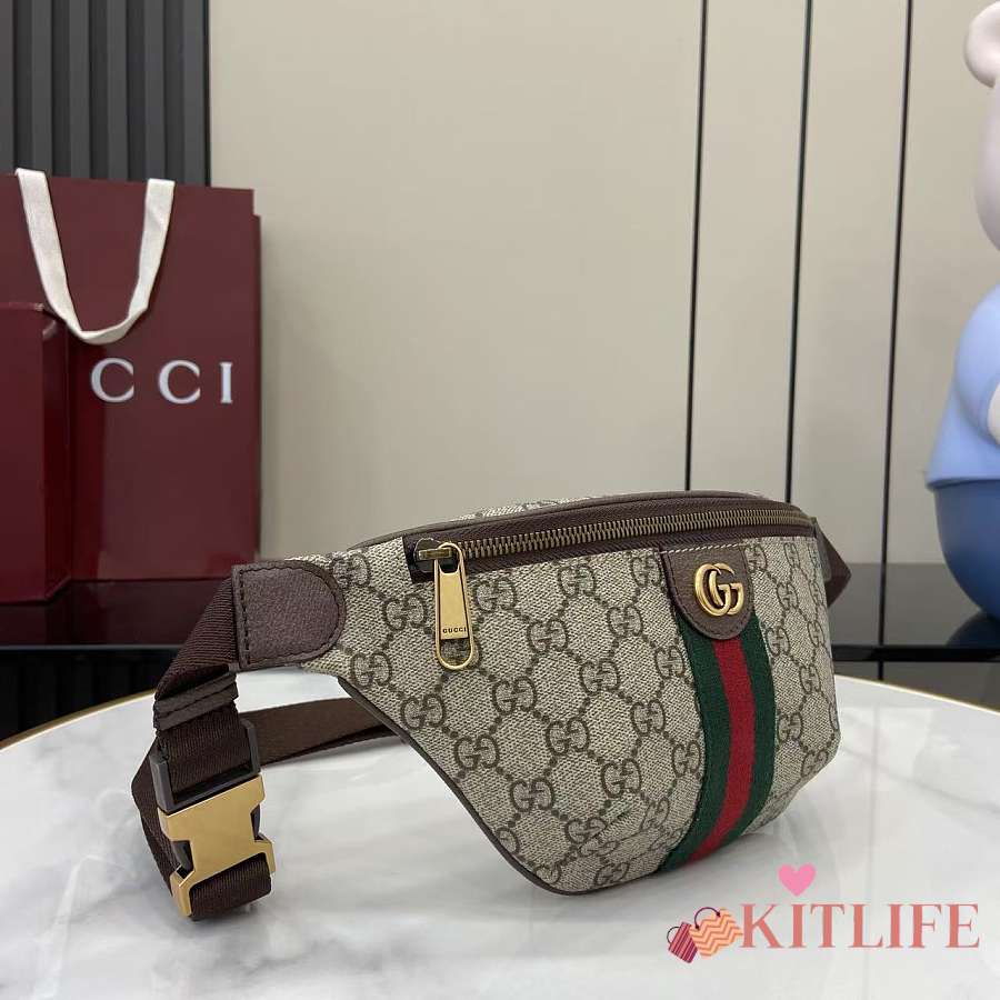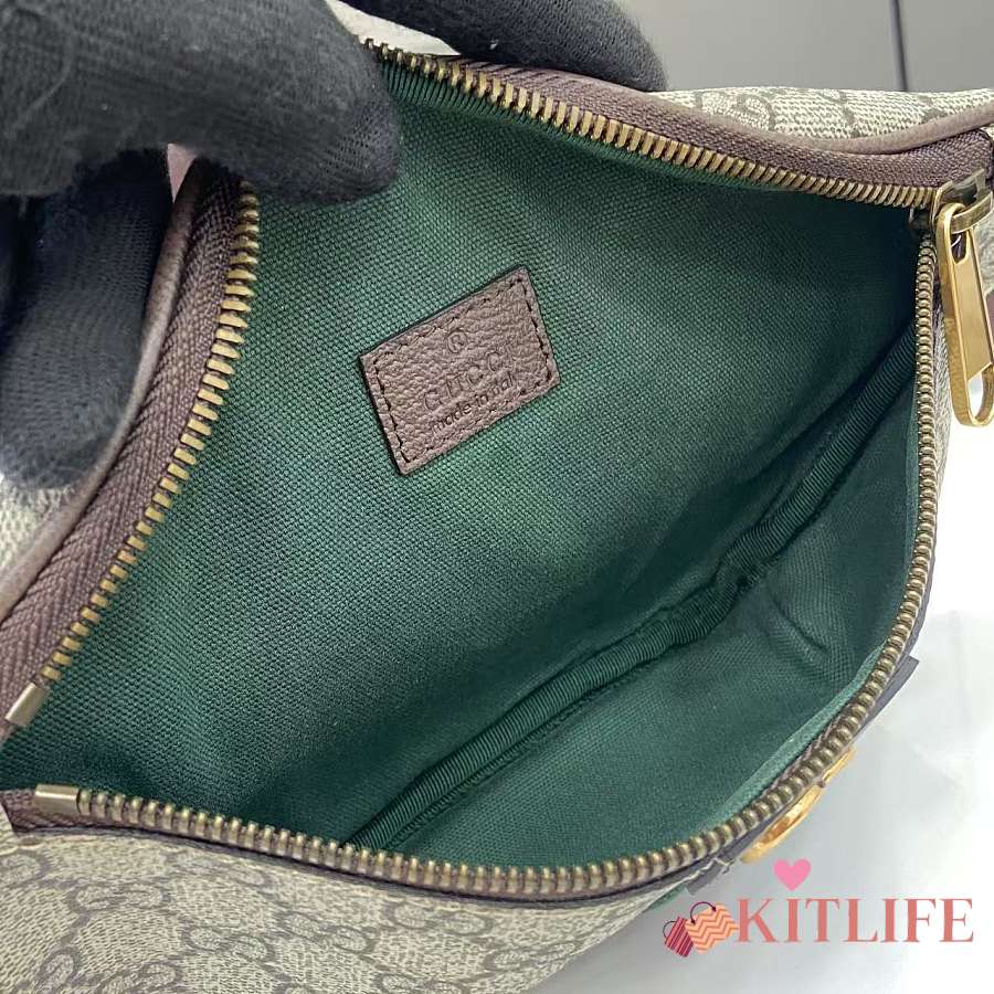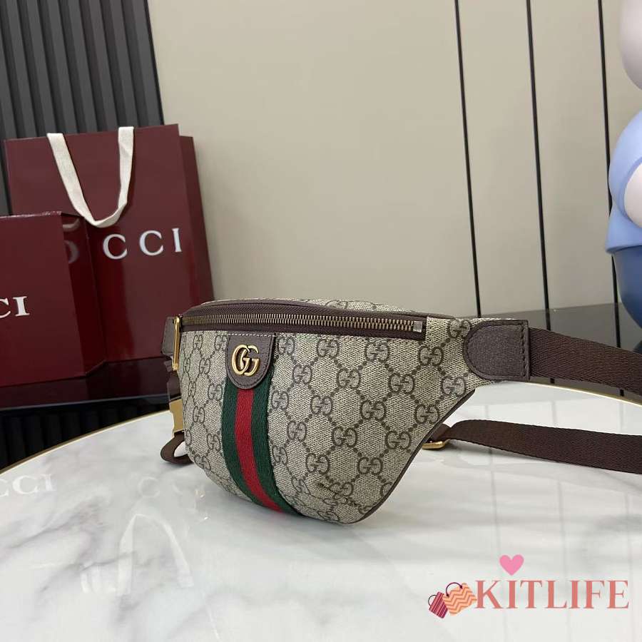 Kitlife Gucci Ophidia Small Belt Bag Beige And Dark Brown Fabric 839106 30x14x4.5cm