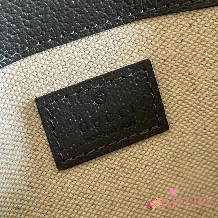 Kitlife Gucci 73 Mini Bucket Bag White Canvas & Black Leather 833660 18.5x20x8.5cm