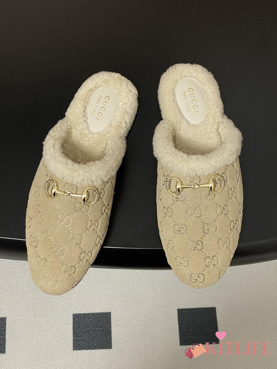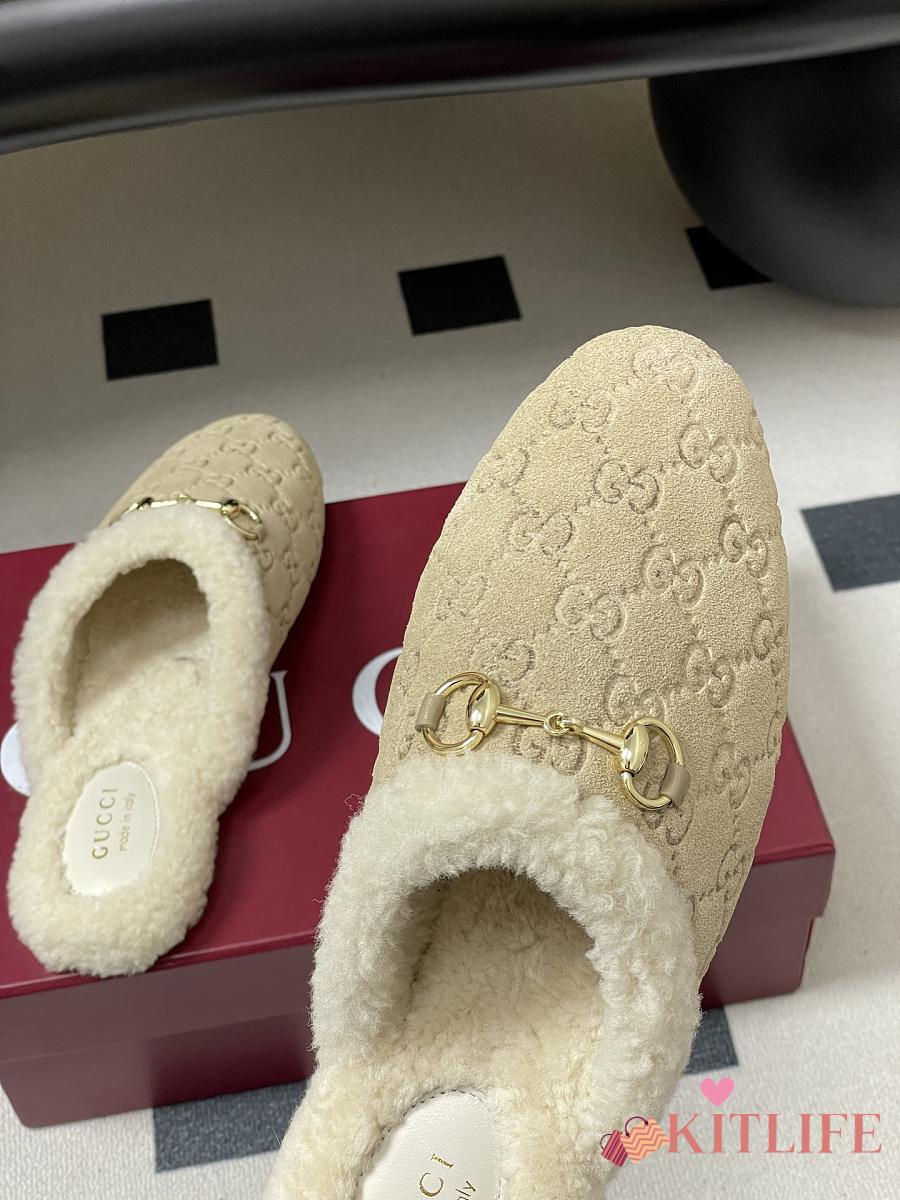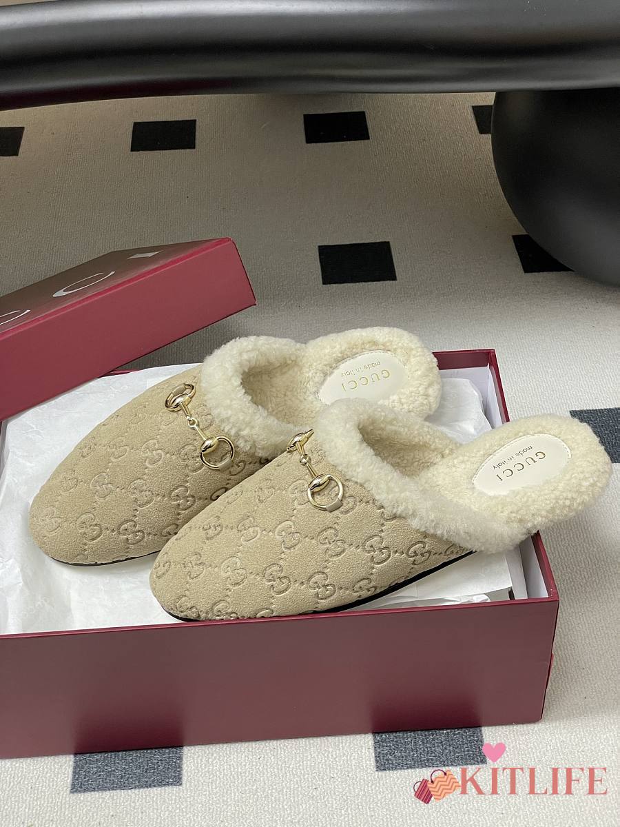 Kitlife Gucci Princetown Classic Wool Slippers Beige Suede