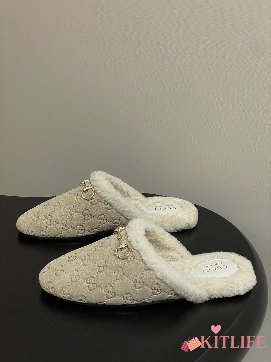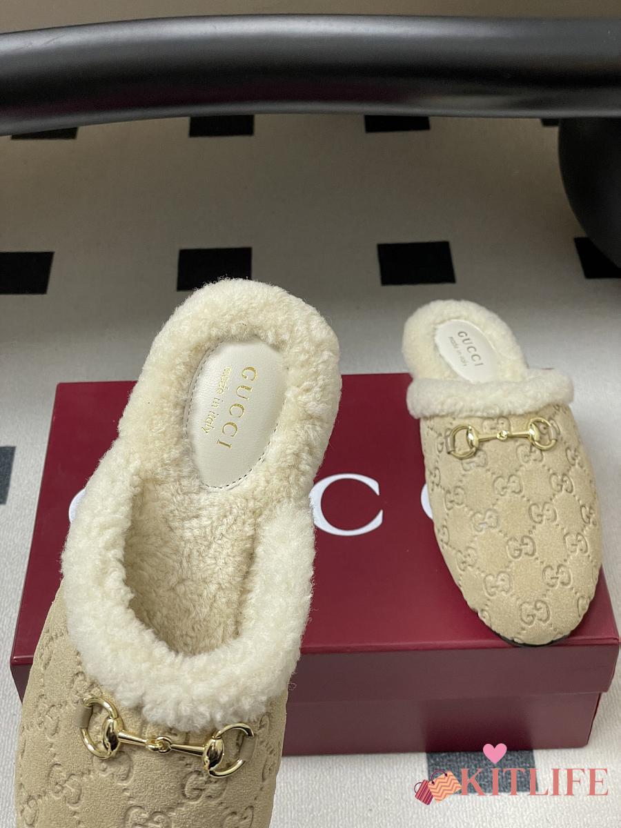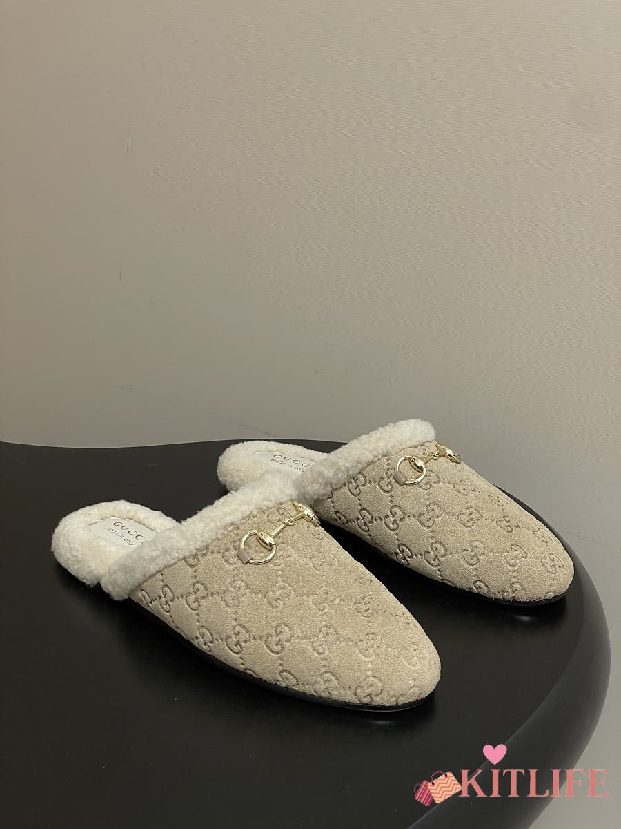 Kitlife Gucci Princetown Classic Wool Slippers Beige Suede
