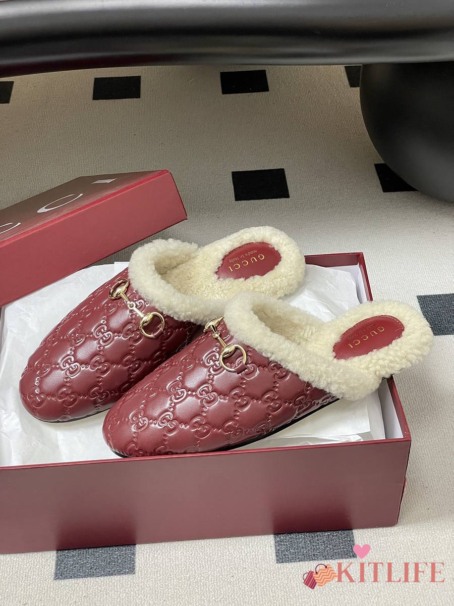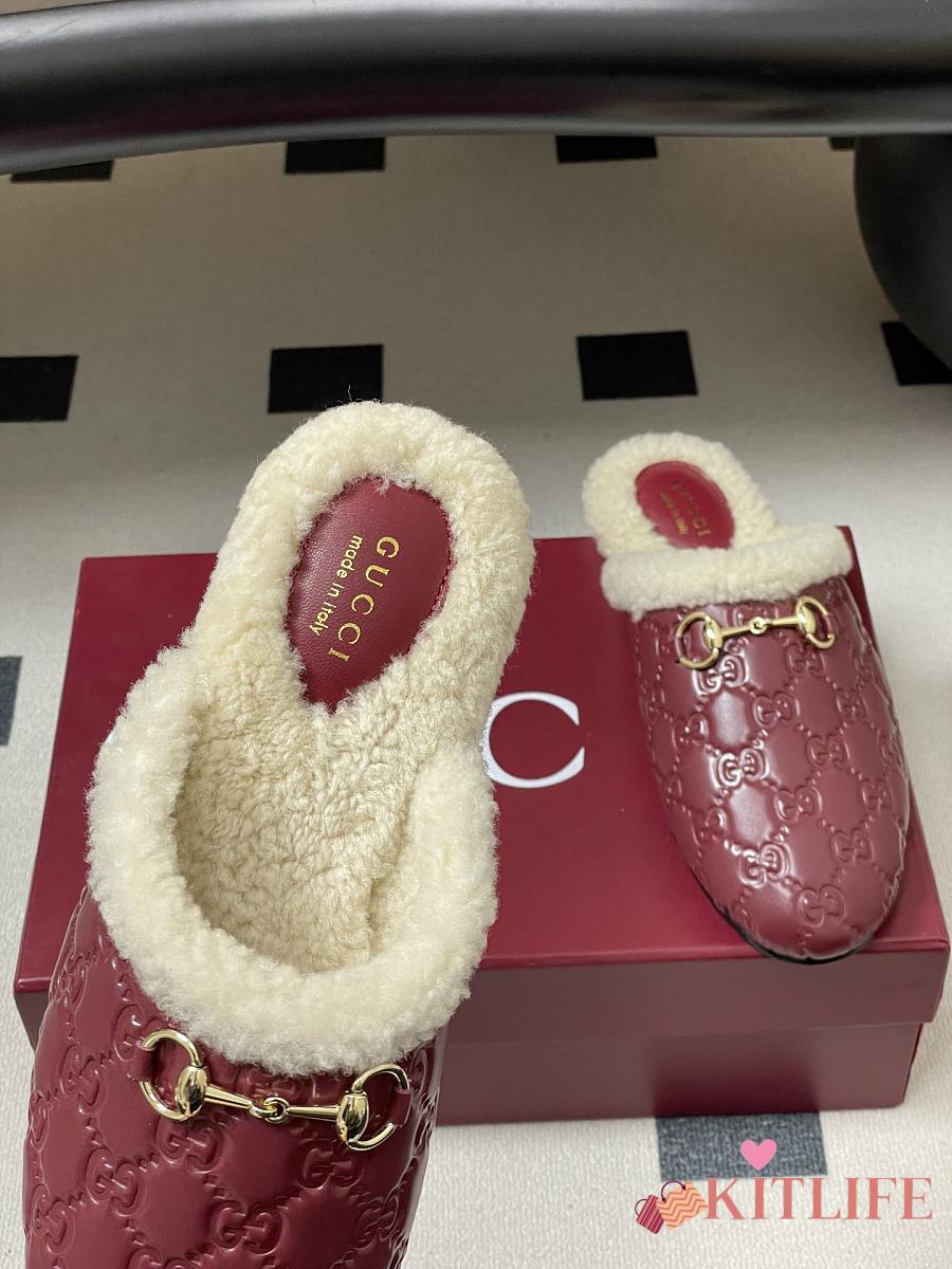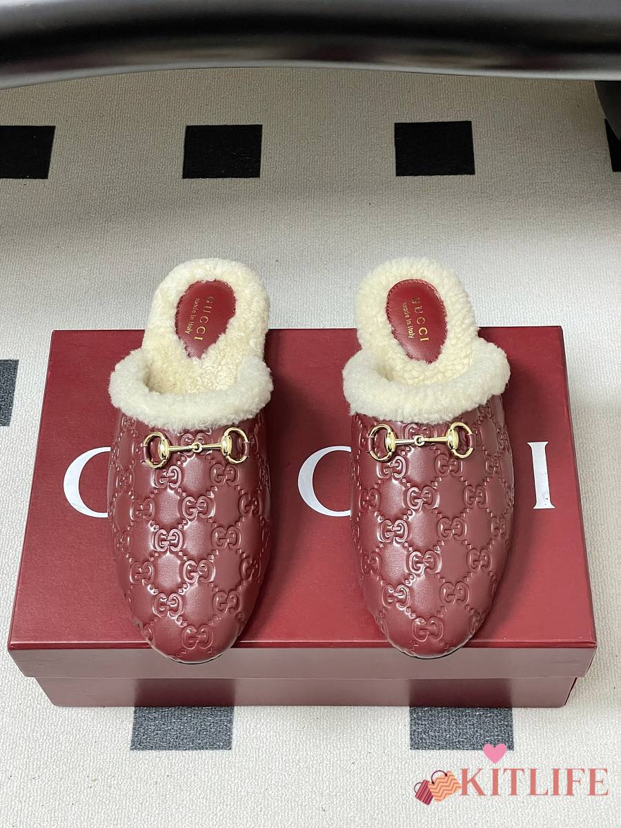 Kitlife Gucci Princetown Classic Wool Slippers Red Leather