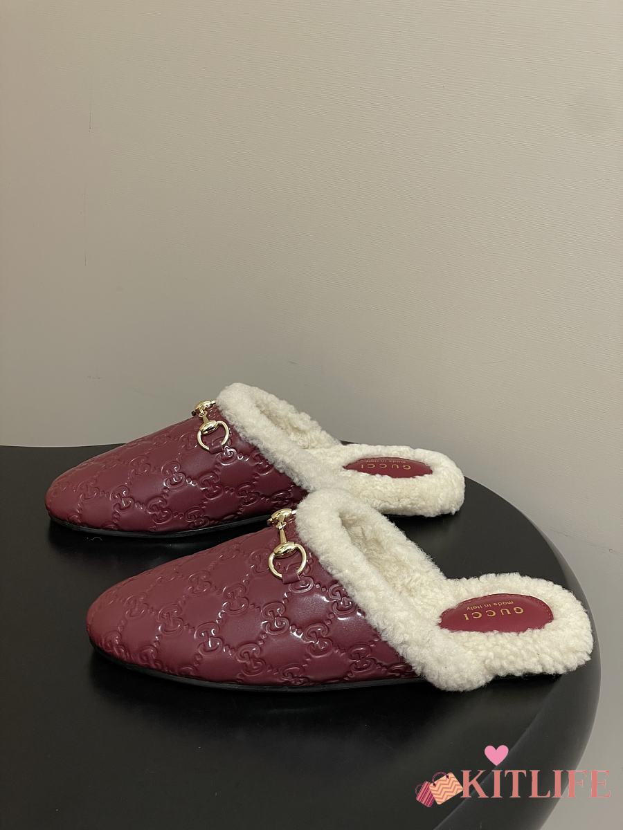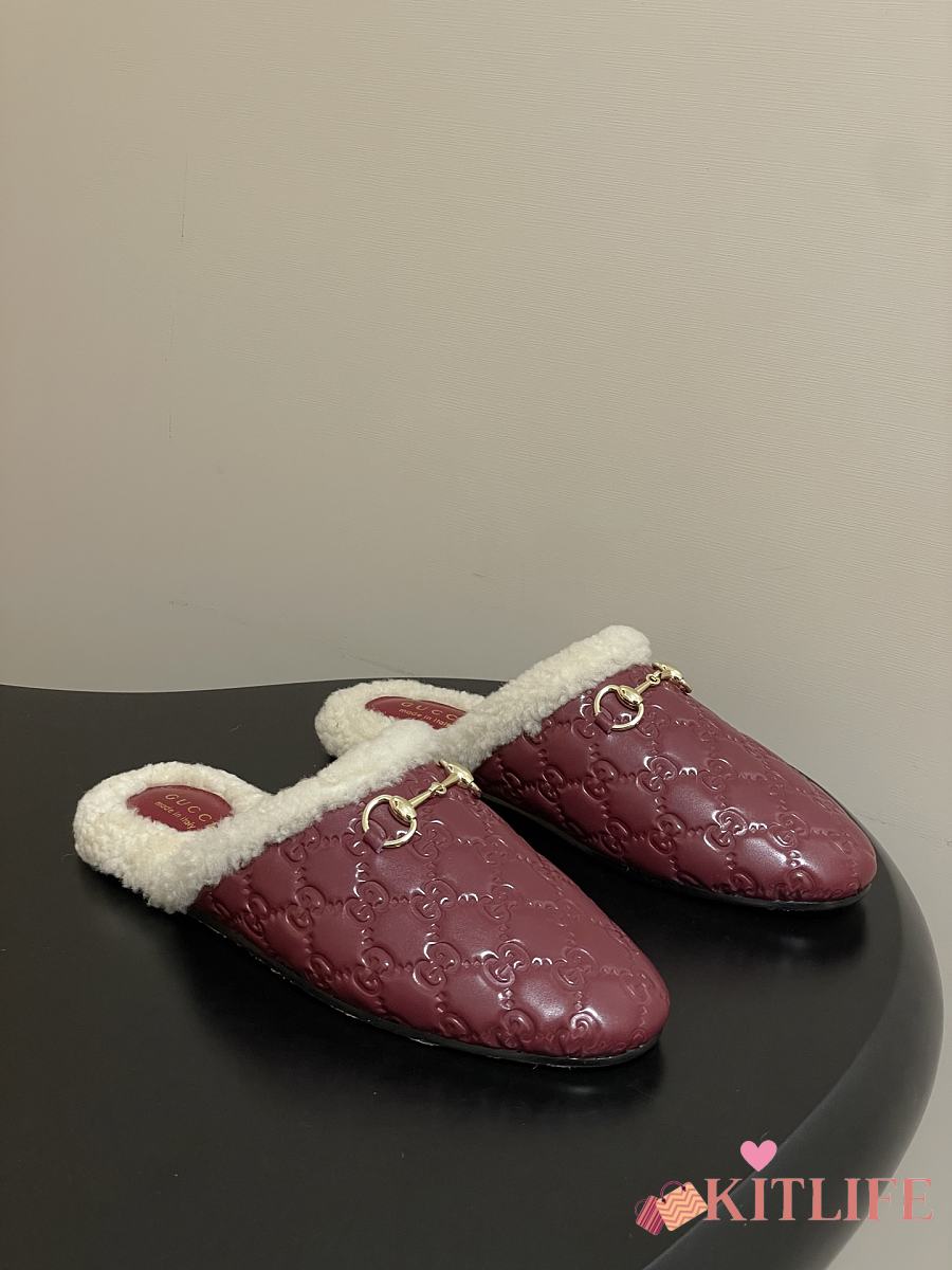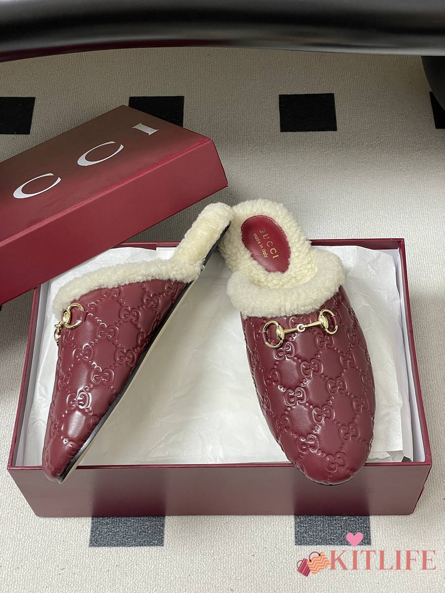 Kitlife Gucci Princetown Classic Wool Slippers Red Leather