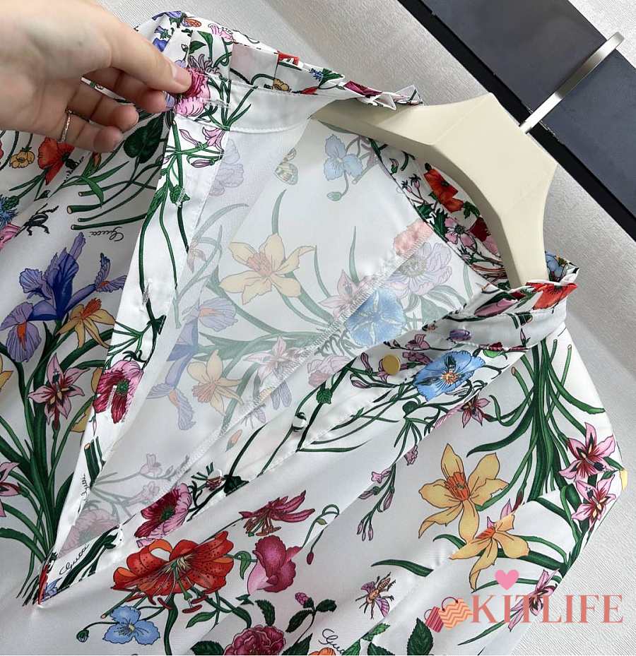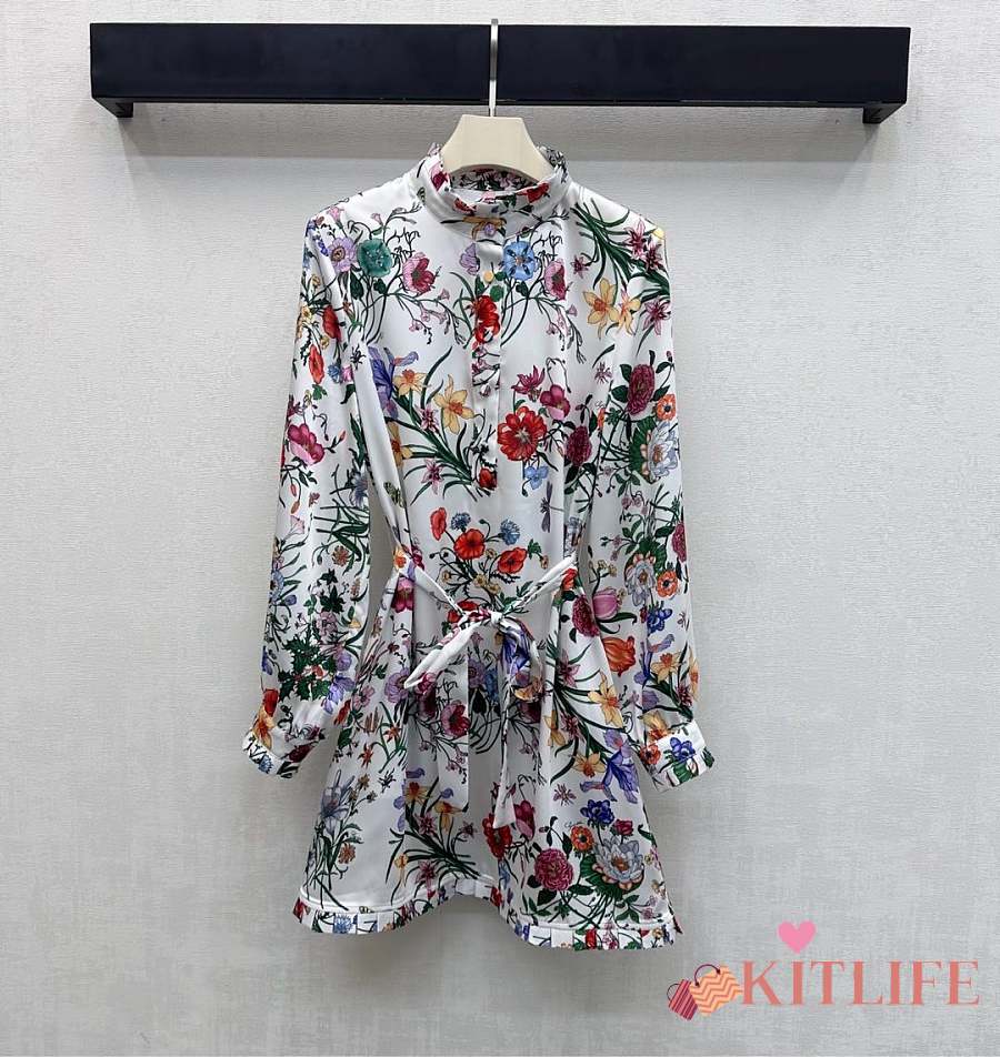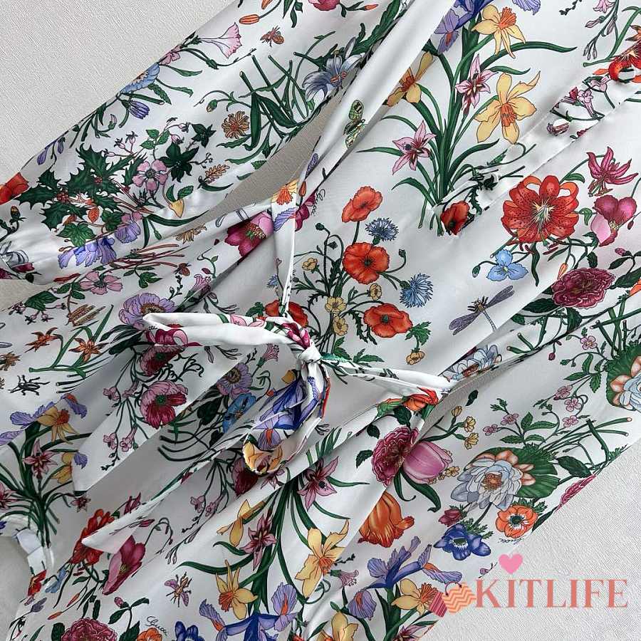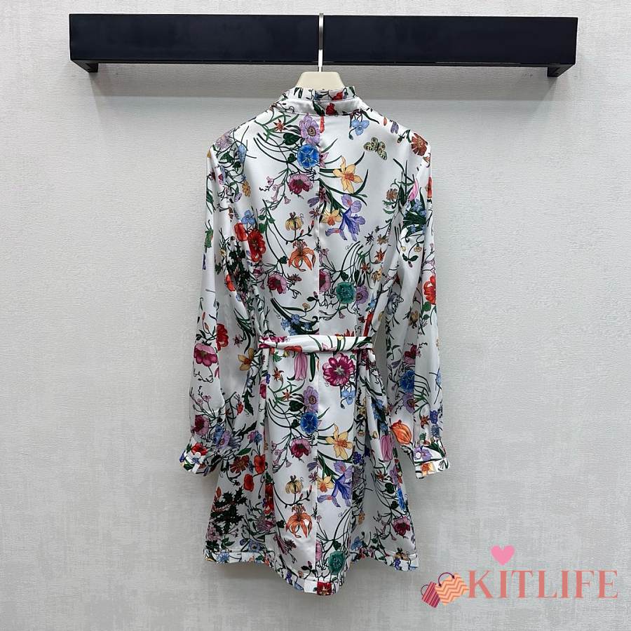 Kitlife Gucci Printed Silk Twill Dress in Multicolor White