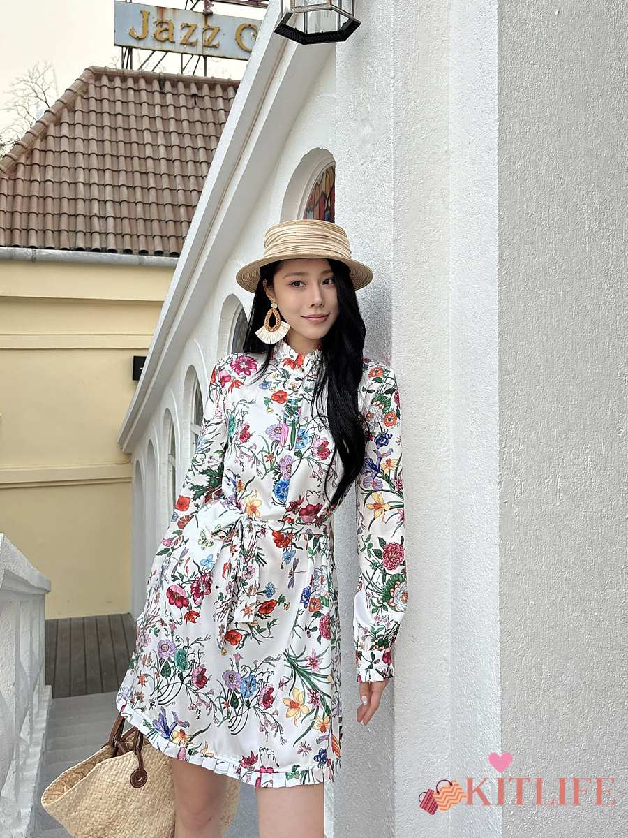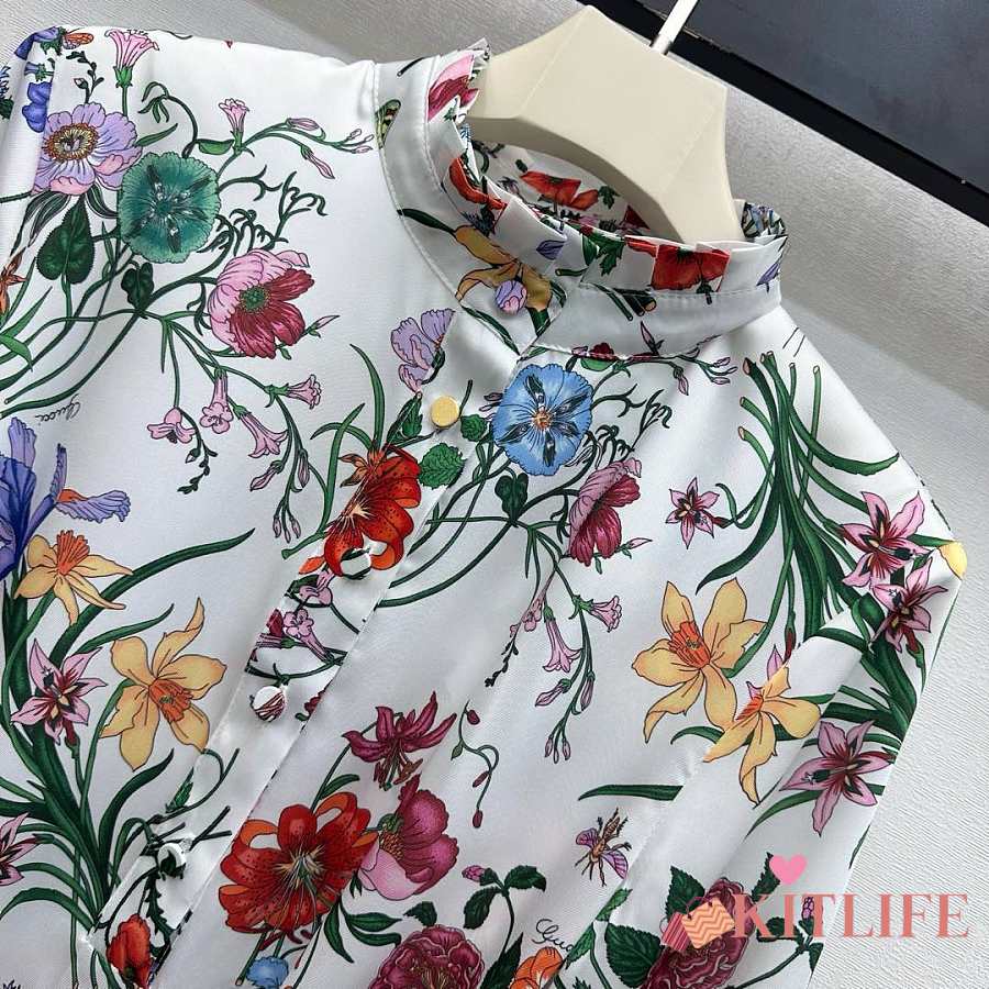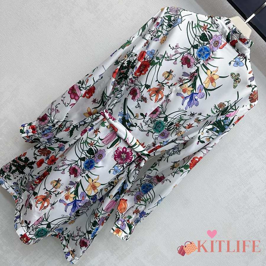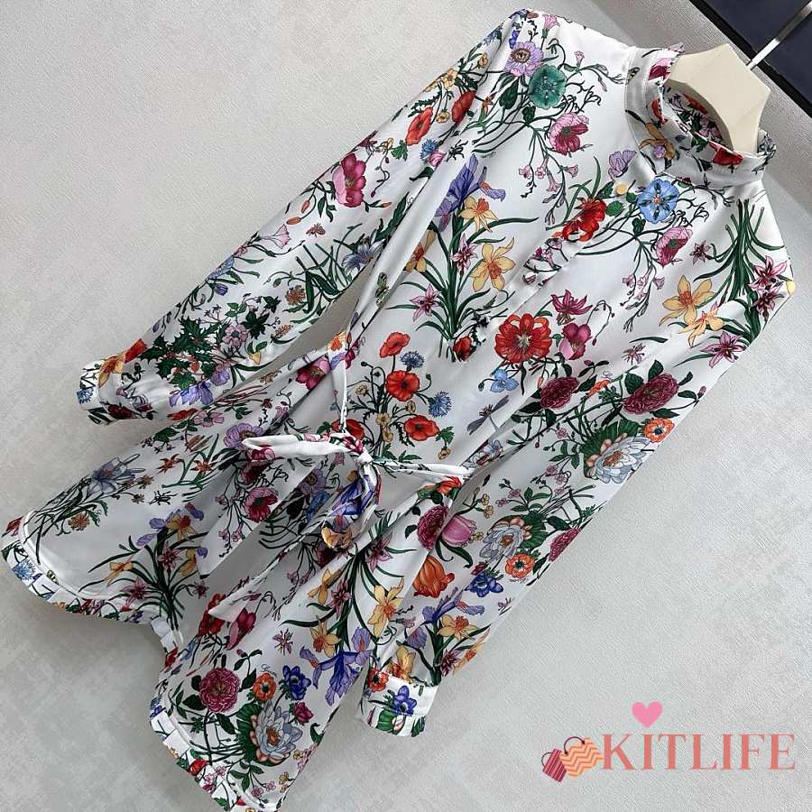 Kitlife Gucci Printed Silk Twill Dress in Multicolor White