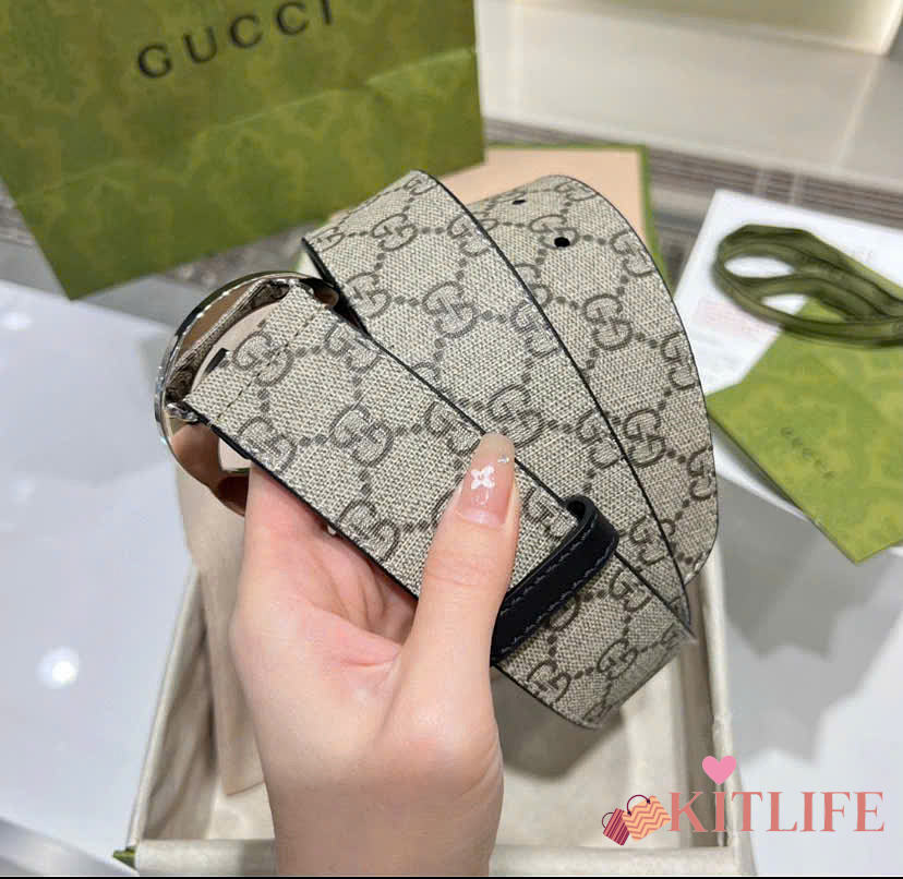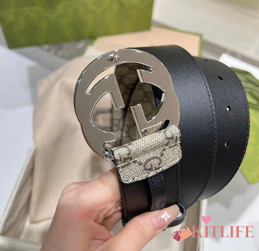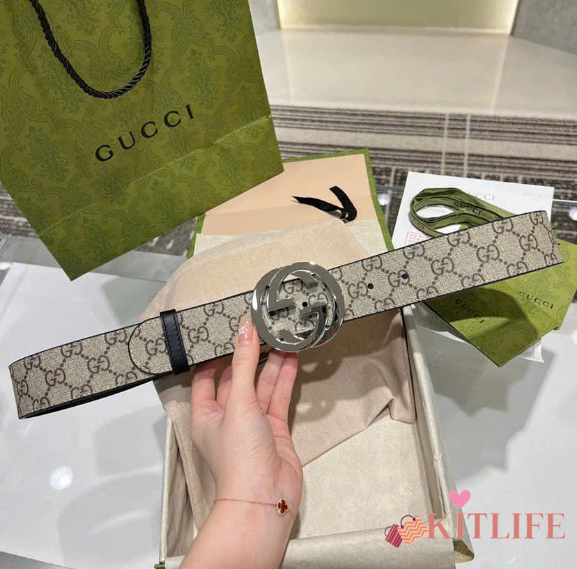 Kitlife Gucci Reversible belt with Interlocking G Buckle Belt Beige & Black