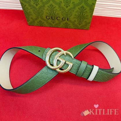 Kitlife Gucci Reversible GG Marmont Belt Green & Beige With Gold Hardware