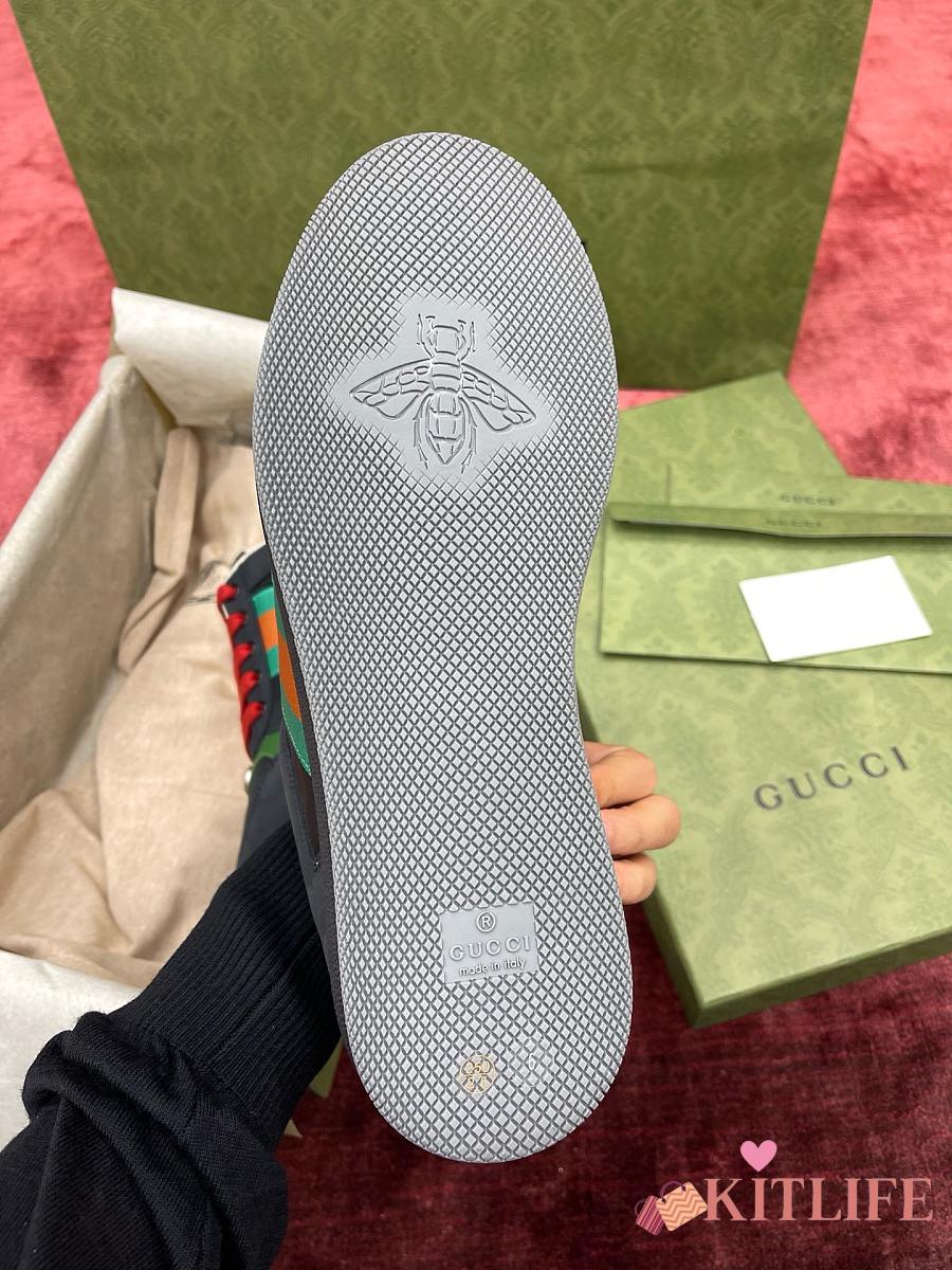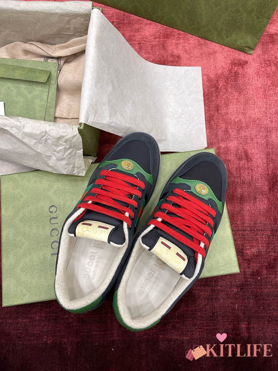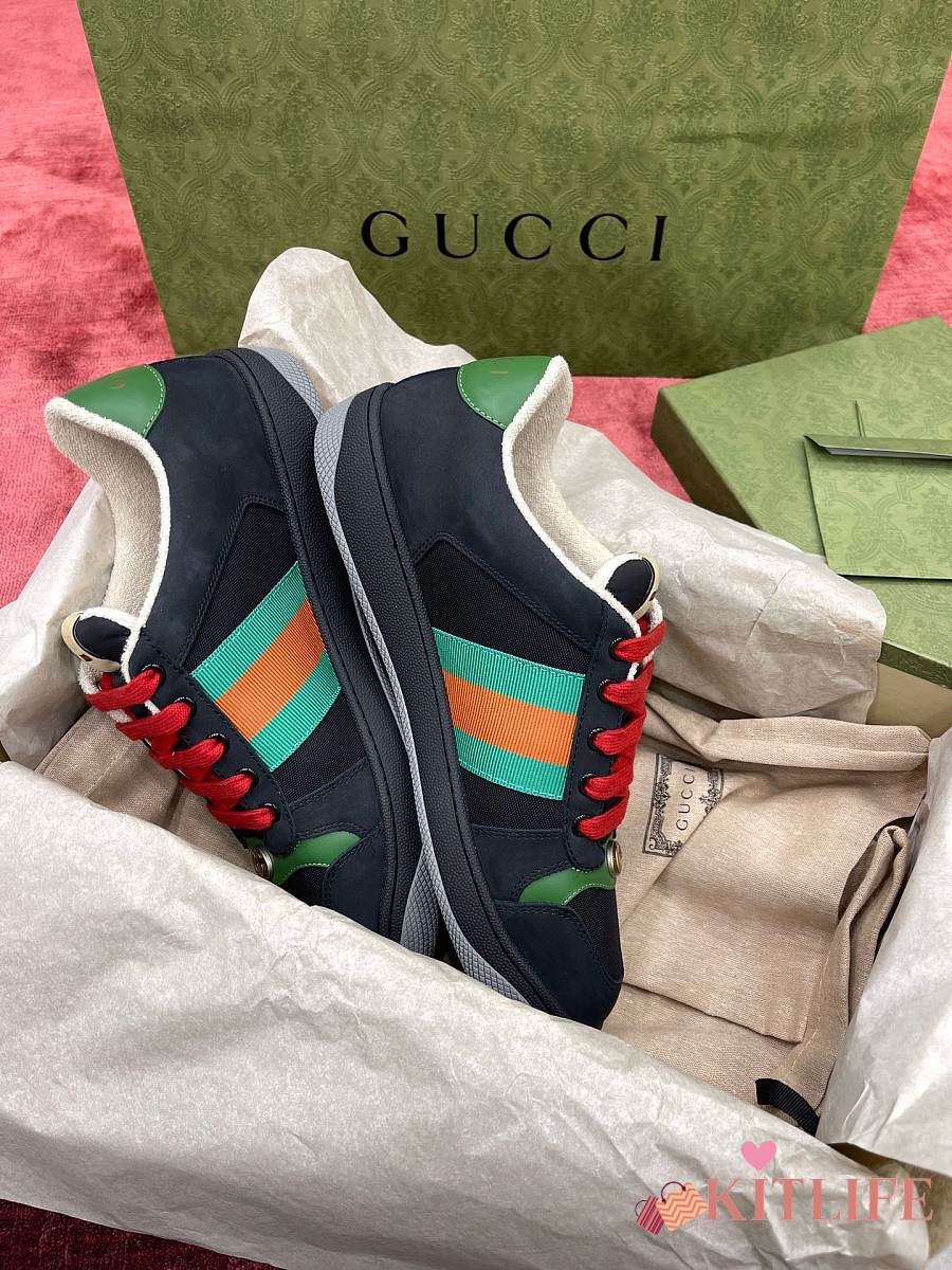 Kitlife Gucci Screener Black Green Suede Sneakers