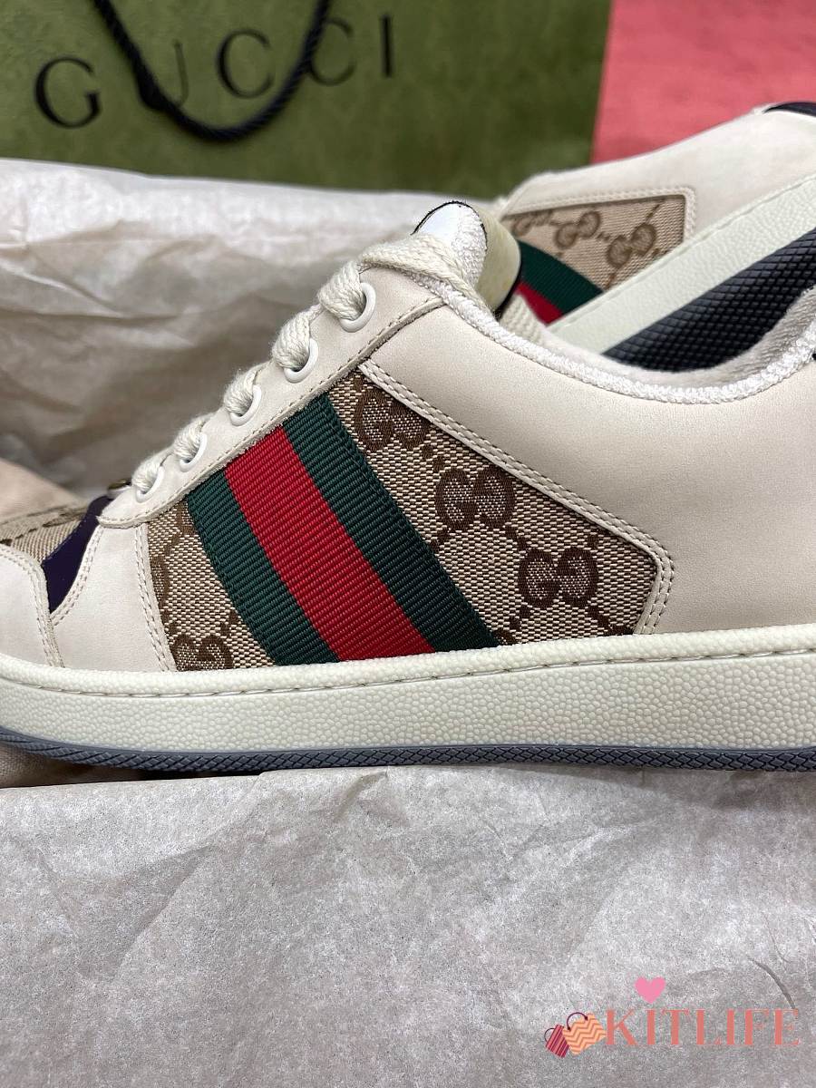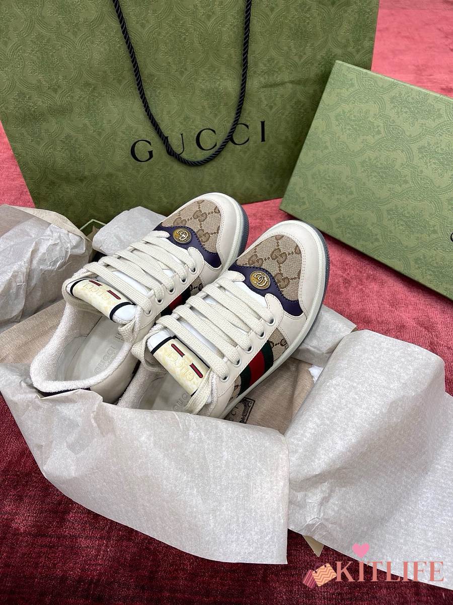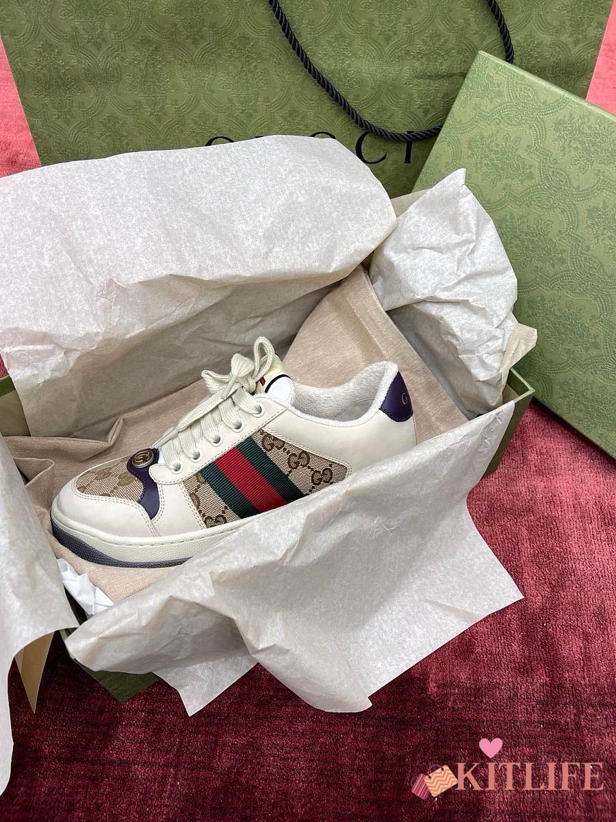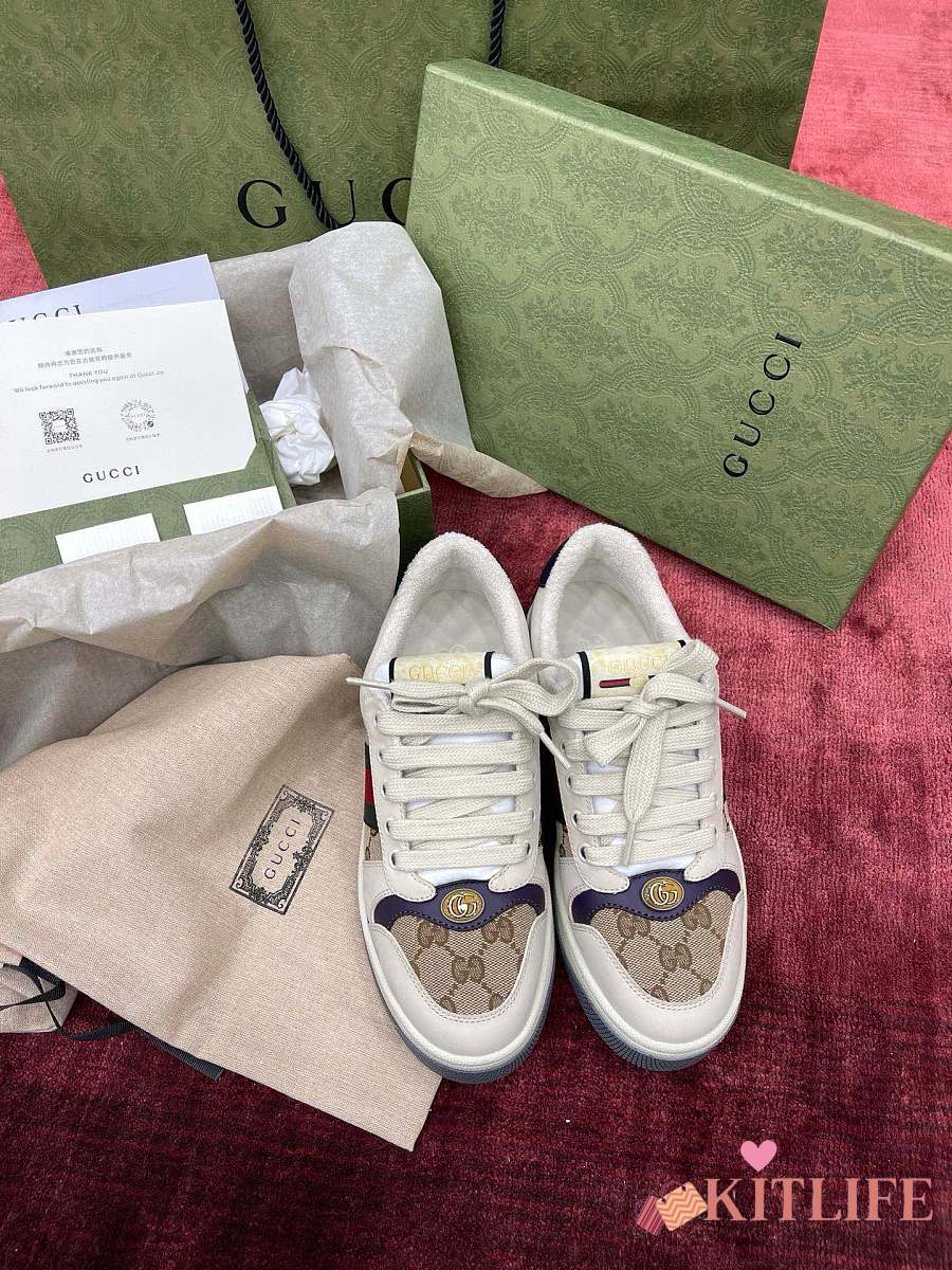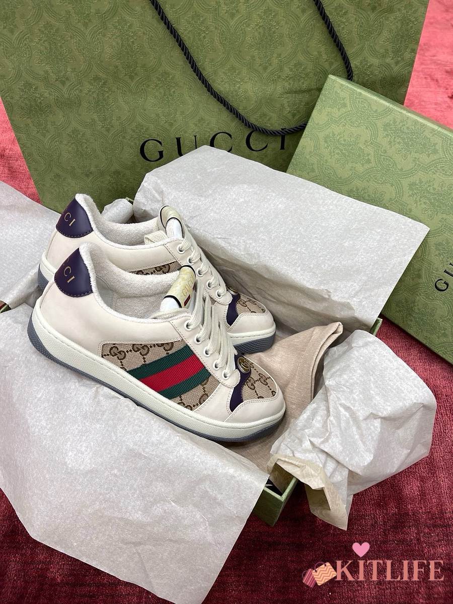 Kitlife Gucci Screener Sneakers Leather GG Canvas Beige & Purple