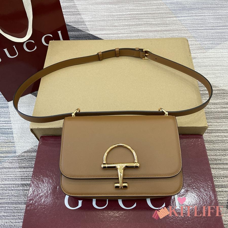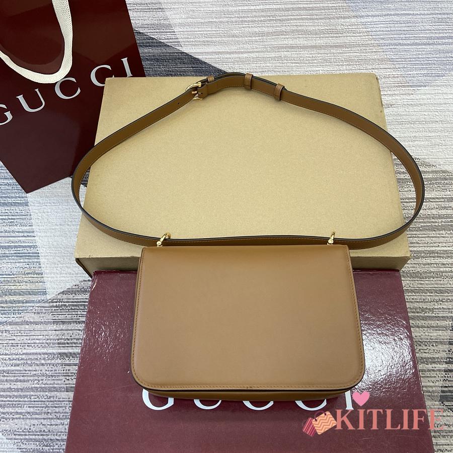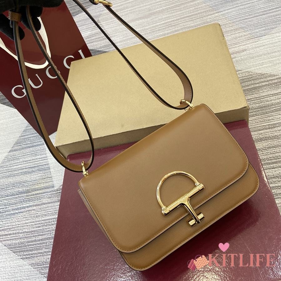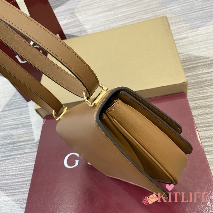 Kitlife Gucci Siena Small Shoulder Bag Brown Leather 846705 22.5x14x8cm