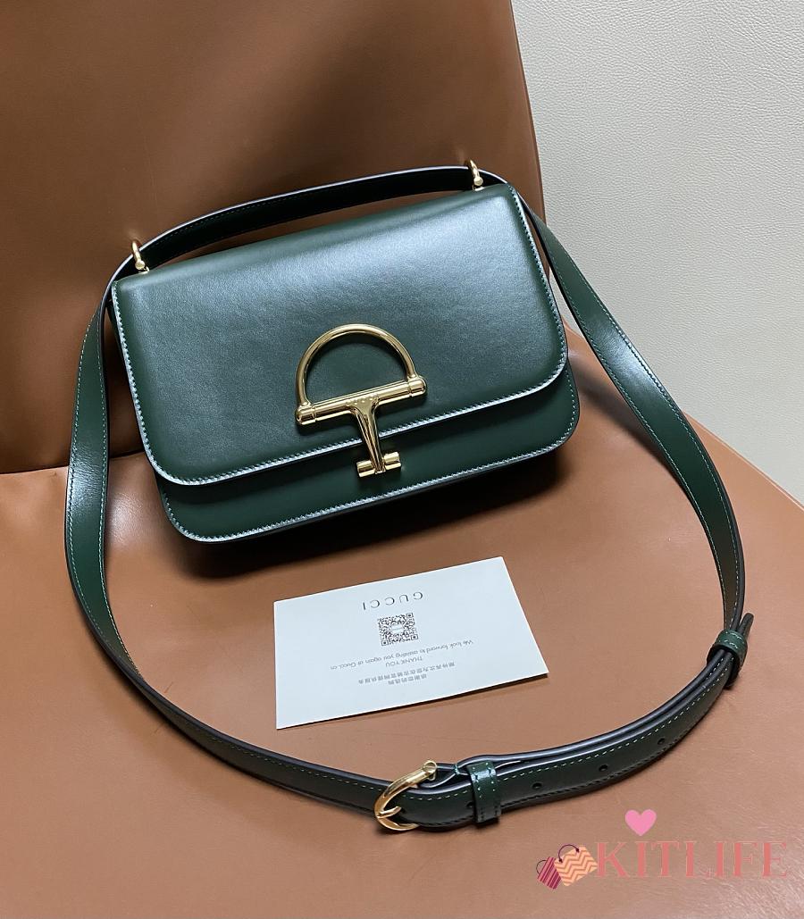Kitlife Gucci Siena Small Shoulder Bag Green Leather 846705 22.5x14x8cm
