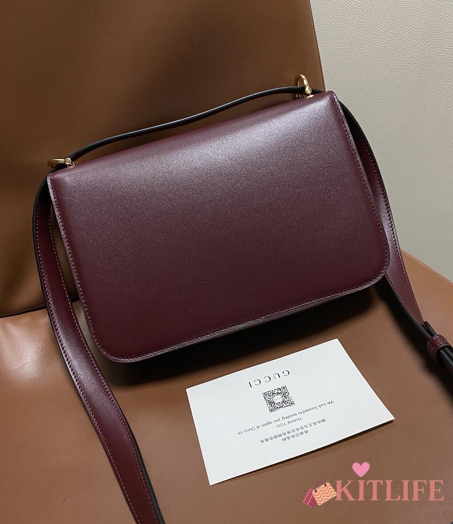 Kitlife Gucci Siena Small Shoulder Bag Rosso Ancora Red Leather 846705 22.5x14x8cm