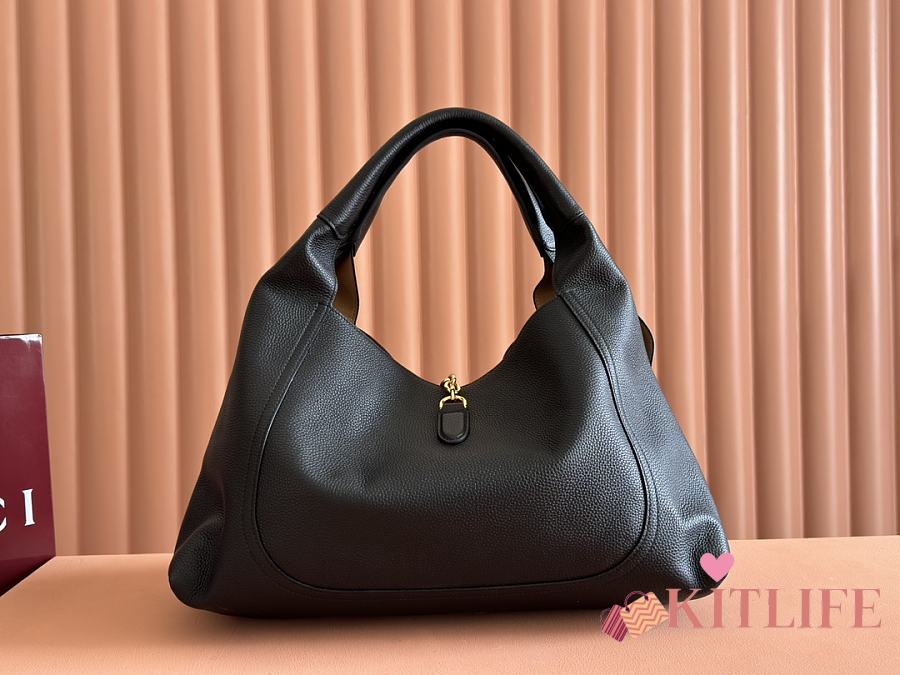 Kitlife Gucci Softbit Maxi Shoulder Bag Black Leather 837466 46x26x16cm