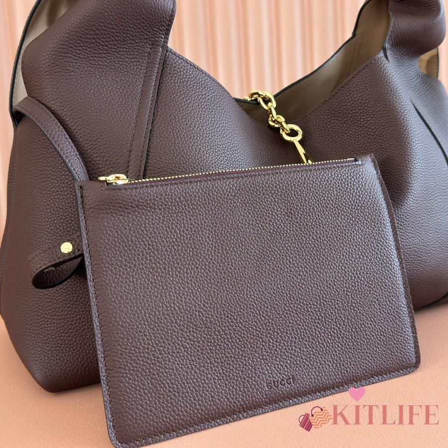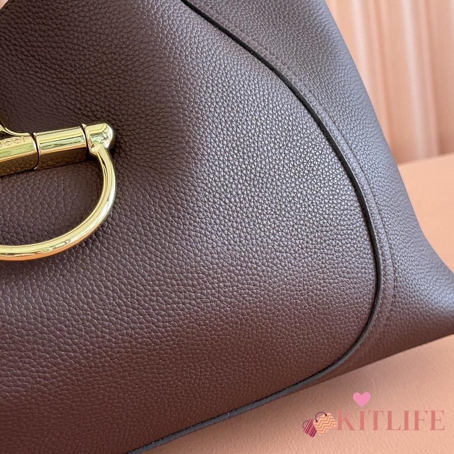 Kitlife Gucci Softbit Maxi Shoulder Bag Dark Brown Leather 837466 46x26x16cm