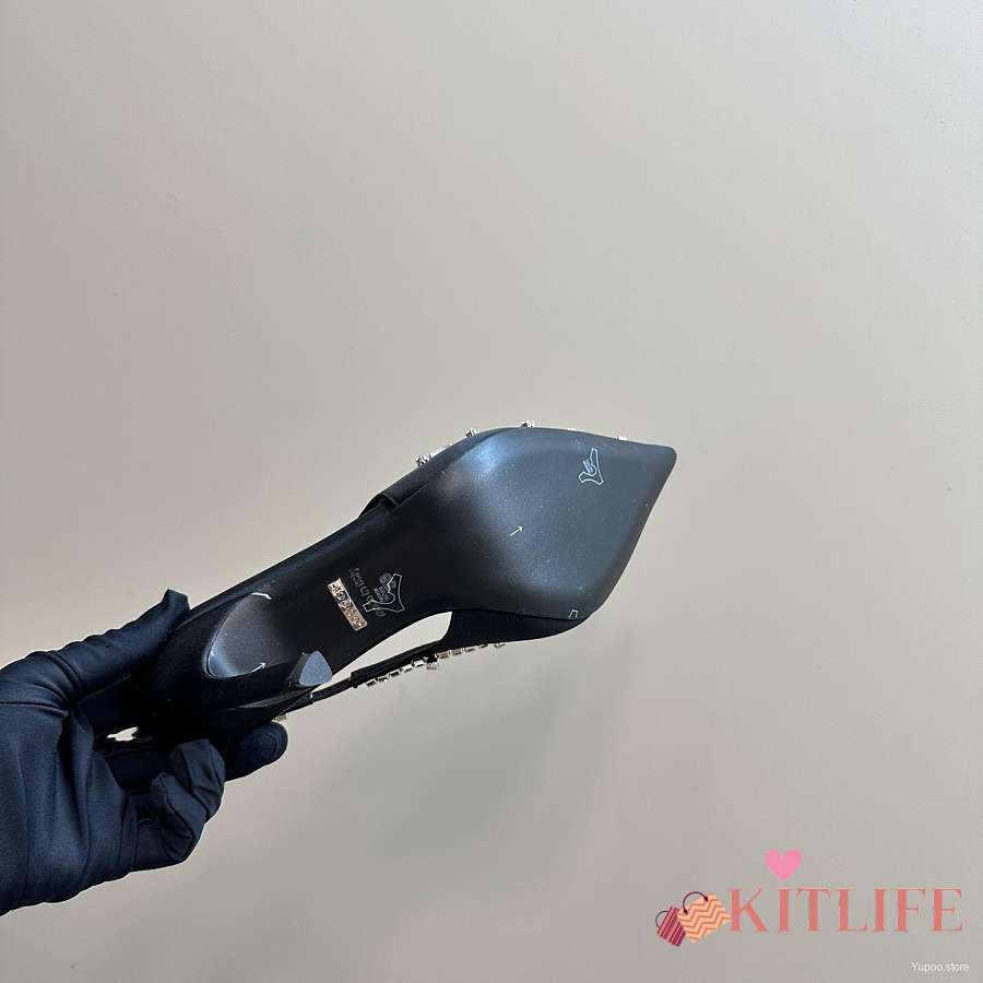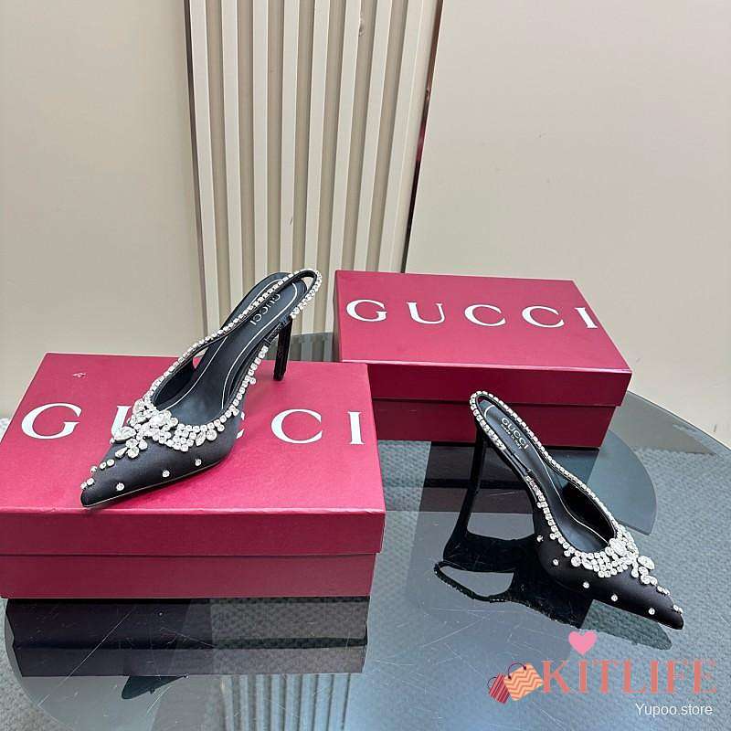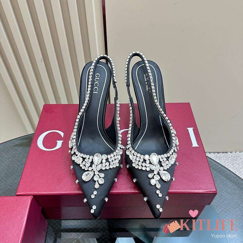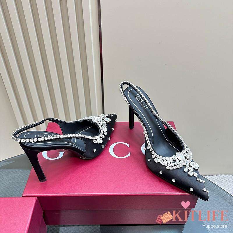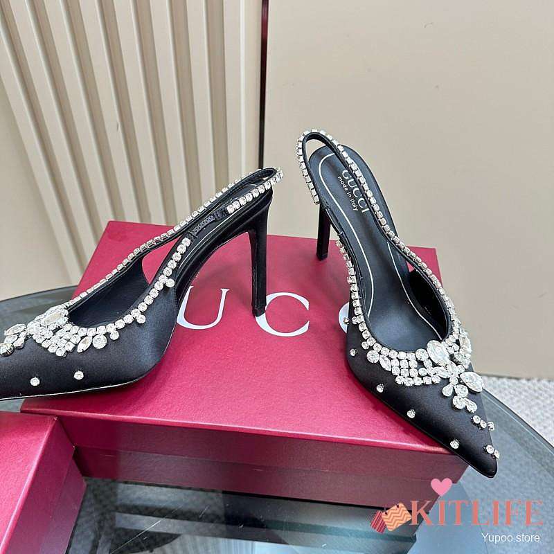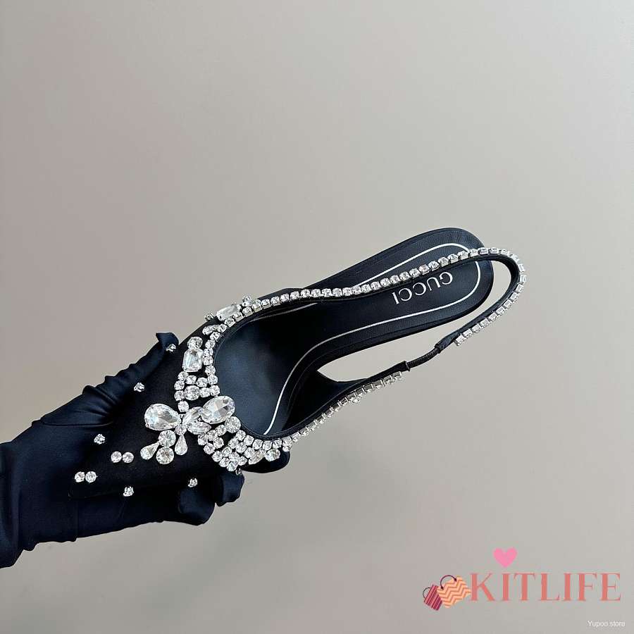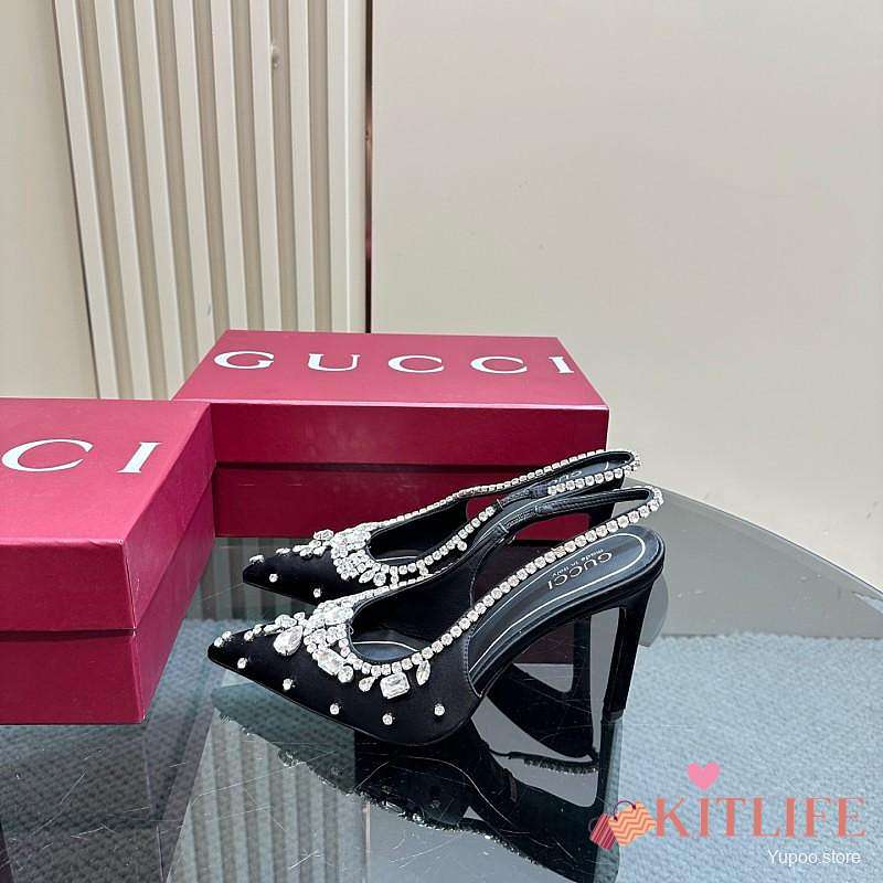 Kitlife Gucci Talia 105 Embellished Satin Slingback Pumps Black