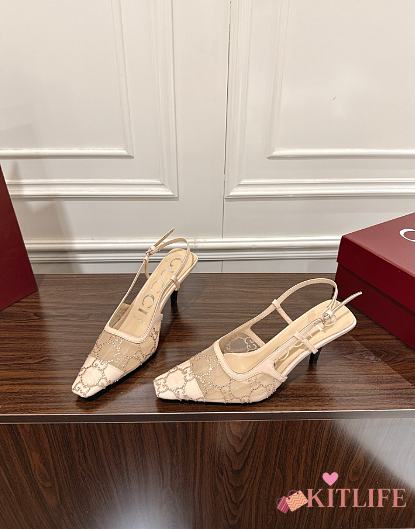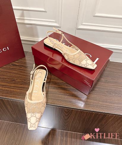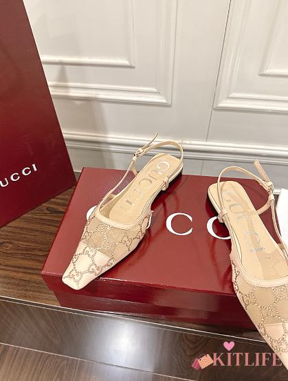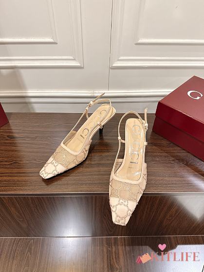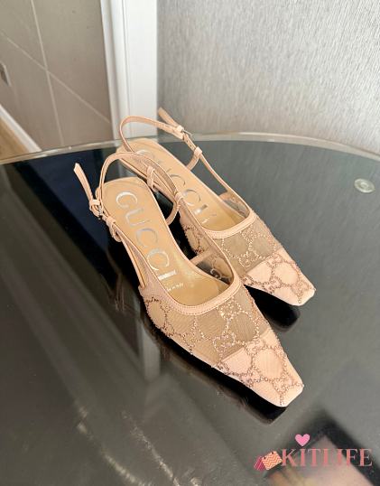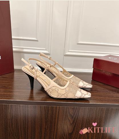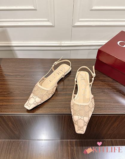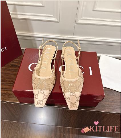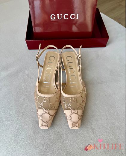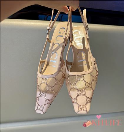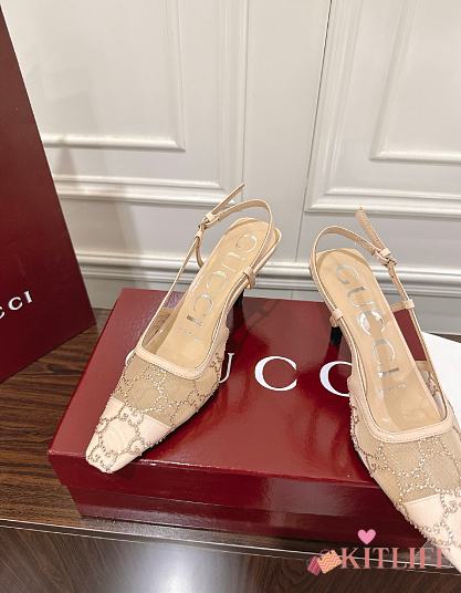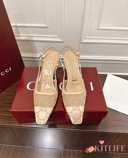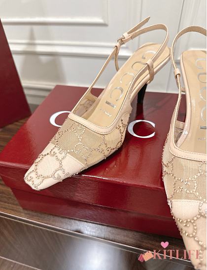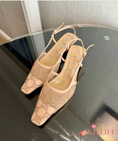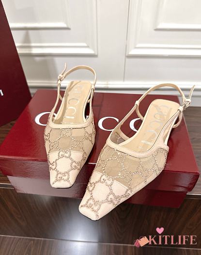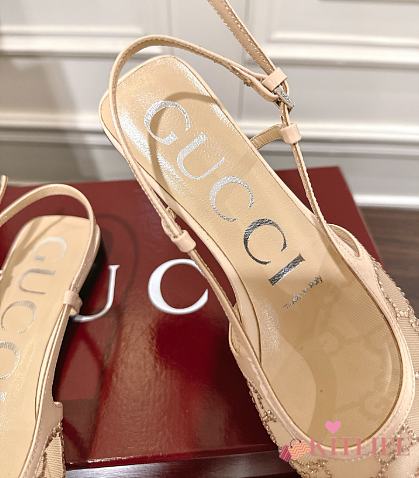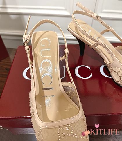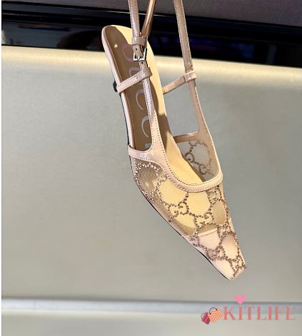 Kitlife Gucci Tom Embellished Crystal GG Slingback Pumps in Beige