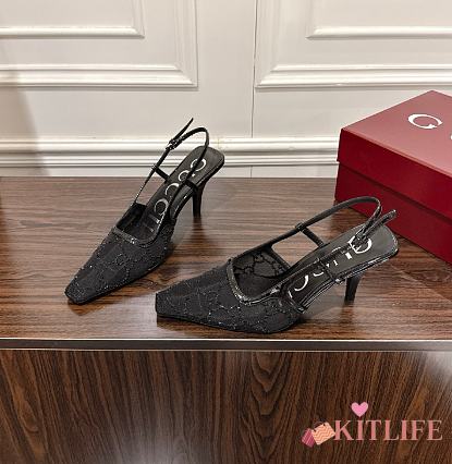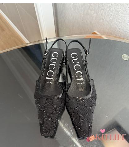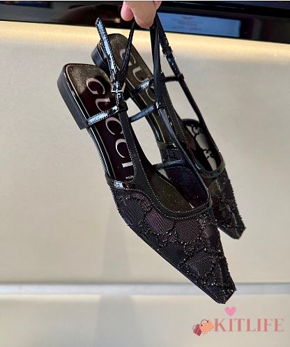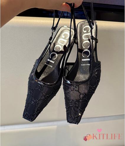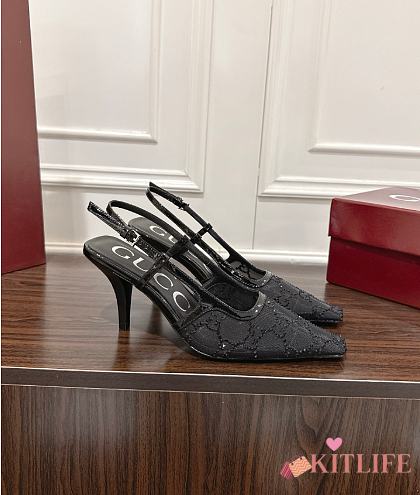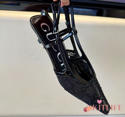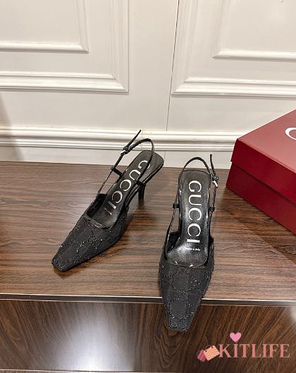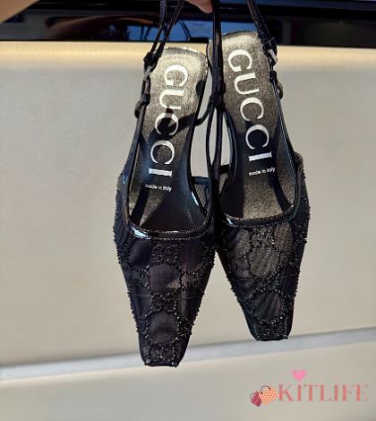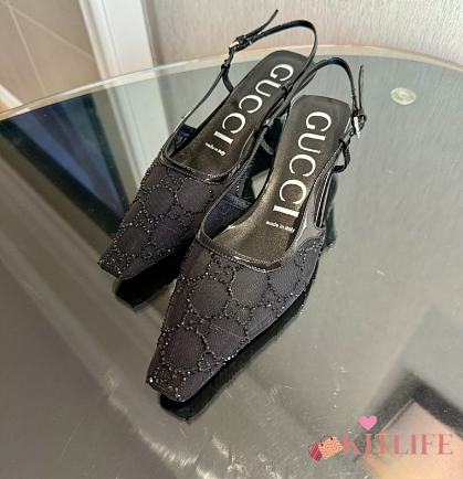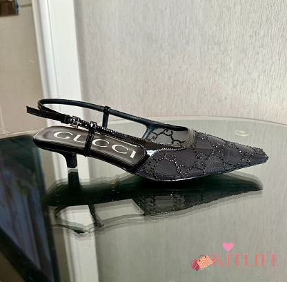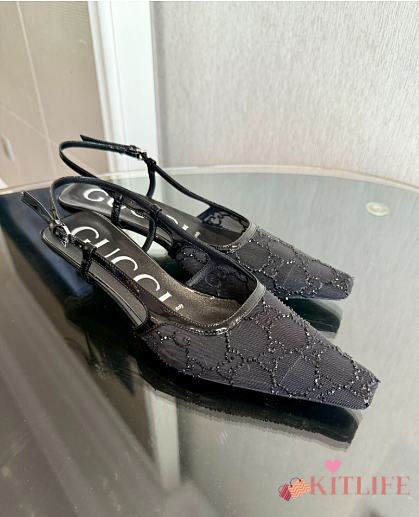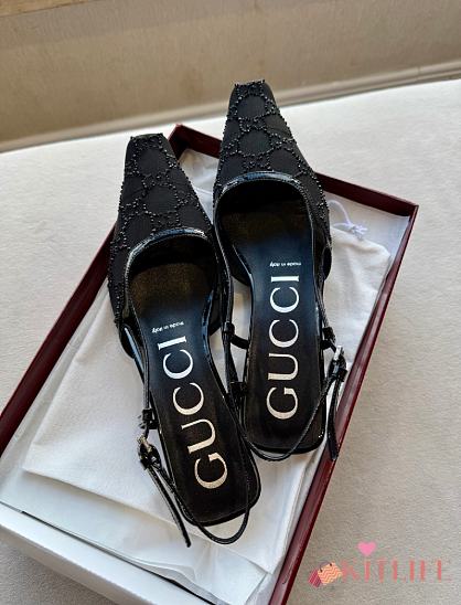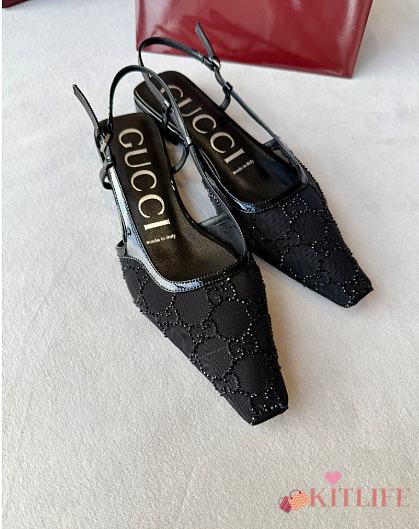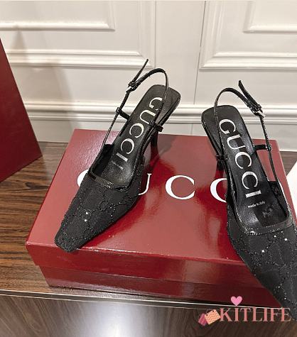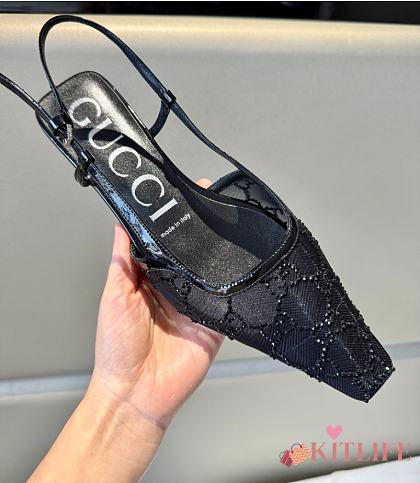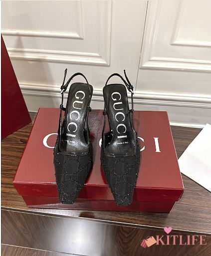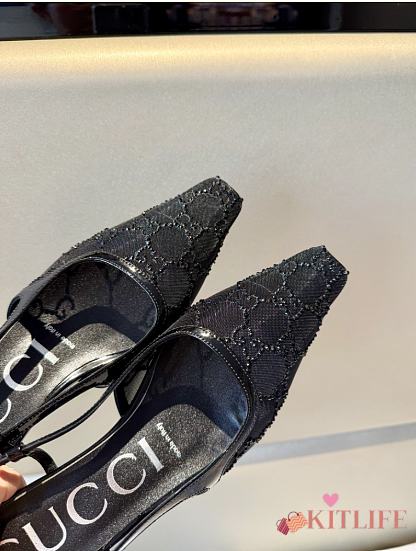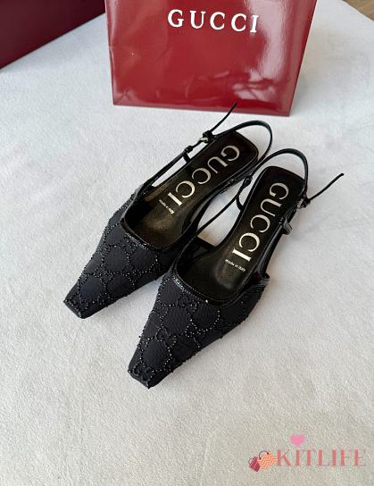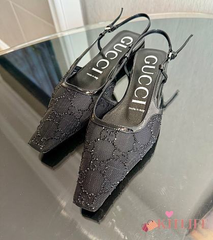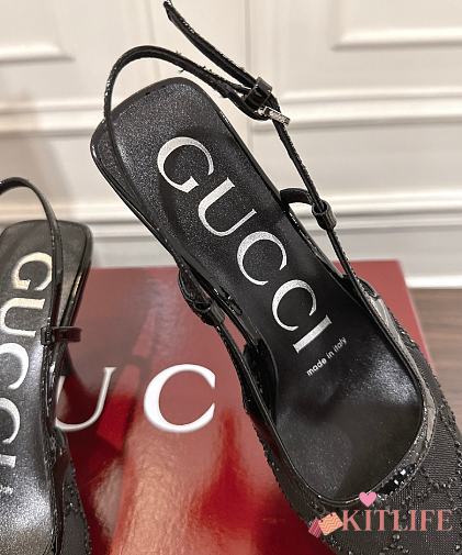 Kitlife Gucci Tom Embellished Crystal GG Slingback Pumps in Black