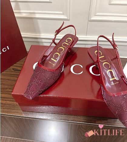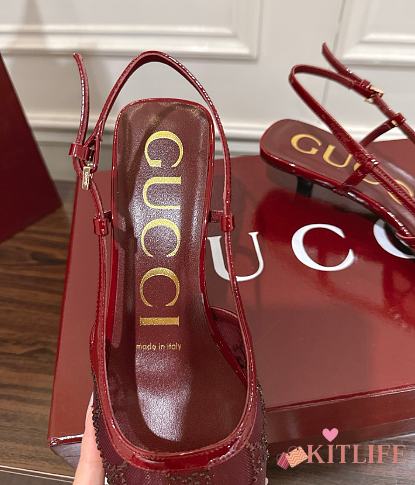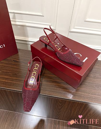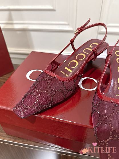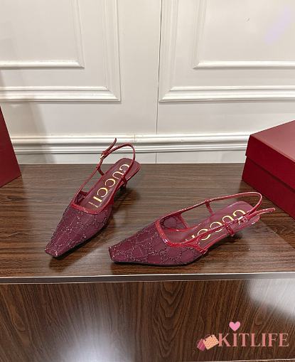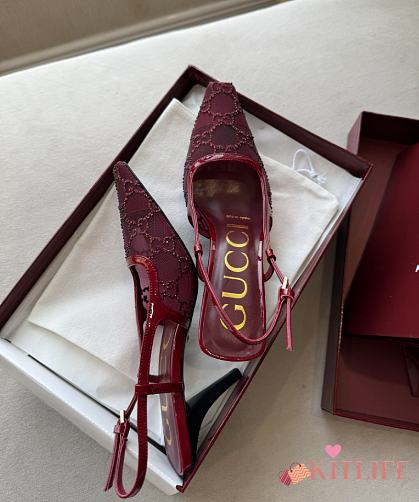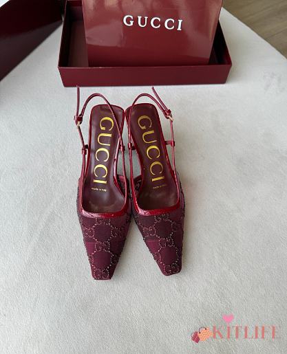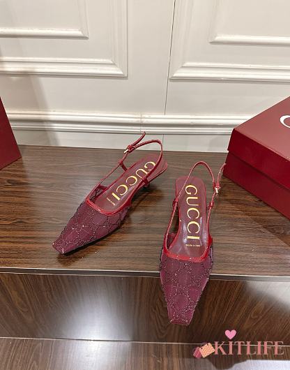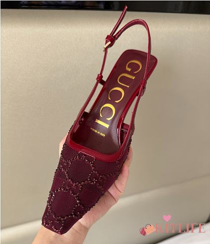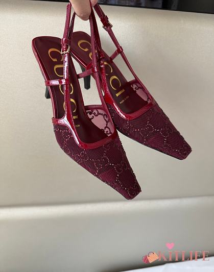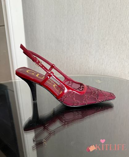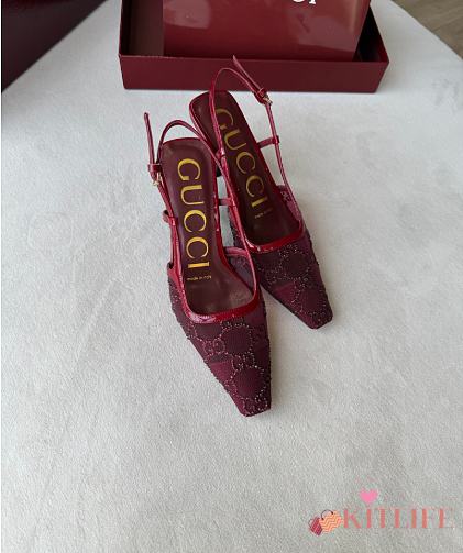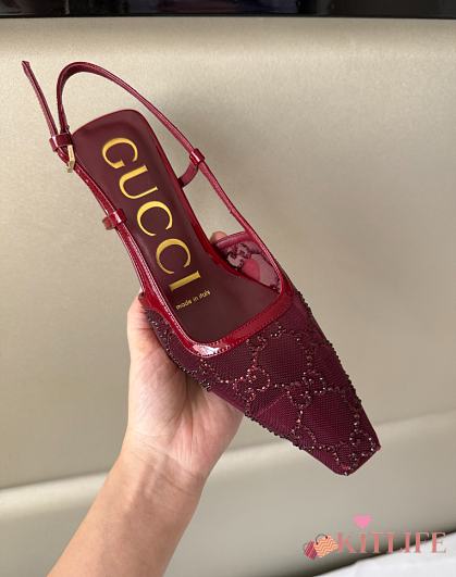 Kitlife Gucci Tom Embellished Crystal GG Slingback Pumps in Red